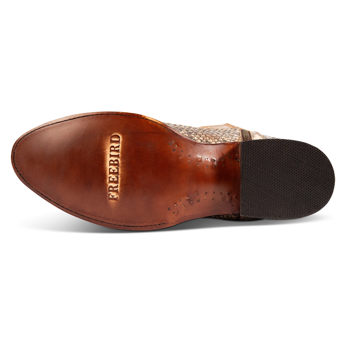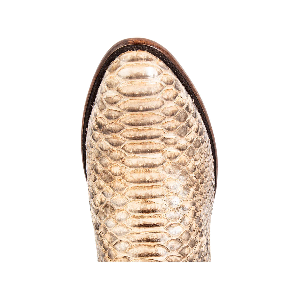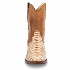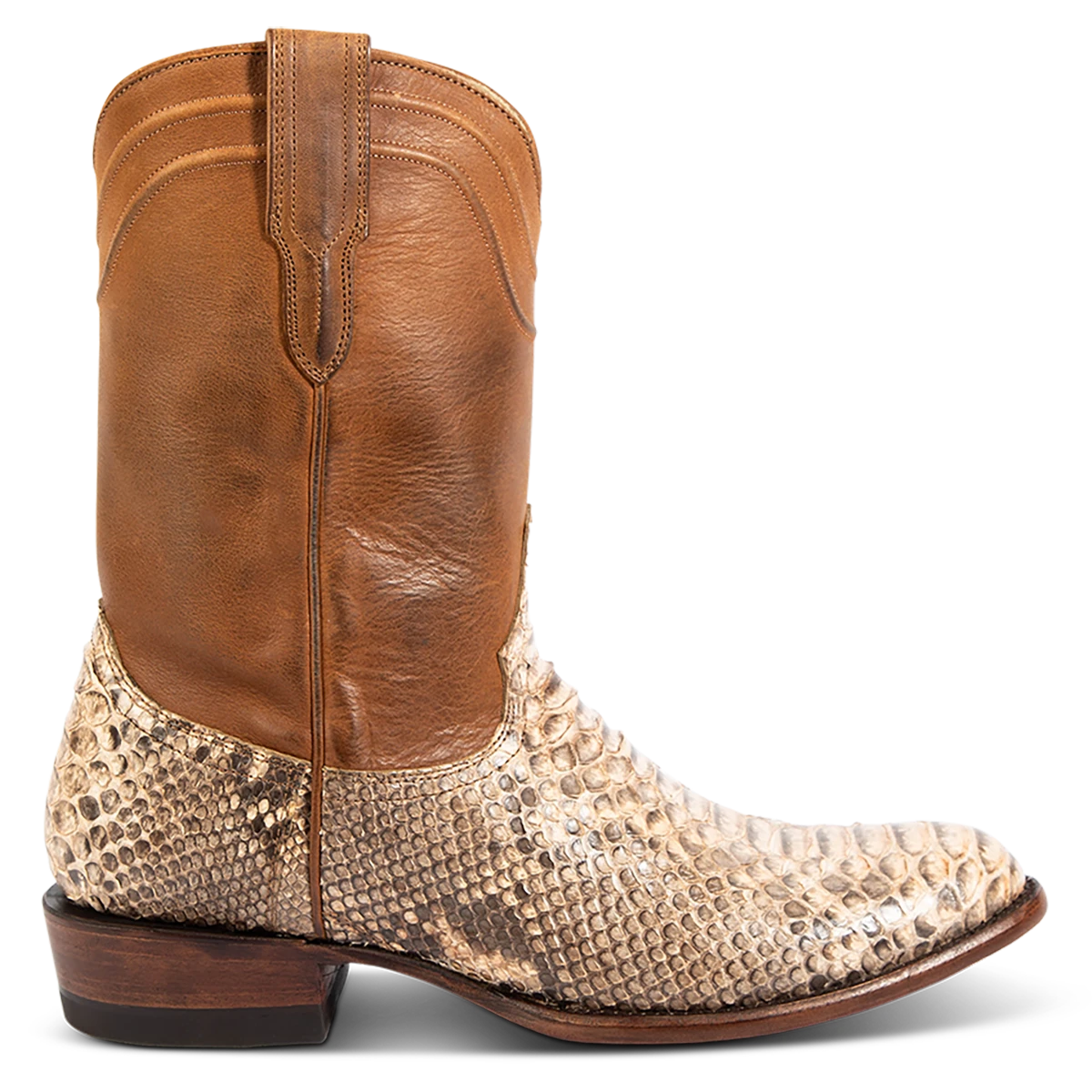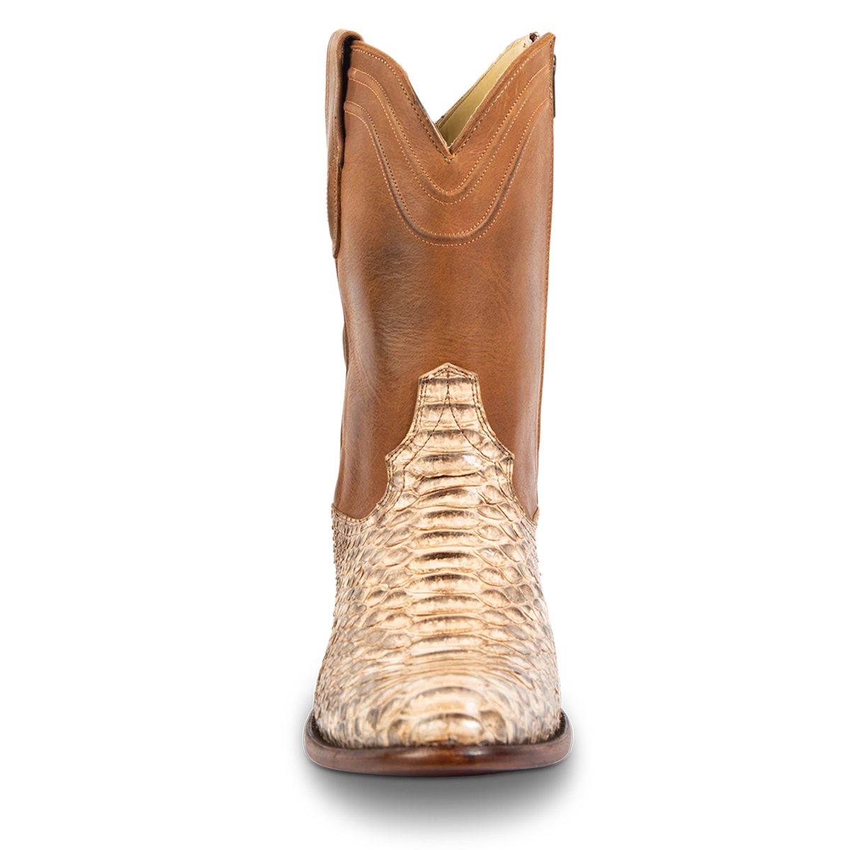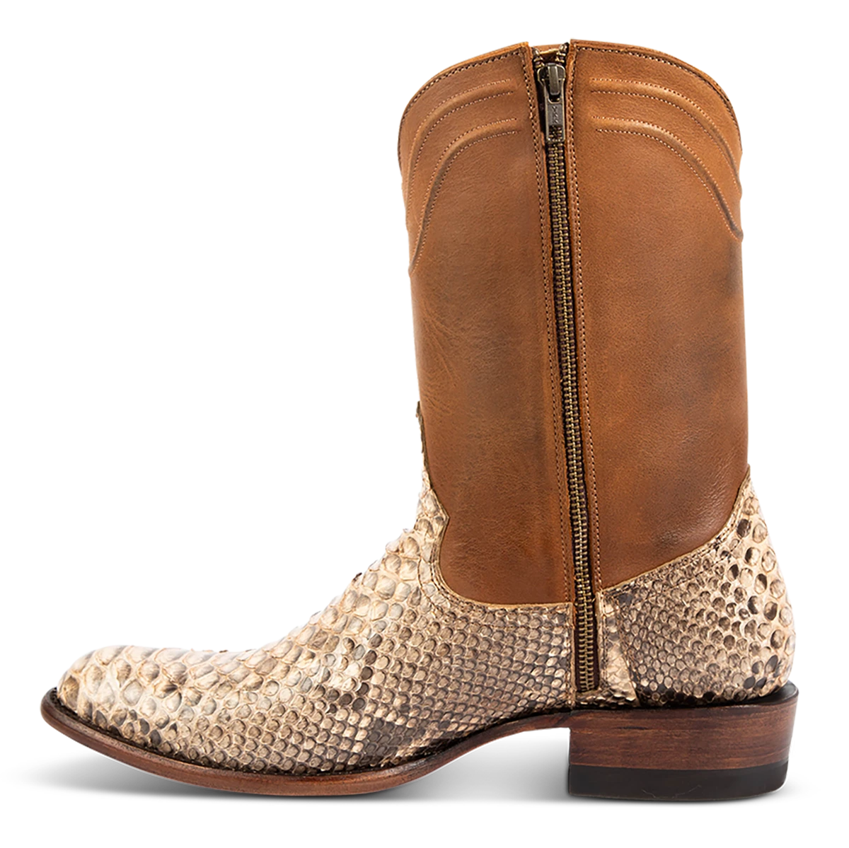 A strong, sturdy and reliable companion to take you from rugged backroads to urban pavement, introducing ALAMO. Refined and handcrafted with 100% full grain authentic leather, no two pairs are the same. Step into this lived-in style that features a single leather pull strap, a full inside working brass zipper and finished with double pipe shaft stitching. Designed with genuine python leather.