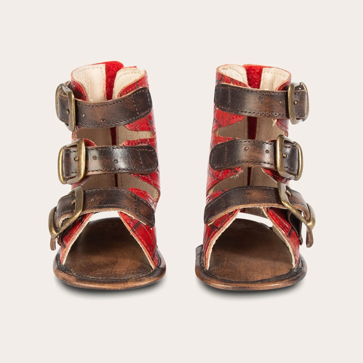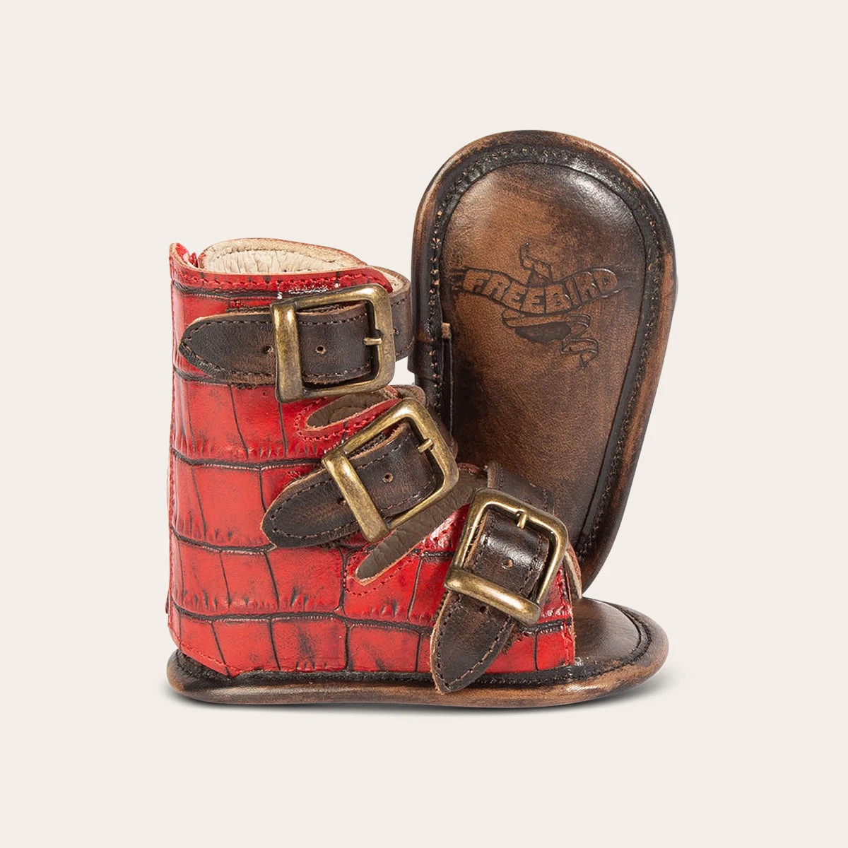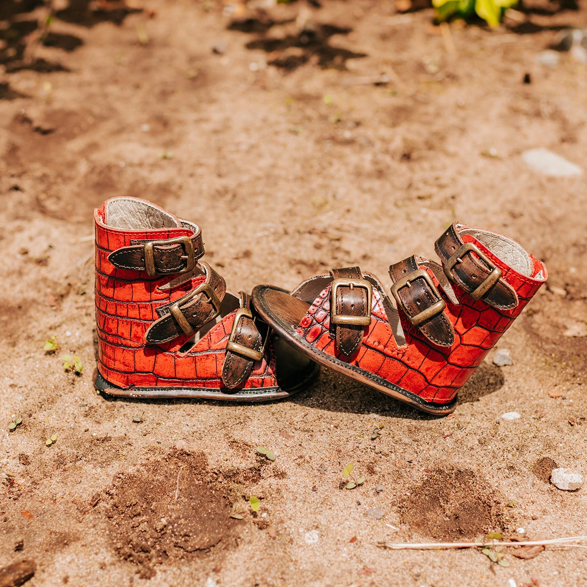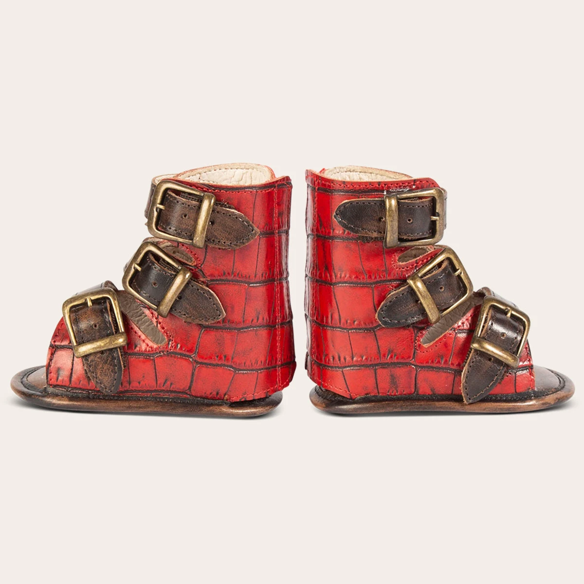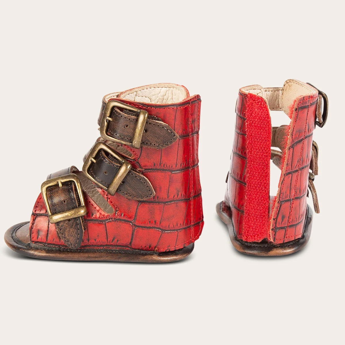 Baby always gets it from Mama. Delicately detailed with adjustable elastic straps and a back velcro pannel, this iconic sandal was made tiny just for little one. Matching mini has never been so conveniently stylish. Designed with 100% full-grain croco embossed leather.