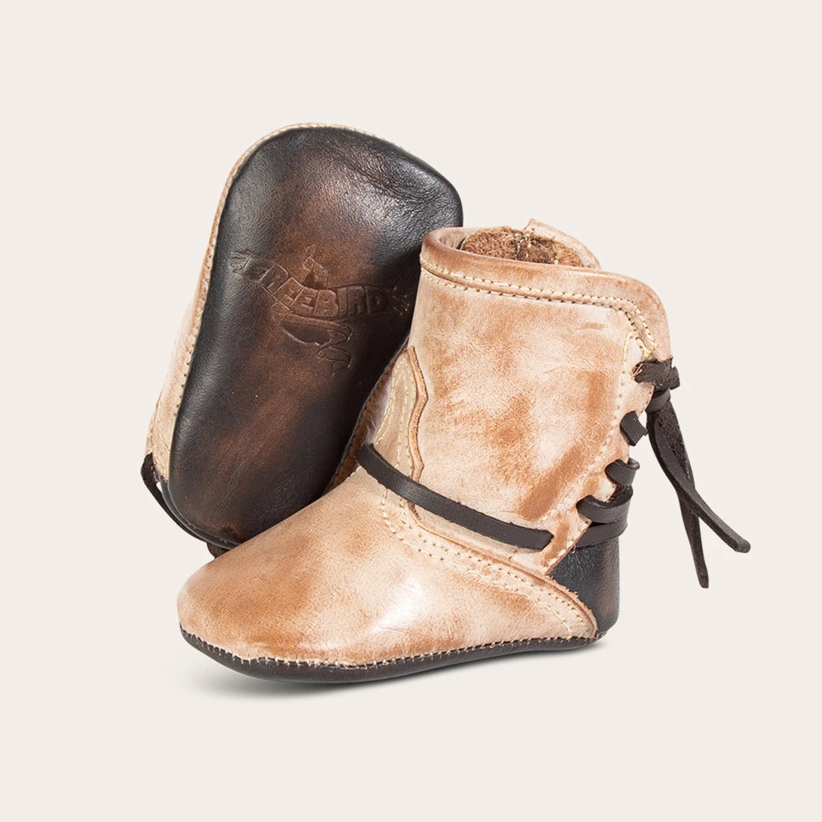 Our most loved tall boot just got better (and smaller). Detailed with a lace-up backing and a simple velcro fastening, this leather bootie will give a playful look to any outfit. Let your mini shine in the BABY COAL.