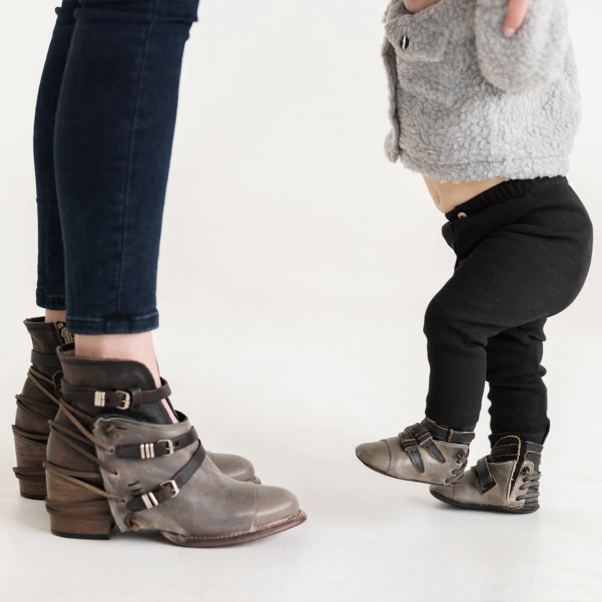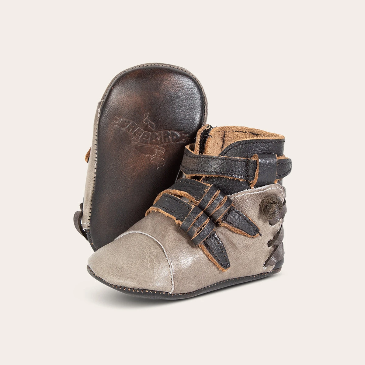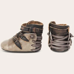 Make the whole daycare stop and stare in the BABY CRUE. This bootie is detailed with a lace-up back and overlaying leather straps. Designed with a velcro closure for a hassle-free fastening, this shoe offers on-the-go convenience. Your little one is sure to take their first steps in style.