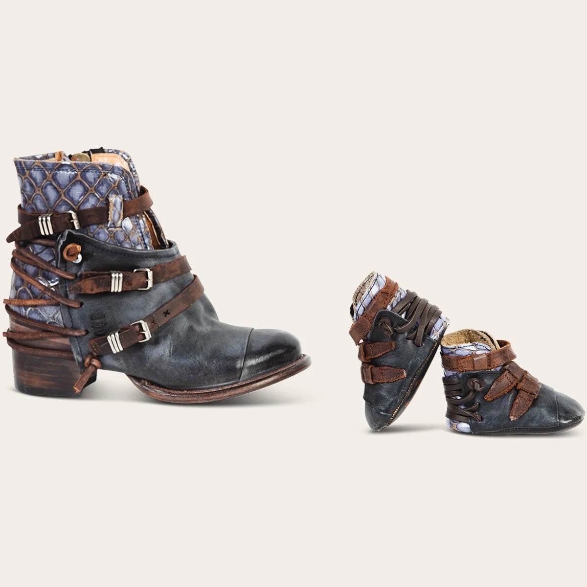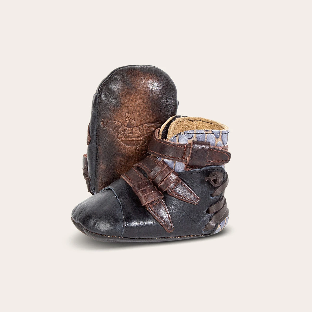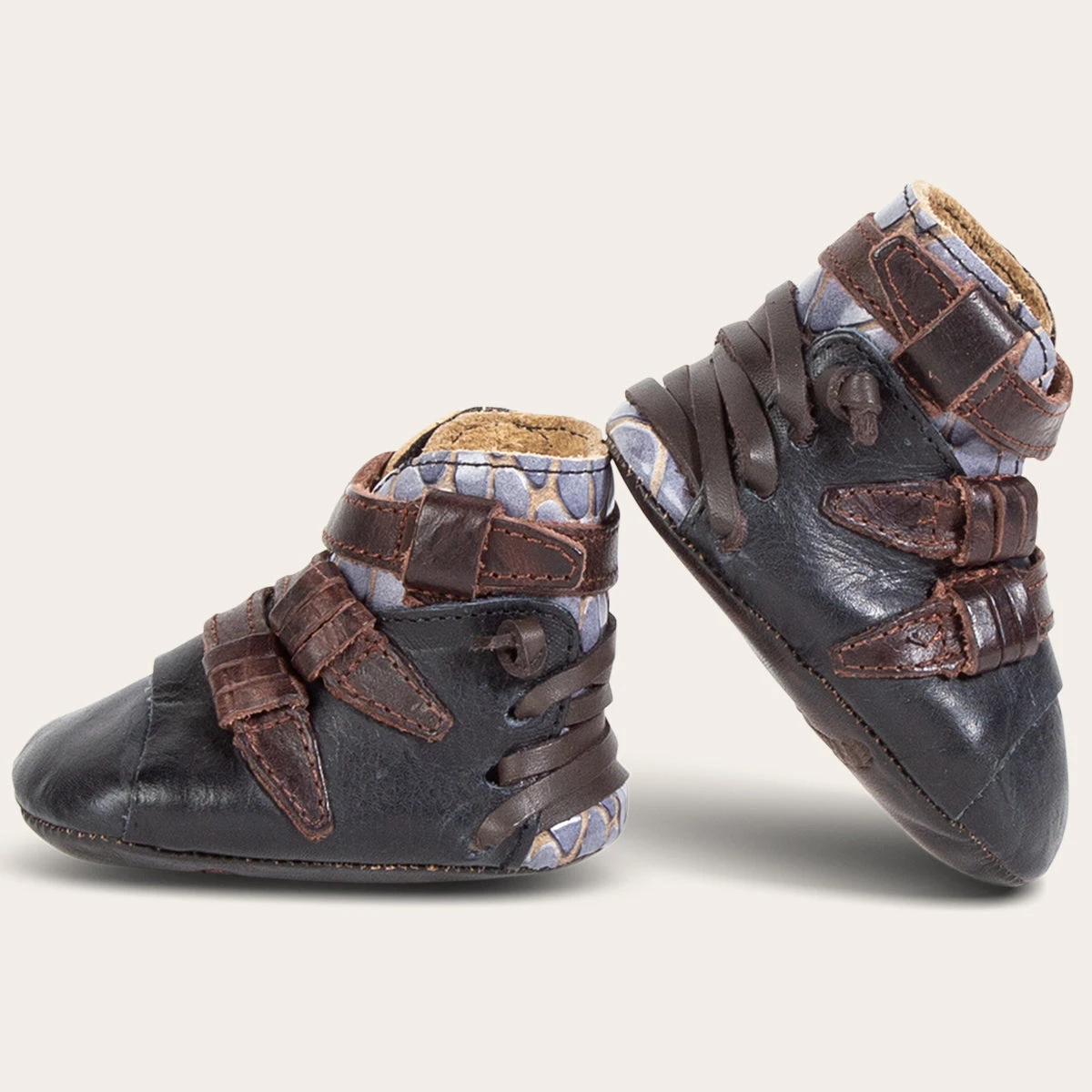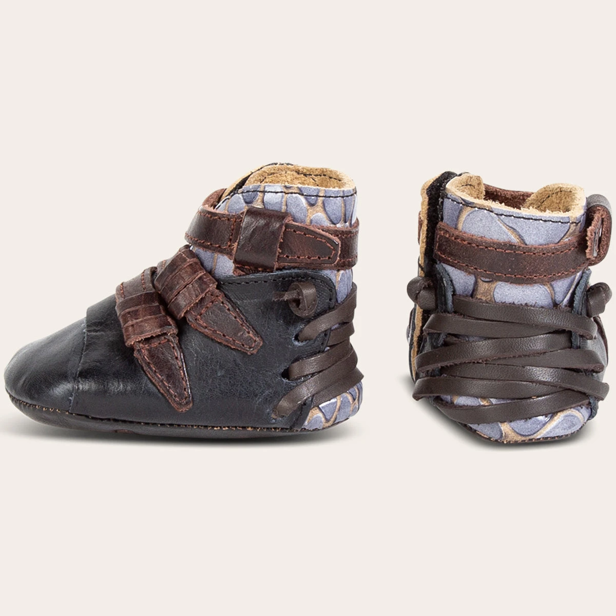 Make the whole daycare stop and stare in the BABY CRUE. This bootie is detailed with a lace-up back and overlaying leather straps. Designed with a velcro closure for a hassle-free fastening, this shoe offers on-the-go convenience. Your little one is sure to take their first steps in style.