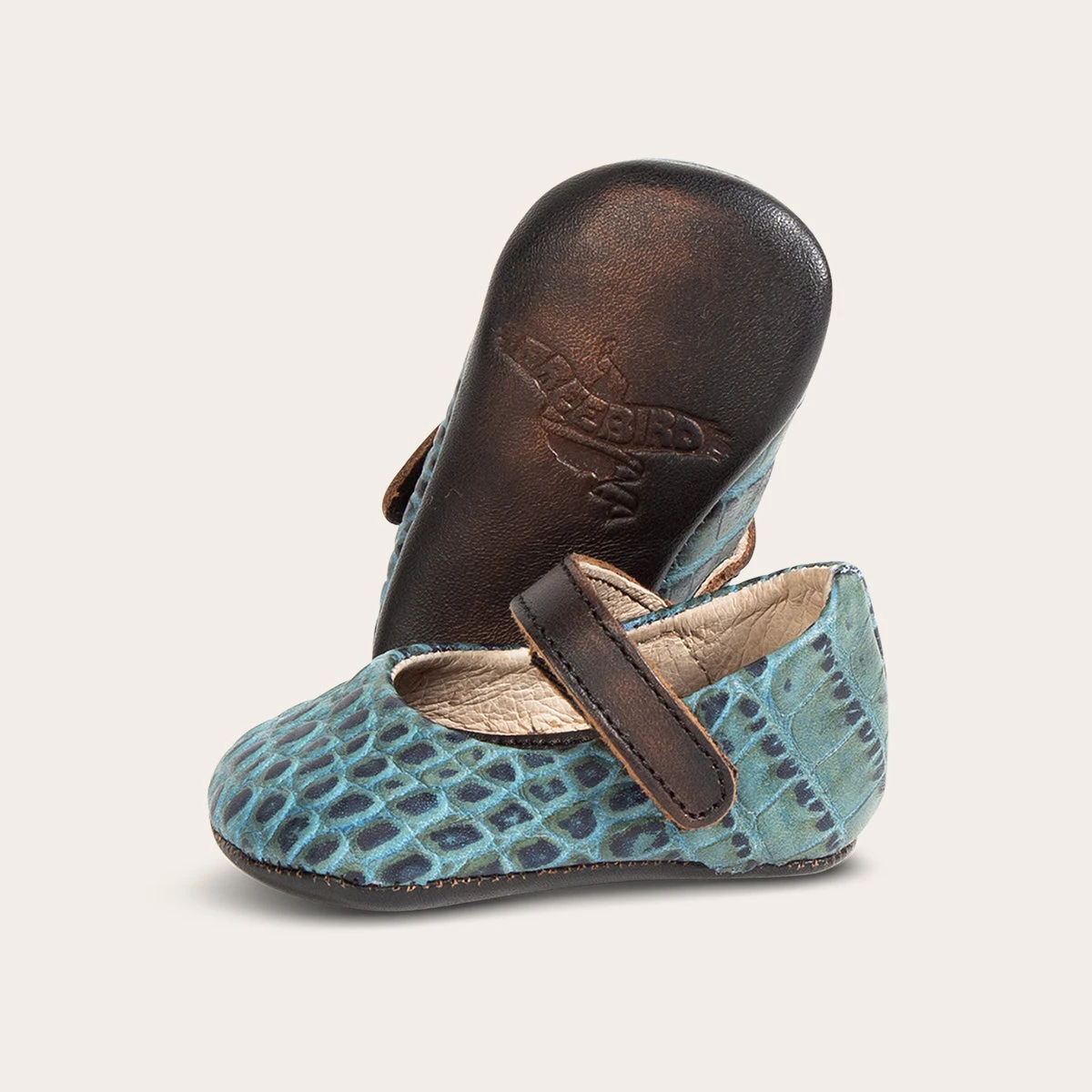 Give your little dreamer wings to fly in BABY JANE. Created with thoughtful detail, featuring a delicate leather strap and a velcro fasten, this shoe offers a secure, charming fit making it the perfect addition to any outfit. Designed with 100% full-grain croco embossed leather.