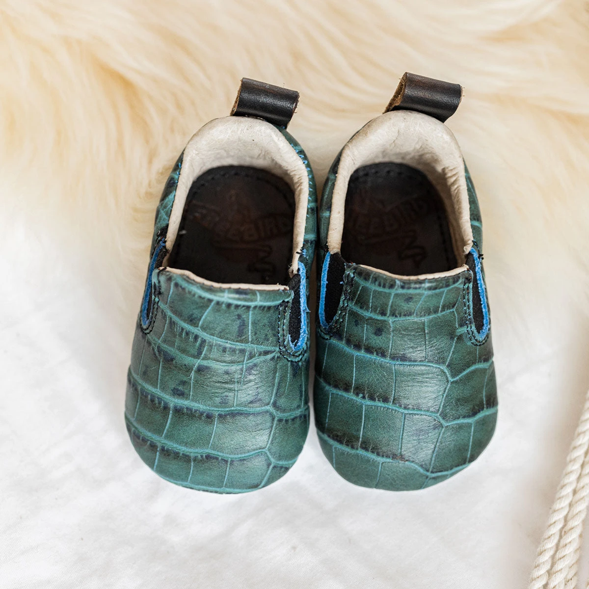 Let your mini explore their sense of wander. This leather slip-on features elastic panels for a flexible, secure fit. Your little one is sure to create adventurous memories in their BABY KICKS. Designed with 100% full-grain croco embossed leather.