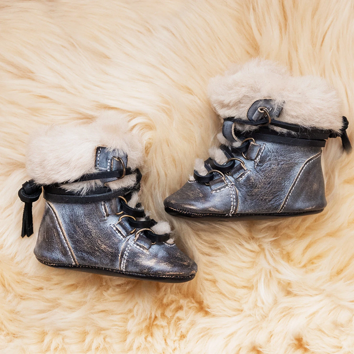 Now your mini can face the elements in style, too. BABY NORWAY features front lace detailing and a shearling lining to keep your little one’s feet warm and cozy all season.