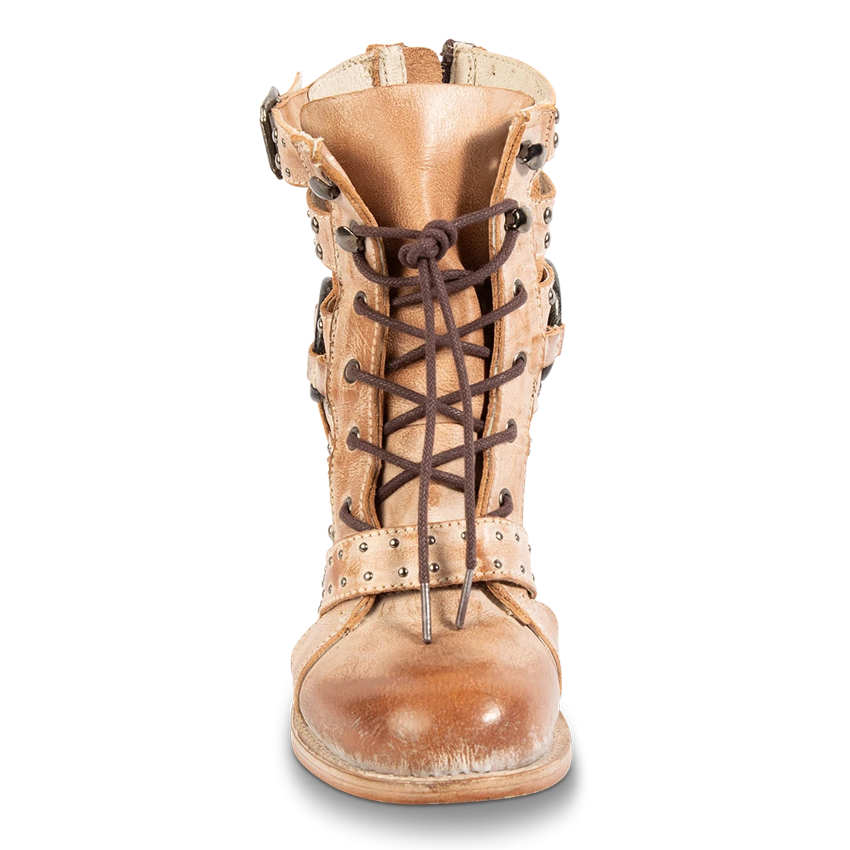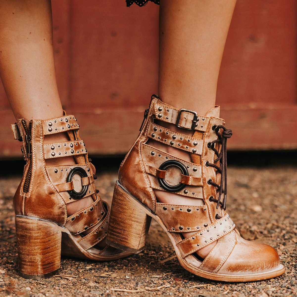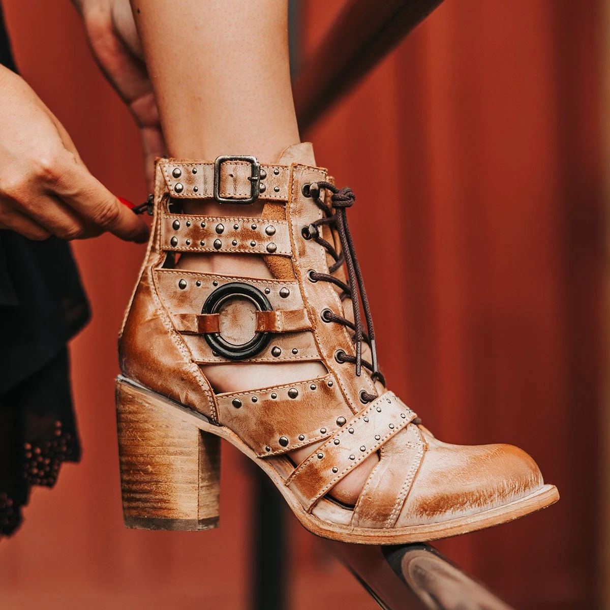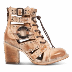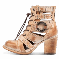 Welcome colder weather with a modern bootie, introducing BIRCH. Built on our staple high heel and round toe construction, this bootie features a cutout silhouette, adjustable front tie lacing and working back zipper. Combining intricate detailing with character and charm, this bootie elevates a wardrobe staple.Â