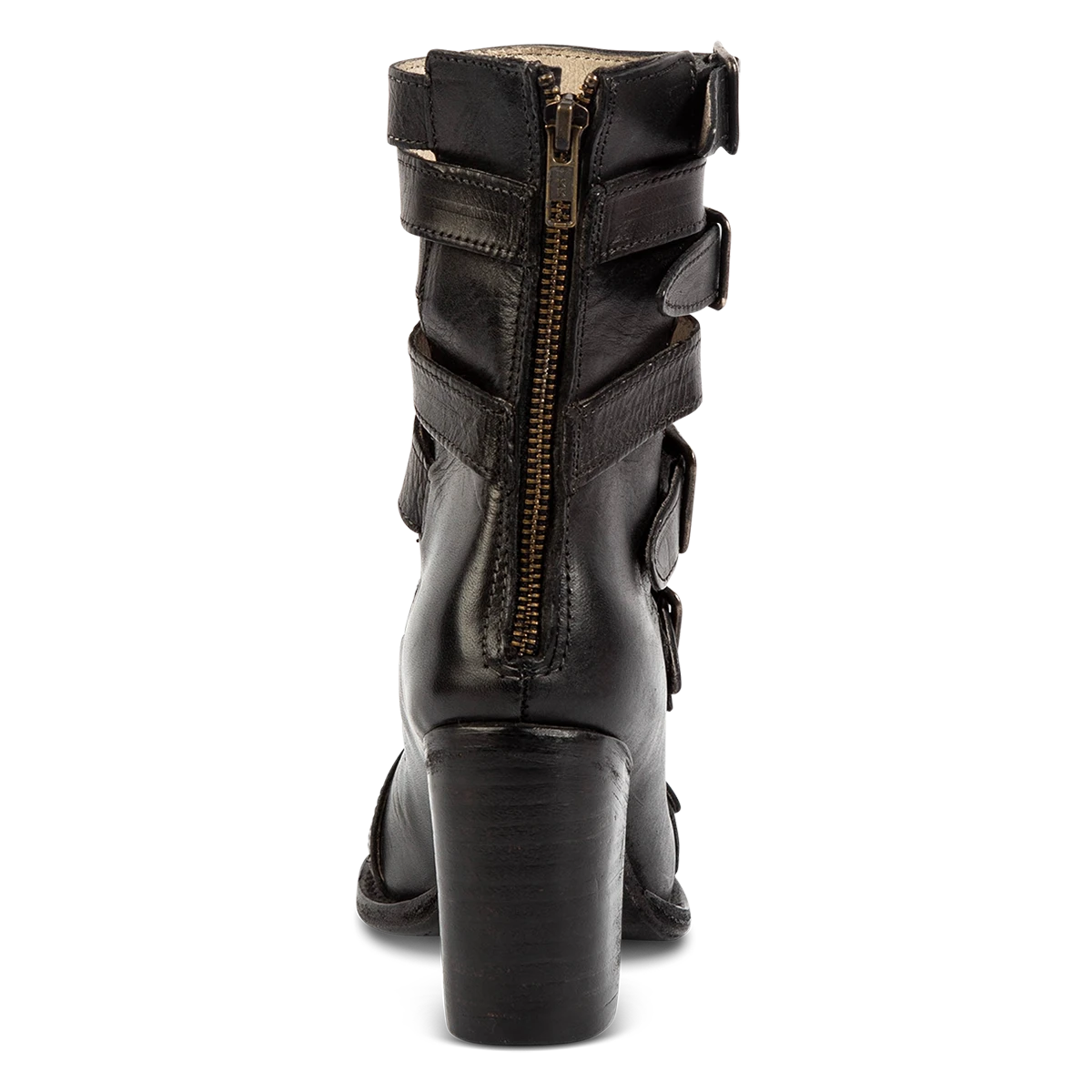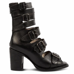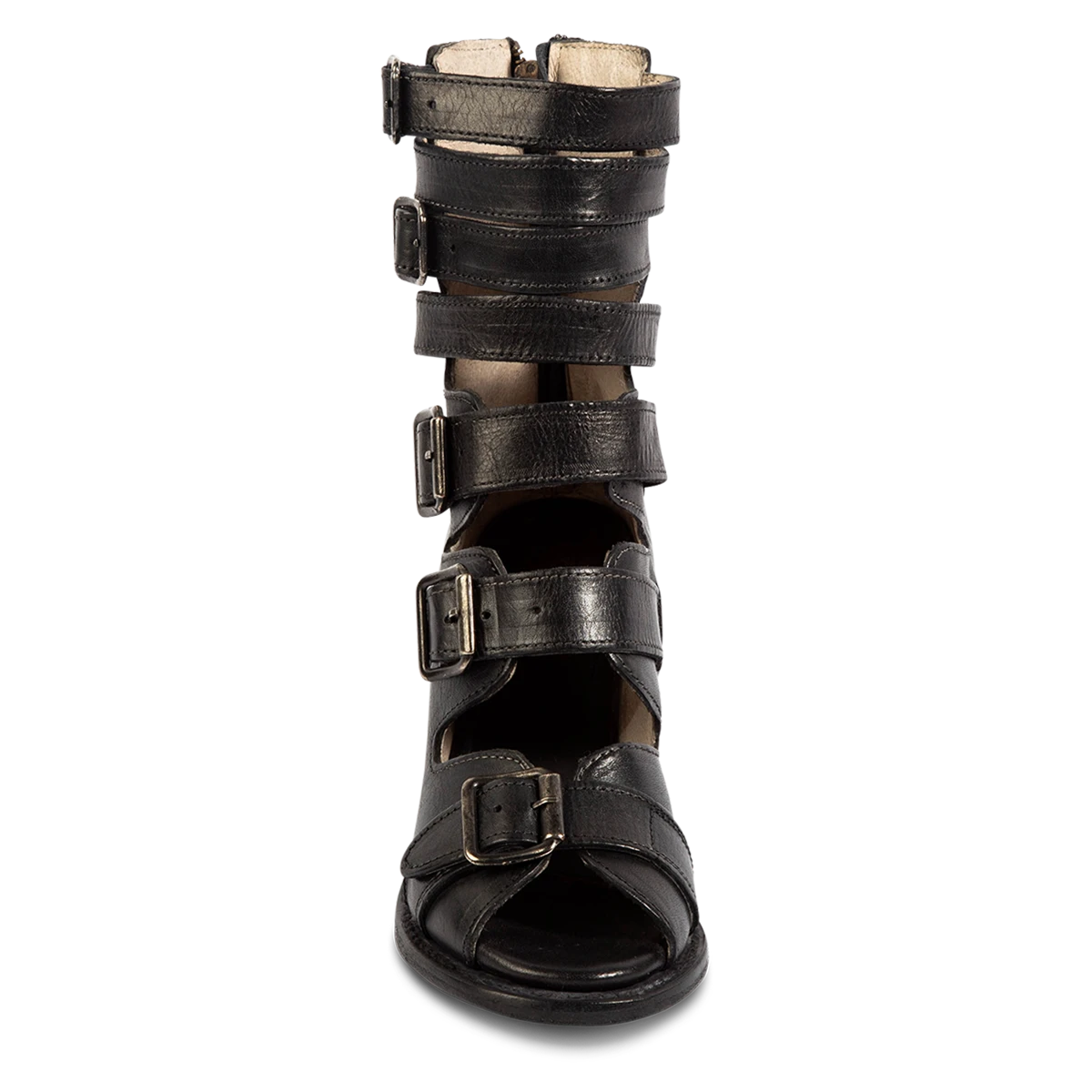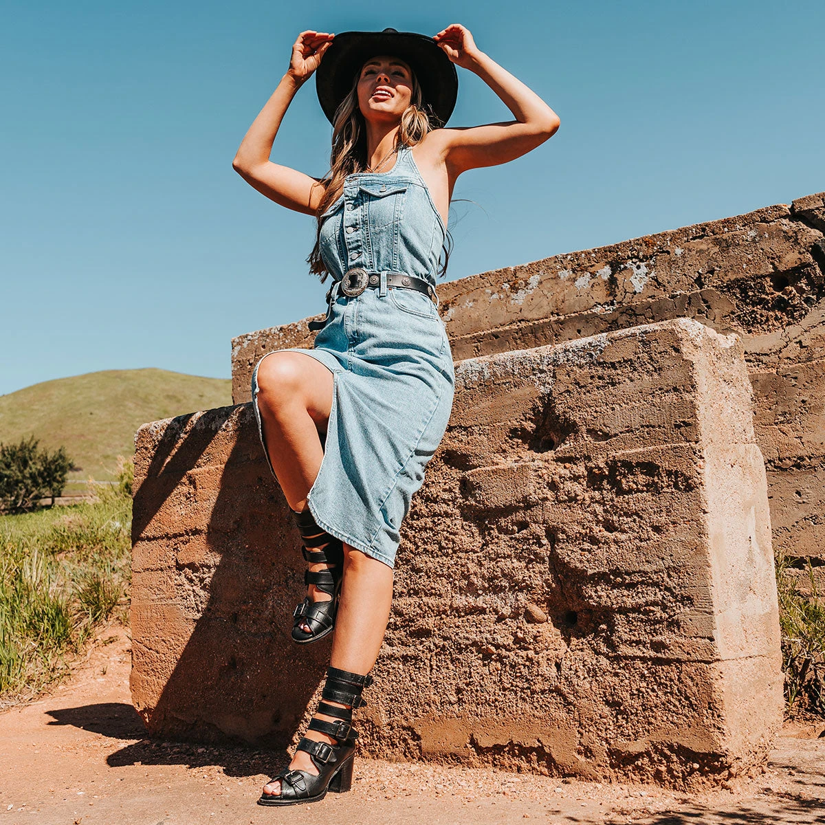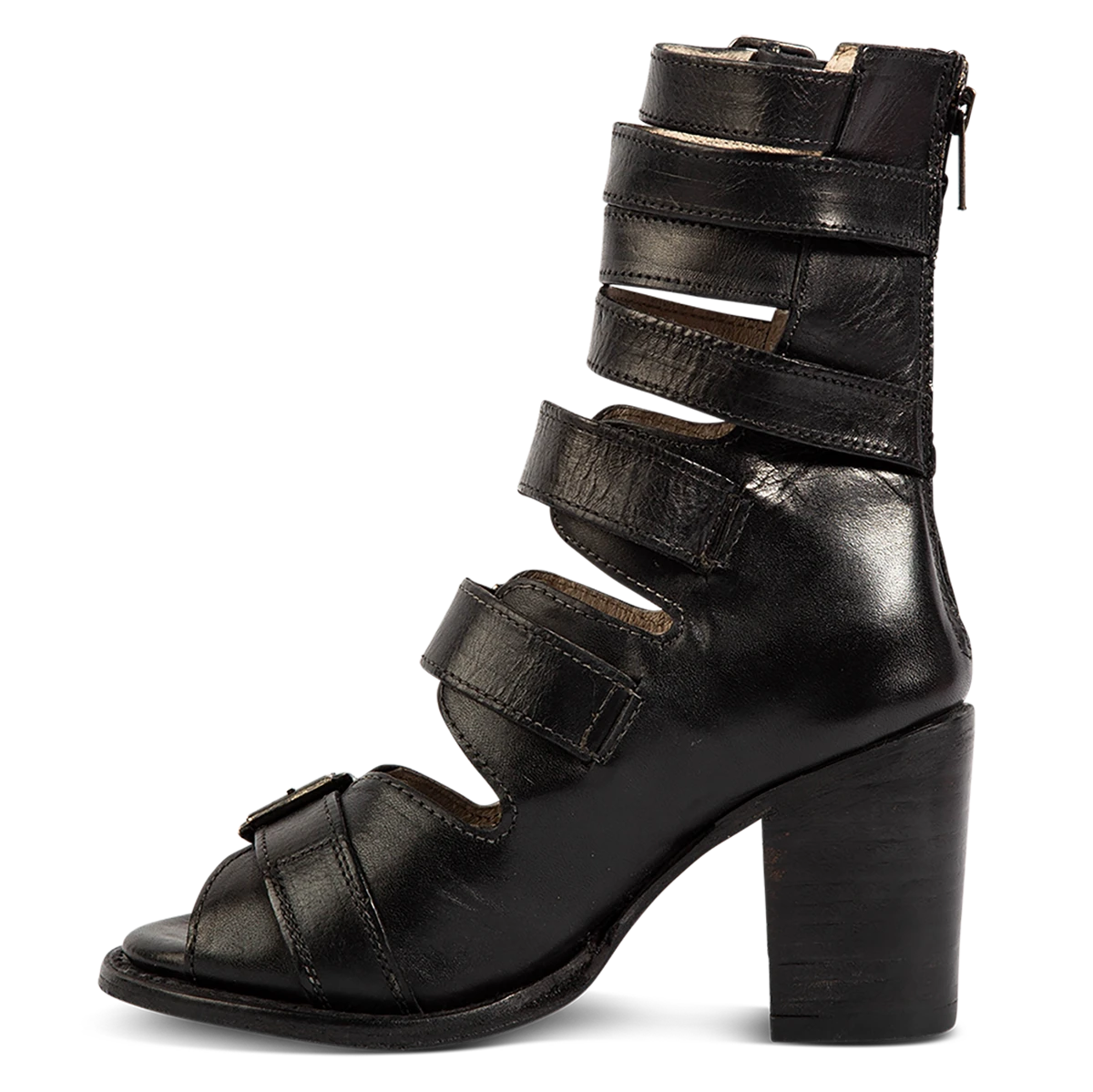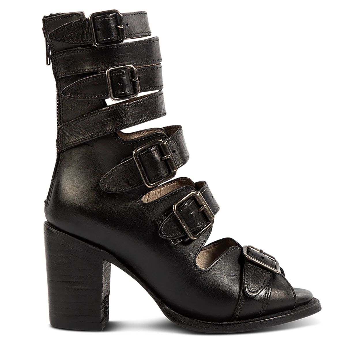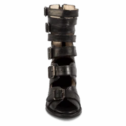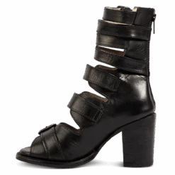The name’s BOND. Hitting just below the calf, BOND’s exposed silhouette was designed with adjustable straps and brass buckles for a flexible fit. Raised well off the ground, this sandal is finished with a block heel and working brass zip closure. Now that’s a shoe to die for.