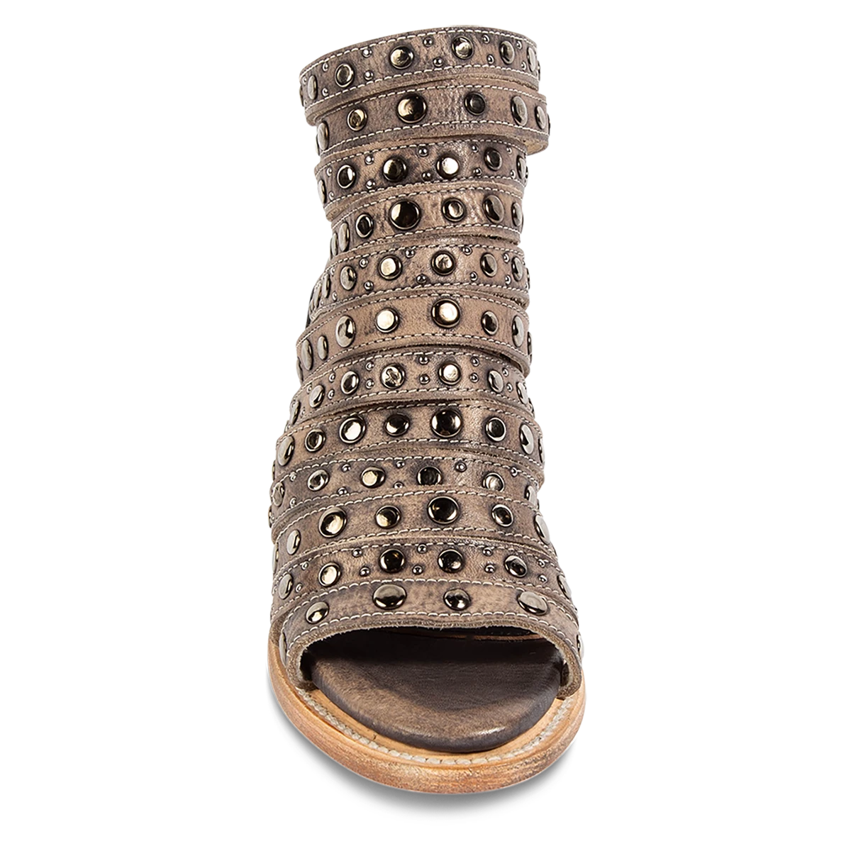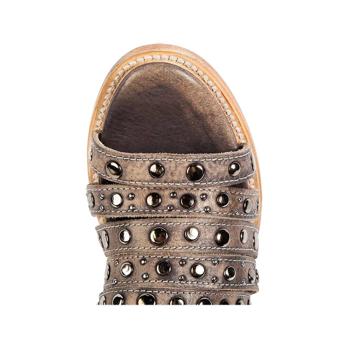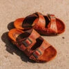 Coastal mentality mixed with urban style, introducing CANNES. Built with a breezy open toe construction, this 100% full grain leather sandal is fastened with studded leather straps and includes a functional brass zipper for ease of sliding on and off. Destined for sandy beaches or concrete jungles, CANNES fits the role wherever you go.Â