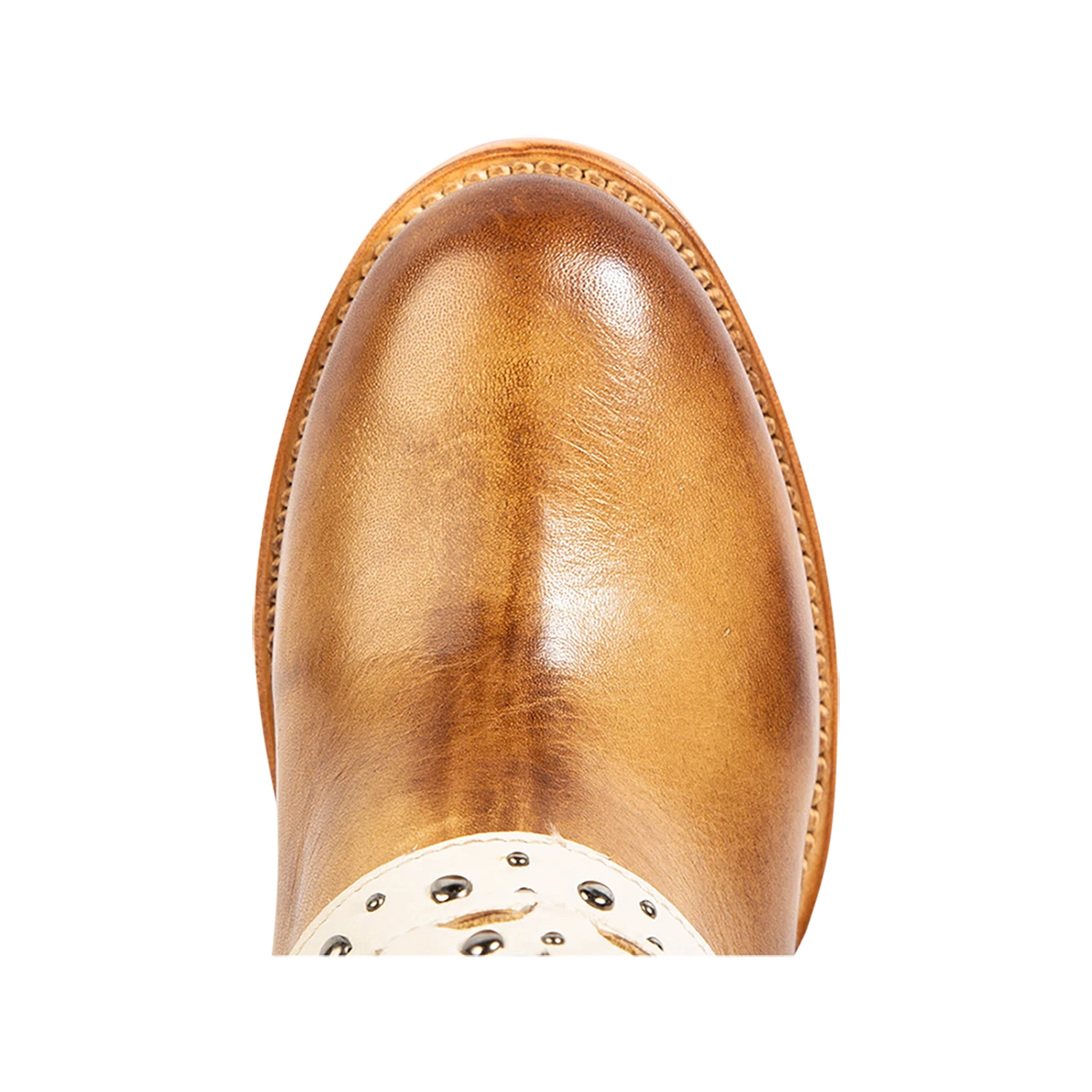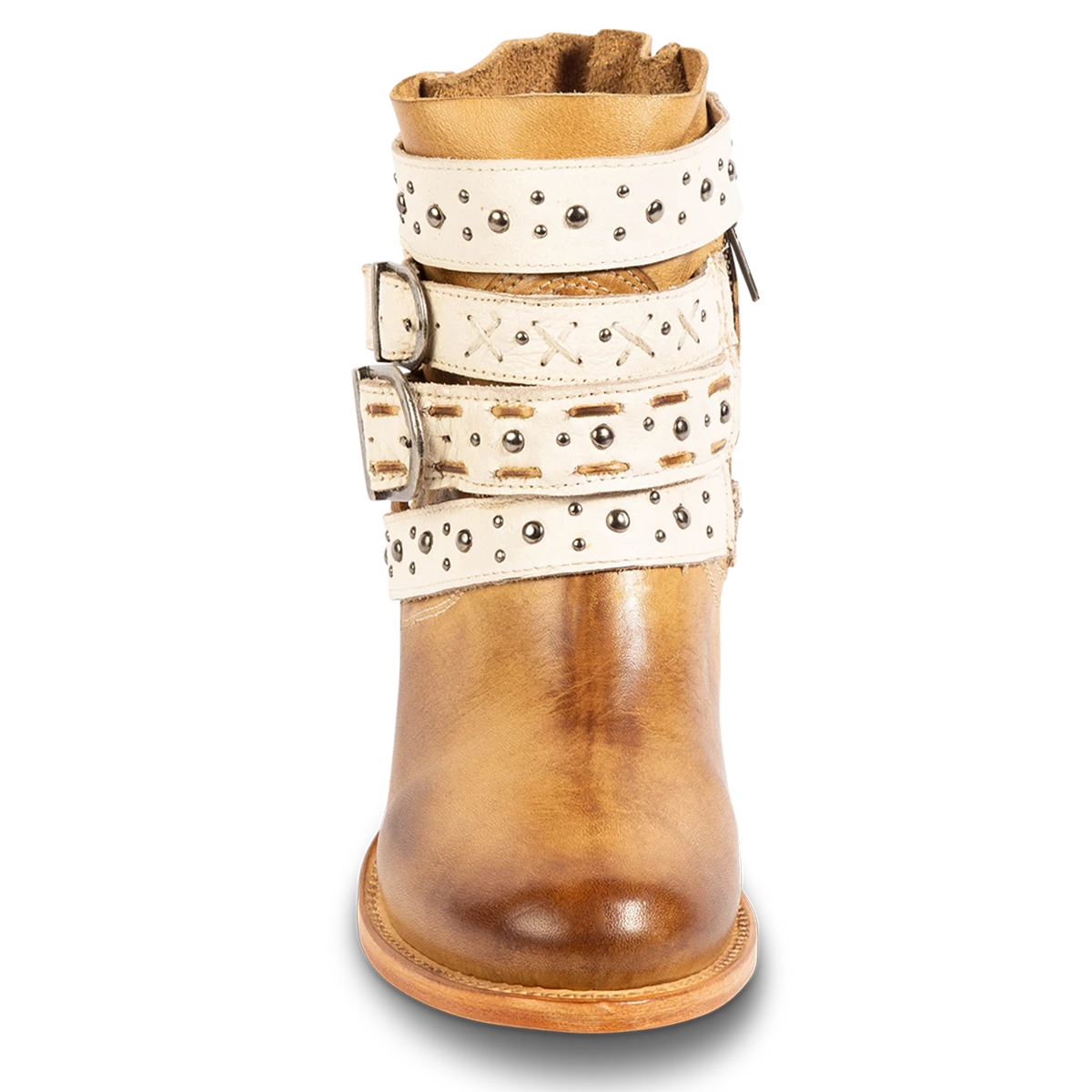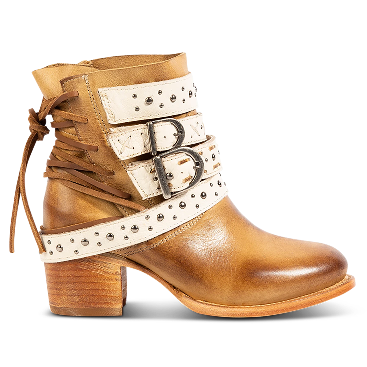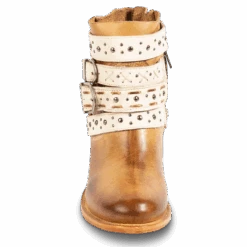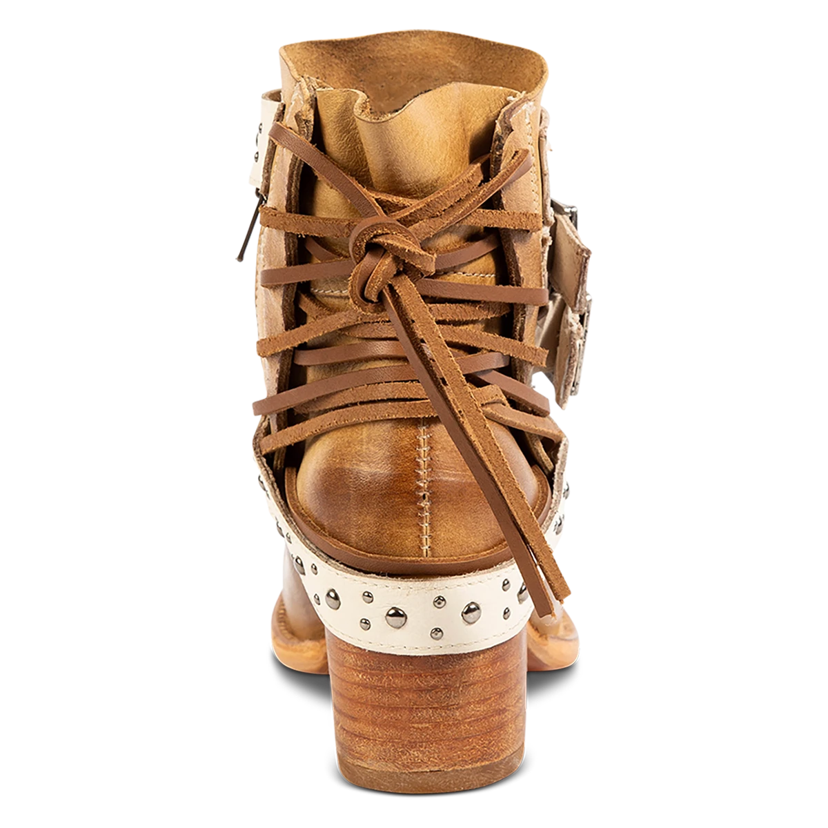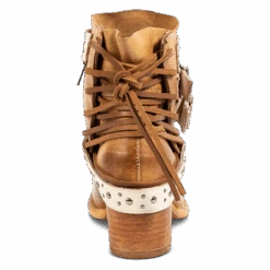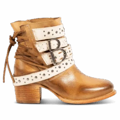 Cinched with subtle luxury and outlaw personality – introducing CASPIAN. Finished with 100% full grain leather, this chic bootie combines back tie lacing, adjustable shaft belts and an inside working zipper for functionality and benefit. Eye-catching details such as whip stitch patterns and stud embellishments make this bootie a Fall favorite.Â