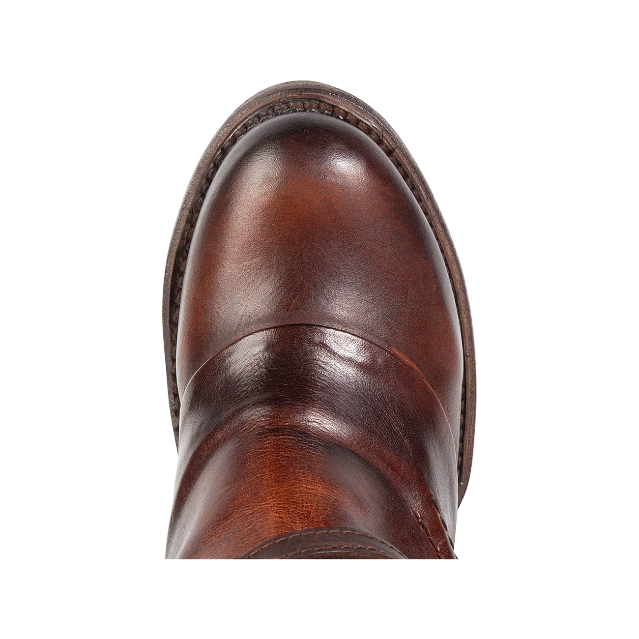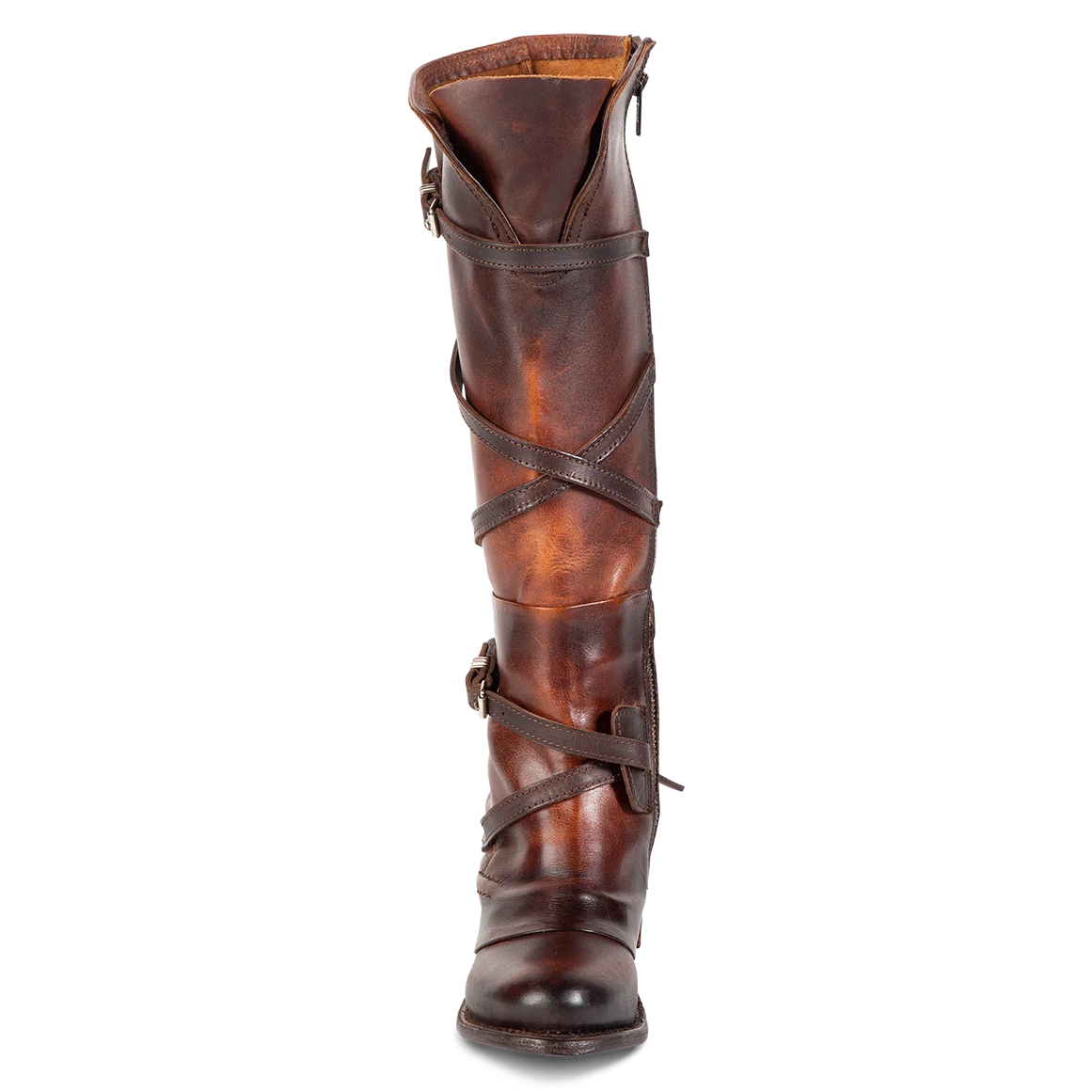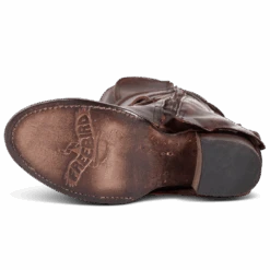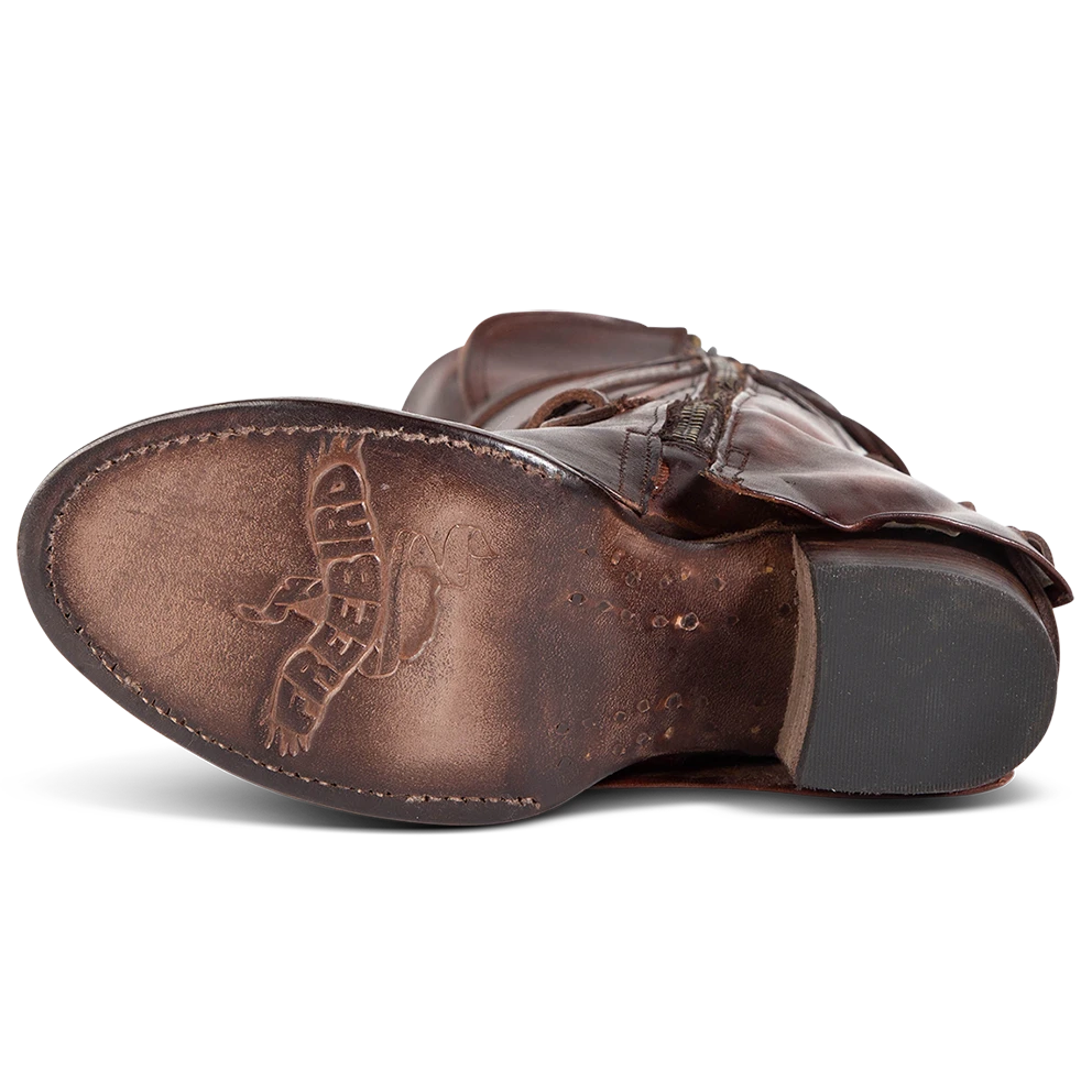 Meet CASSIUS, an eye-catching addition to your collection. Its unique back-lacing ankle overlay is complemented by stunning leather straps and silver buckles that wrap its tall shaft. A full inside brass zip closure allows for effortless wear.