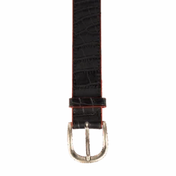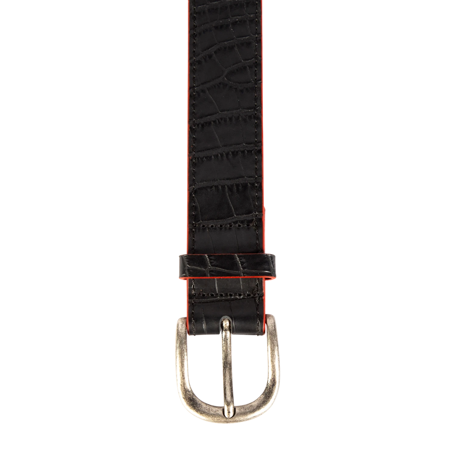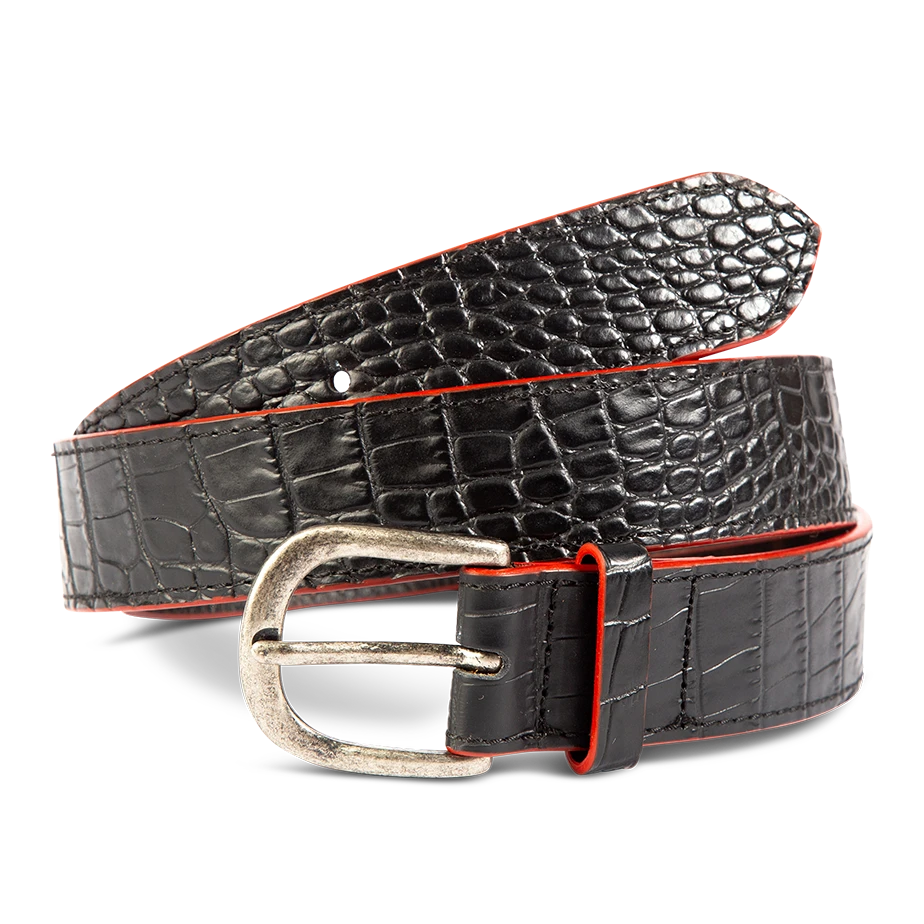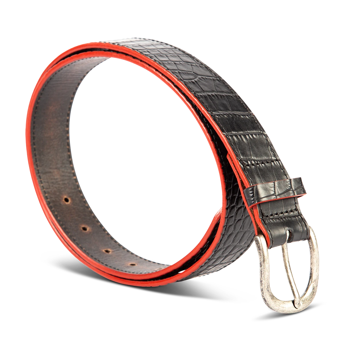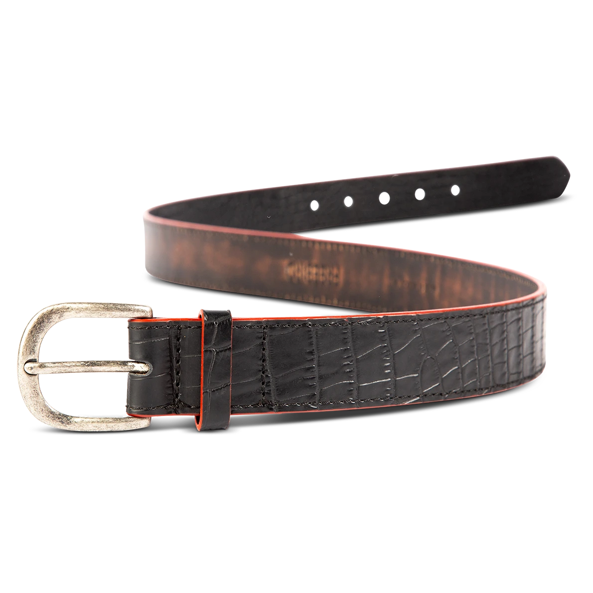 Featuring CLASSIC detailing, this full-grain leather belt makes any look classic. Constructed with five holes for an adjustable fit and finished with a metal buckle. Handcrafted in Mexico with 100% full-grain leather. Designed with 100% full-grain croco embossed leather.