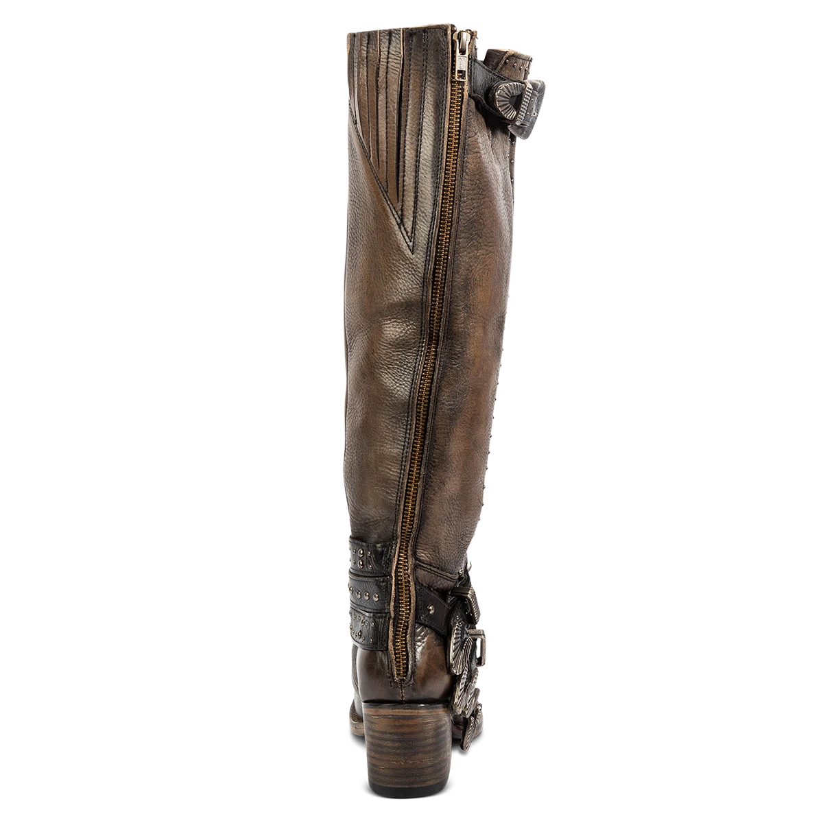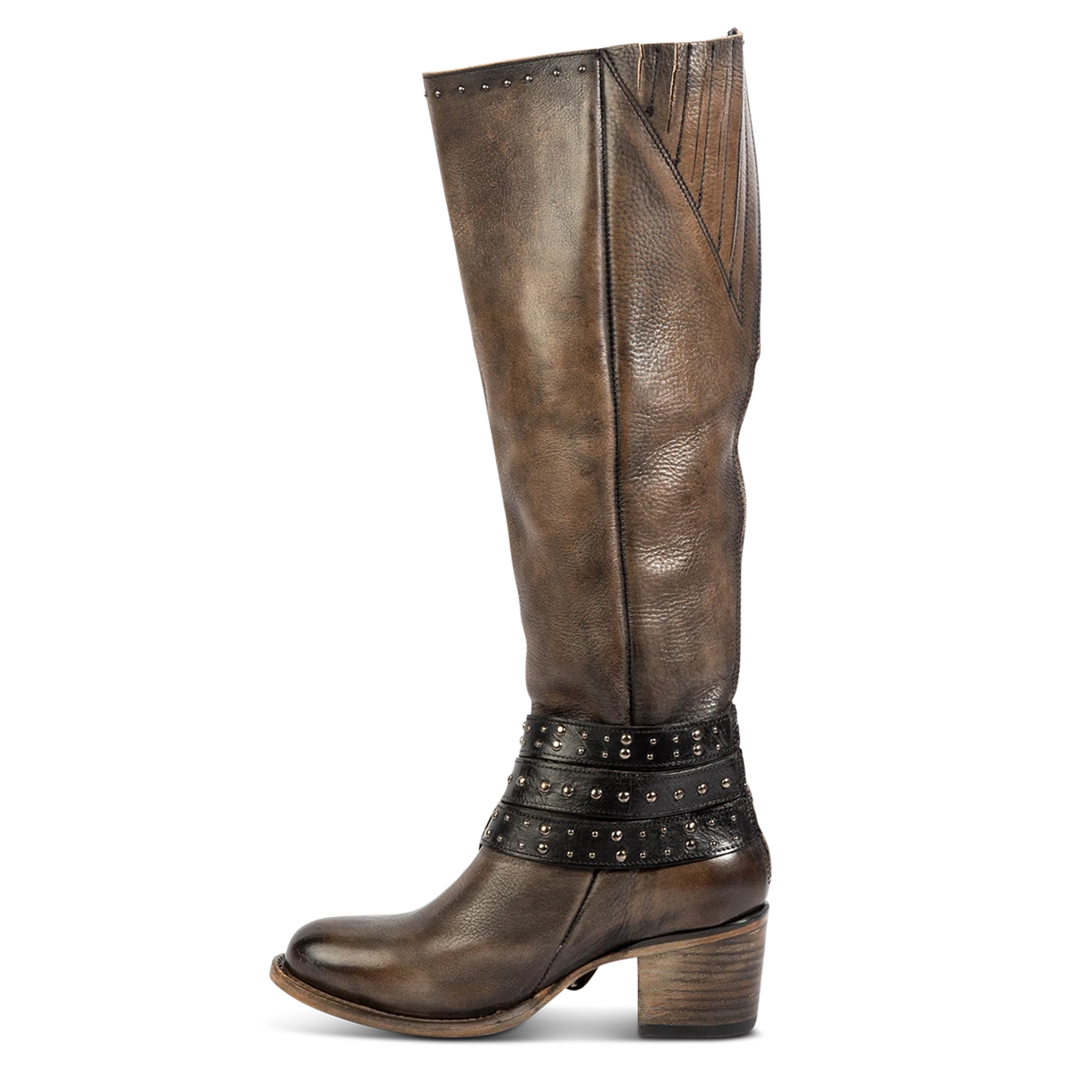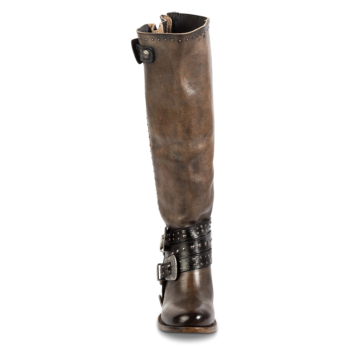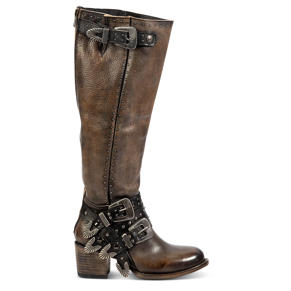 Buckle up for colder weather with CLEO. Handcrafted from 100% full-grain leather, this structured tall boot features decorative in-step buckles, contrasting stud embellishments and gore detailing. Built on a round-toe construction with a sturdy block heel, CLEO brings a modern upgrade to a classic silhouette favorite.Â