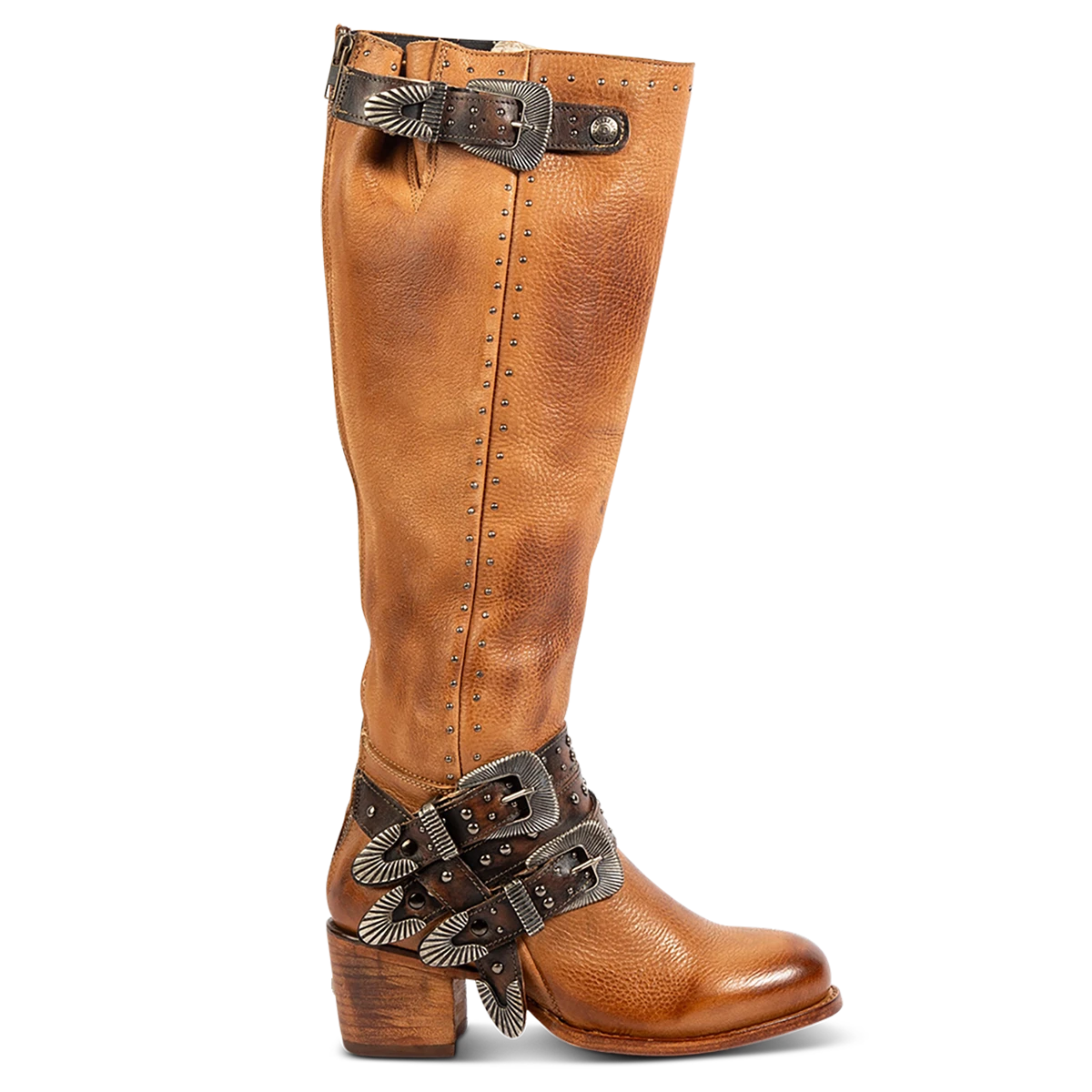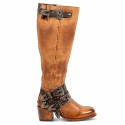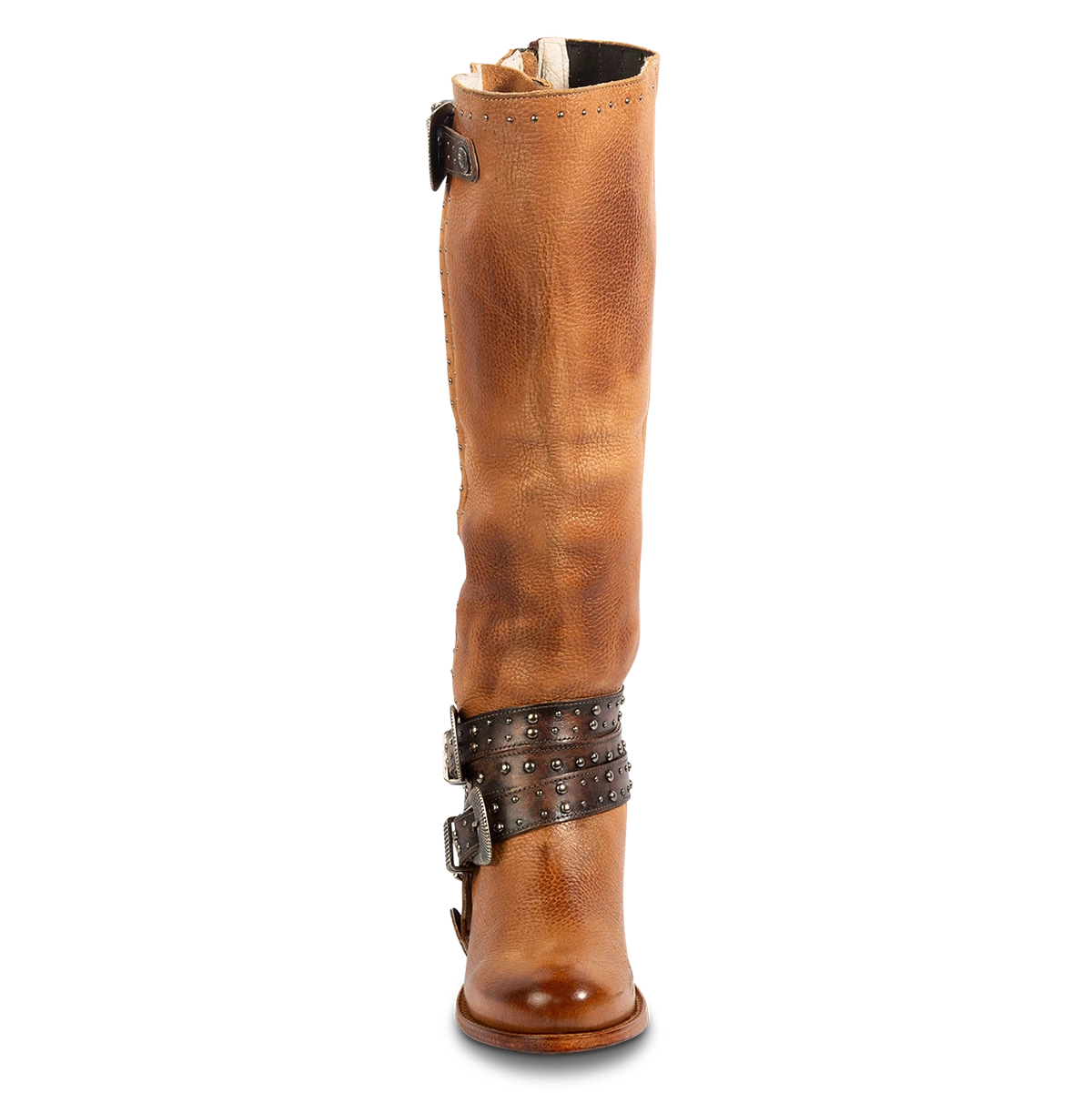 Buckle up for colder weather with CLEO. Handcrafted from 100% full-grain leather, this structured tall boot features decorative in-step buckles, contrasting stud embellishments and gore detailing. Built on a round-toe construction with a sturdy block heel, CLEO brings a modern upgrade to a classic silhouette favorite.Â