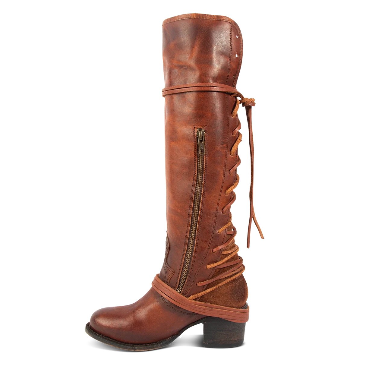 The COAL: our most loved tall boot. An all-season favorite with wrapped leather detailing, an expandable back lacing panel, and an inside brass zip closure. Accentuate the COAL with a side slit maxi dress or pair with a chunky sweater for a cozy look.