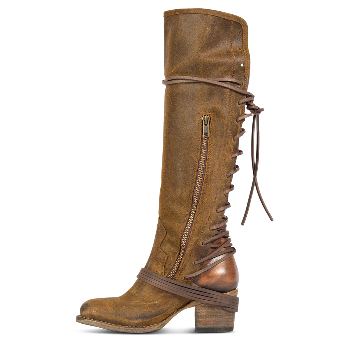 The COAL: our most loved tall boot. An all-season favorite with wrapped leather detailing, an expandable back lacing panel, and an inside brass zip closure. Accentuate the COAL with a side slit maxi dress or pair with a chunky sweater for a cozy look.