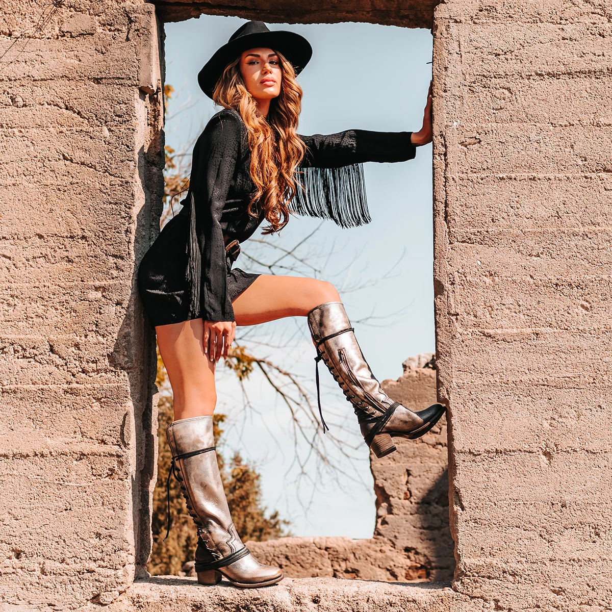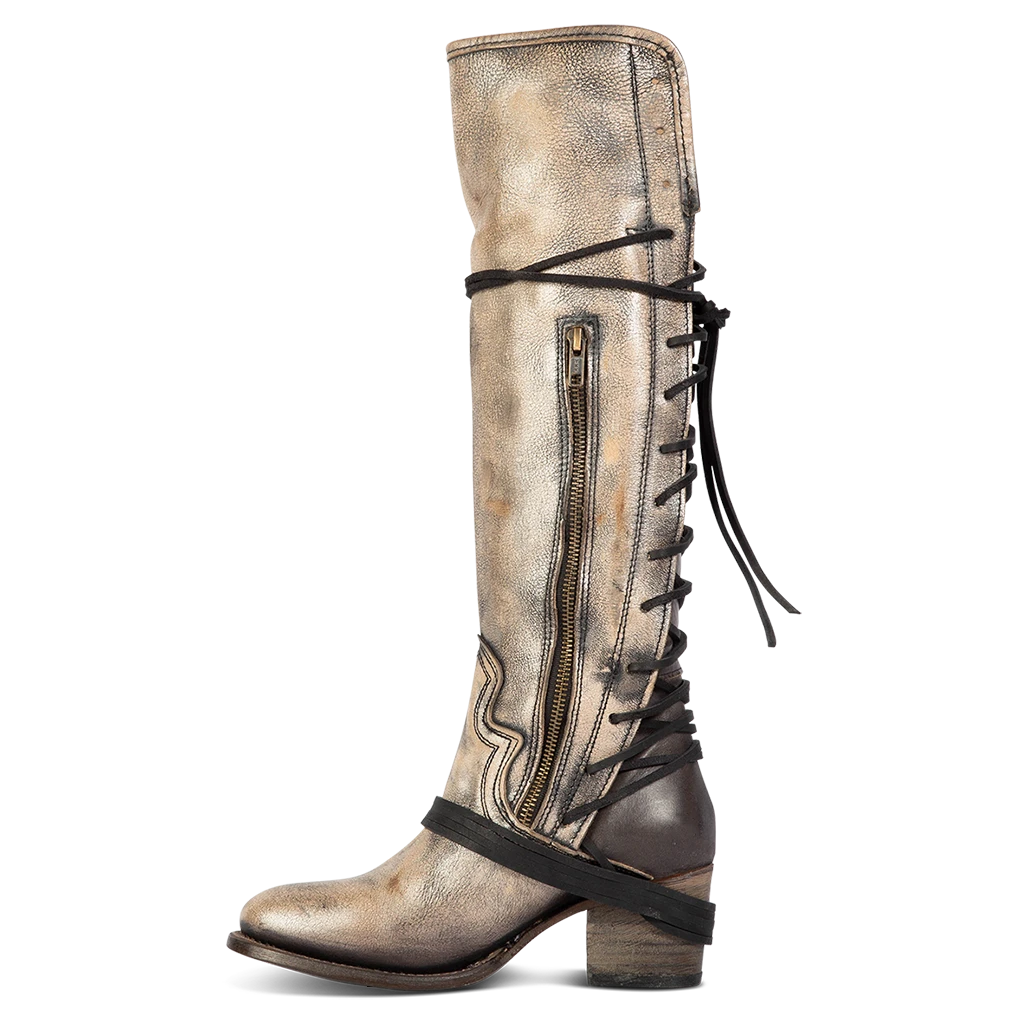 The COAL: our most loved tall boot. An all-season favorite with wrapped leather detailing, an expandable back lacing panel, and an inside brass zip closure. Accentuate the COAL with a side slit maxi dress or pair with a chunky sweater for a cozy look.