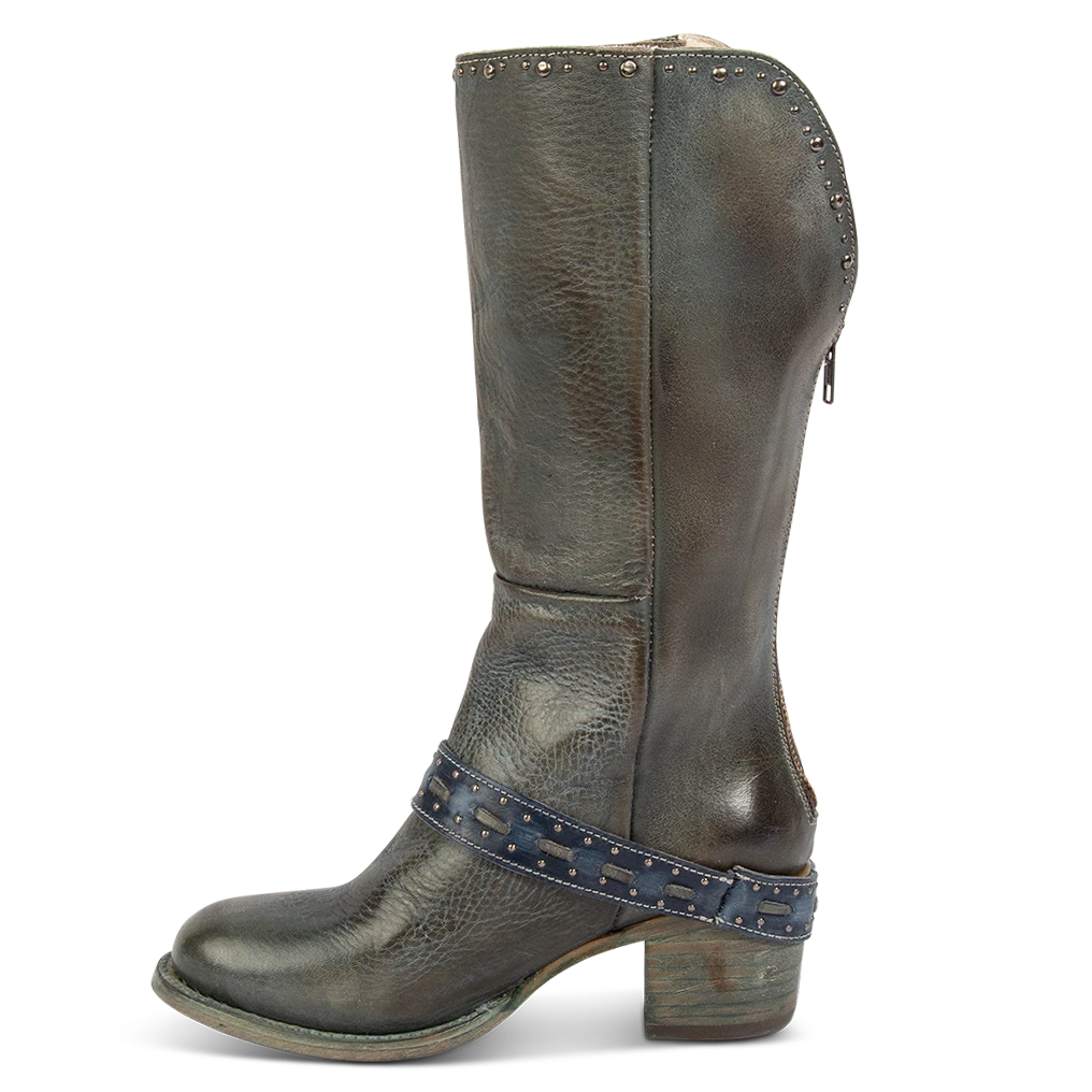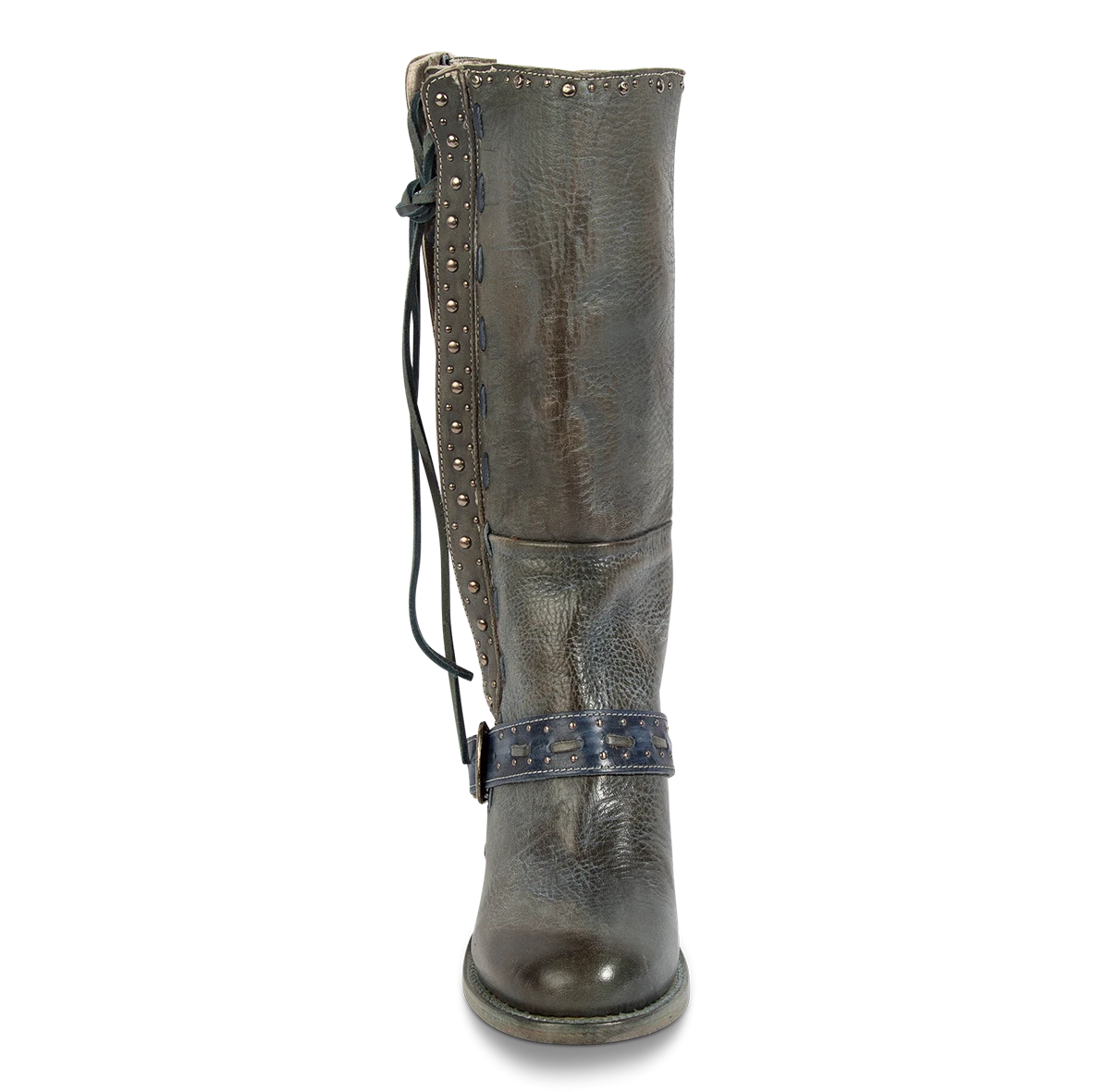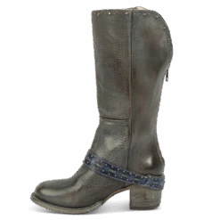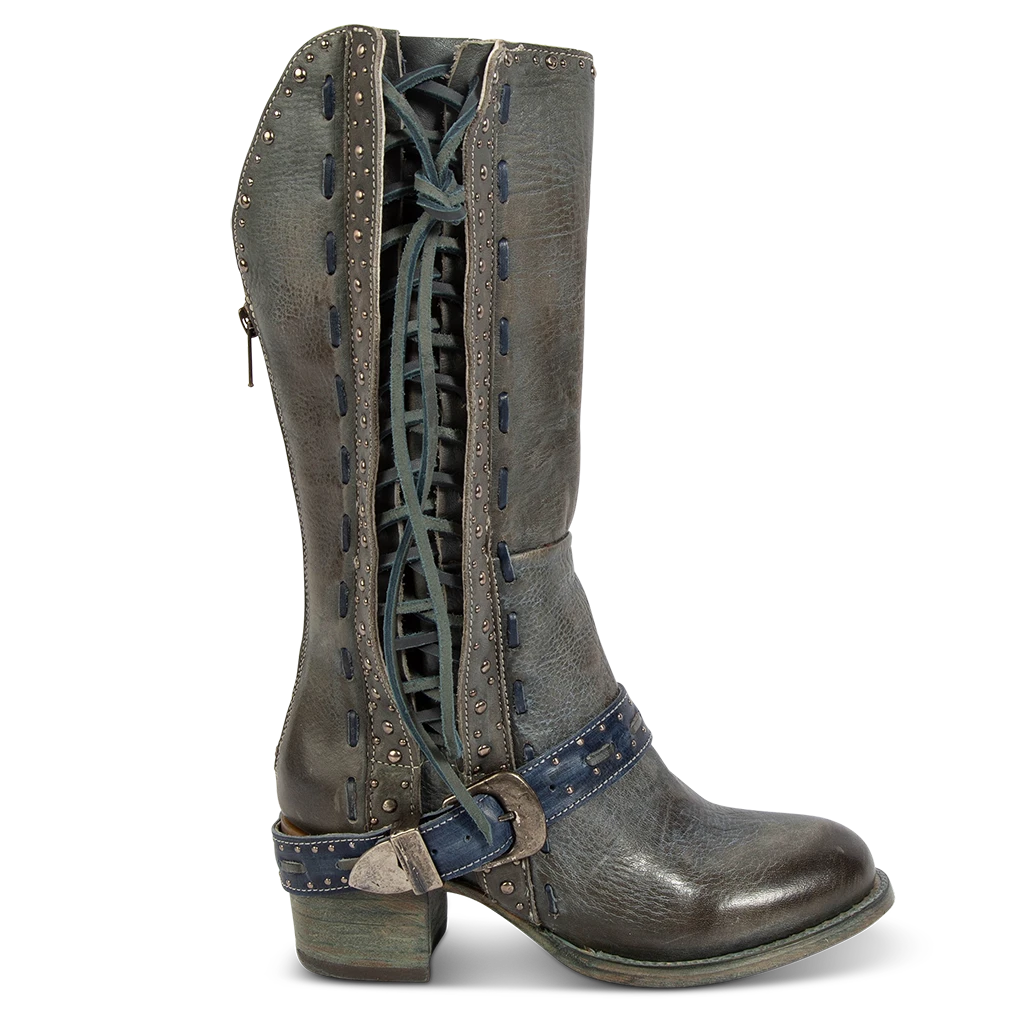 CONTOUR is designed with charming and feminine details that are far from subtle, making this statement boot a new wardrobe staple. Constructed with 100% full grain leather, this side lacing boot emphasizes comfort with a rounded toe bed and calf cut-out for optimal space. Finished with a working brass zipper and adjustable instep belt.Â