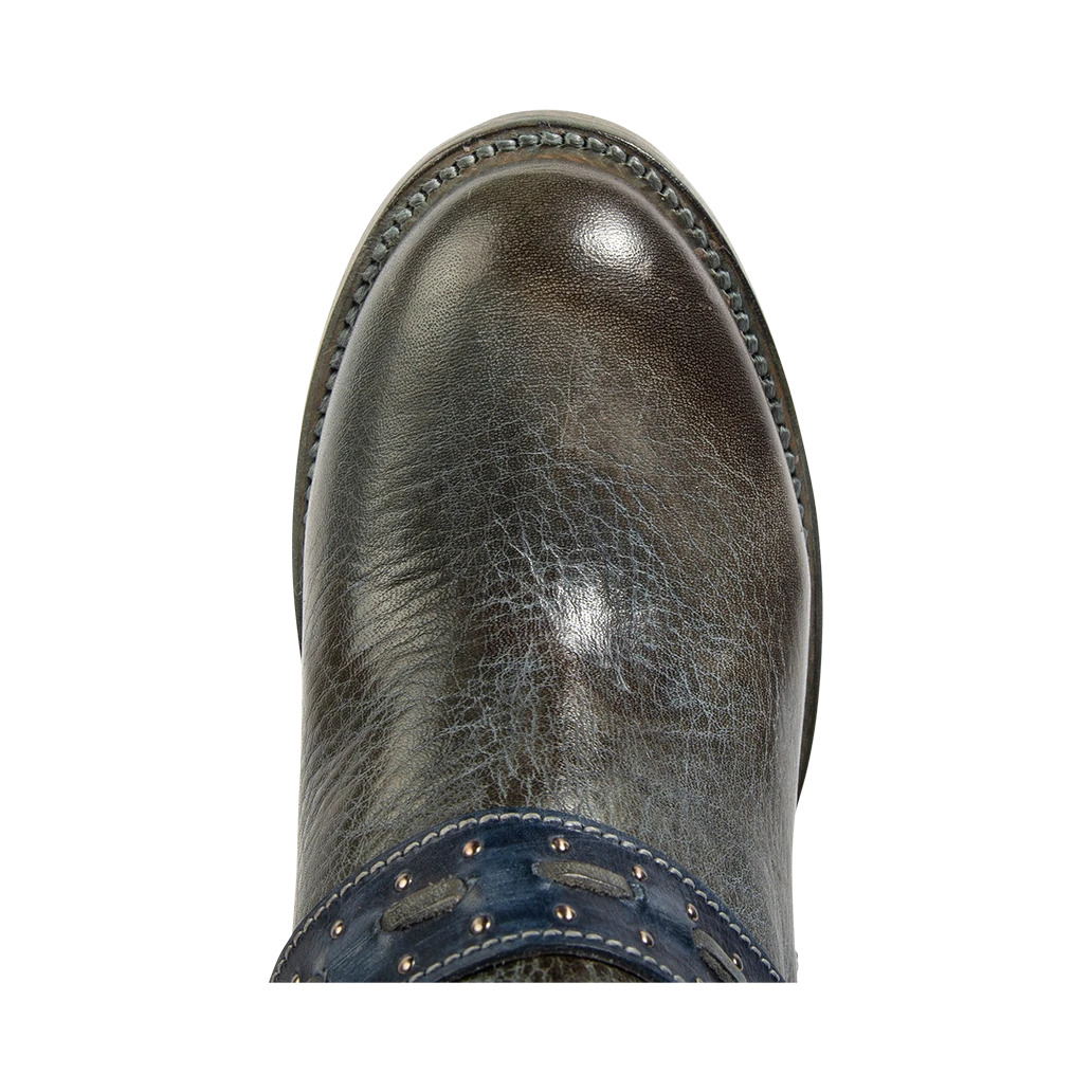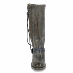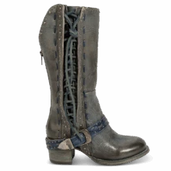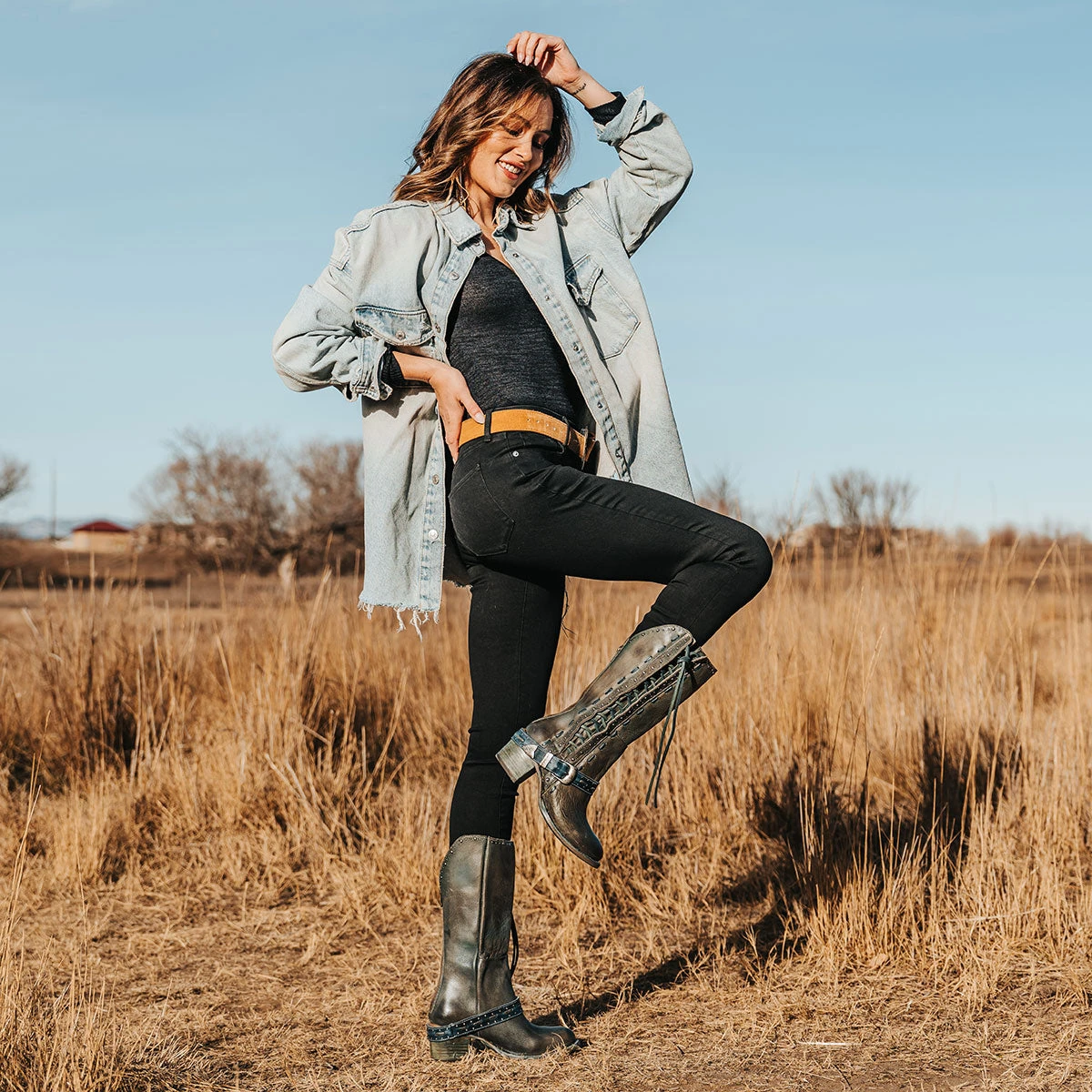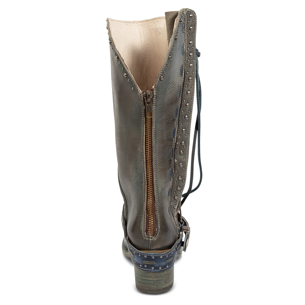 CONTOUR is designed with charming and feminine details that are far from subtle, making this statement boot a new wardrobe staple. Constructed with 100% full grain leather, this side lacing boot emphasizes comfort with a rounded toe bed and calf cut-out for optimal space. Finished with a working brass zipper and adjustable instep belt.Â