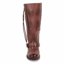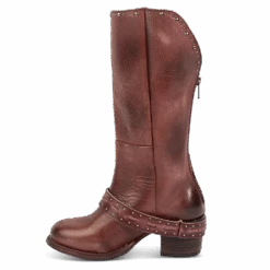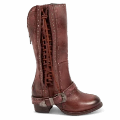 CONTOUR is designed with charming and feminine details that are far from subtle, making this statement boot a new wardrobe staple. Constructed with 100% full grain leather, this side lacing boot emphasizes comfort with a rounded toe bed and calf cut-out for optimal space. Finished with a working brass zipper and adjustable instep belt.Â
