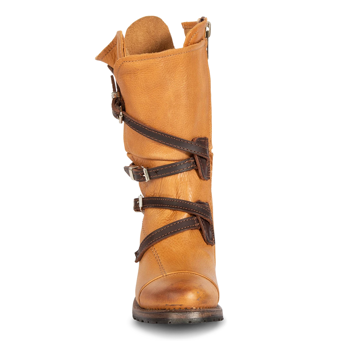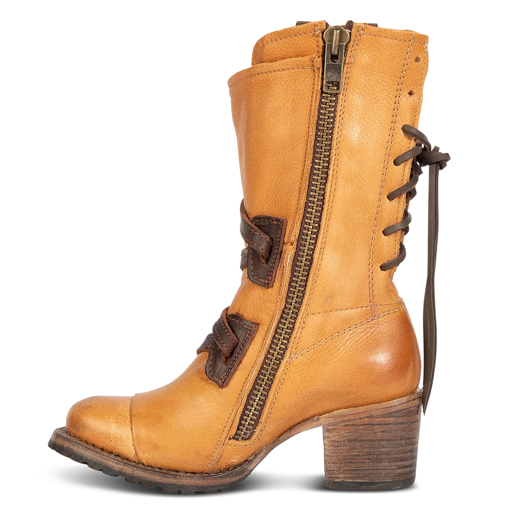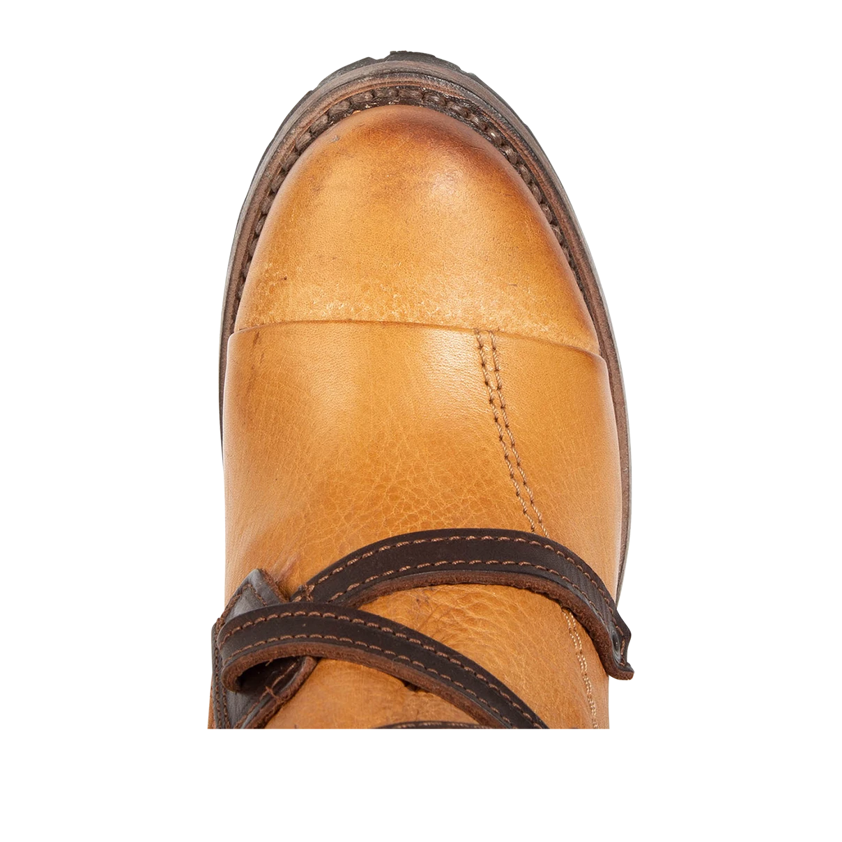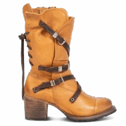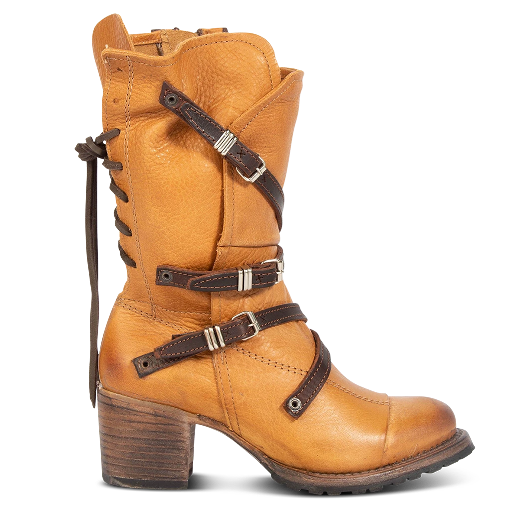 Imagine looking good from all angles. Designed with a slouchy silhouette, CORA is fun, yet functional with its inside brass zip closure and rubber tread sole. Its overlapped shaft features leather straps with adjustable silver buckles and a back-lacing design. Comfortable and unique, you won’t go anywhere without your CORA.