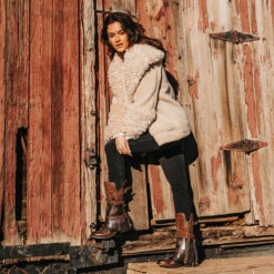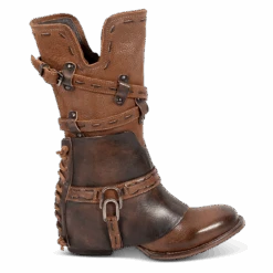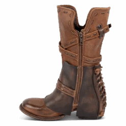 A combination of details from some of our most-loved styles in one statement making boot – introducing CROW. Handcrafted with 100% full grain leather, this symmetrical cutout boot is detailed with a two-tone leather shaft overlay, criss-cross belted straps and decorative back panel lacing. Constructed with functionality components such as an inside working zipper and block heel makes CROW a new wardrobe favorite.Â
