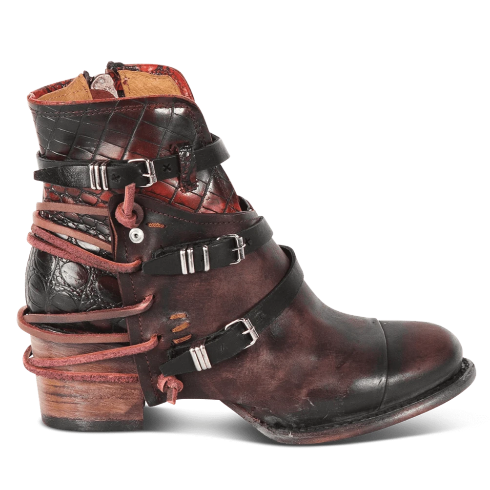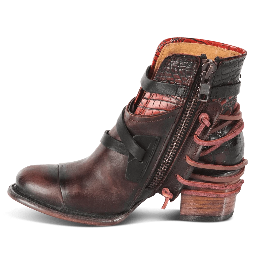 Crafted with a leather overlay to partially cover a plunging front dip, CRUE is a versatile FREEBIRD classic that is bound to stand out. This one-of-a-kind staple can be styled with or without socks and includes unique back lacing, adjustable leather straps with silver buckles, and an inside brass zip closure. Make your whole CRUE stop and stare by styling with your everyday raw hem denim.