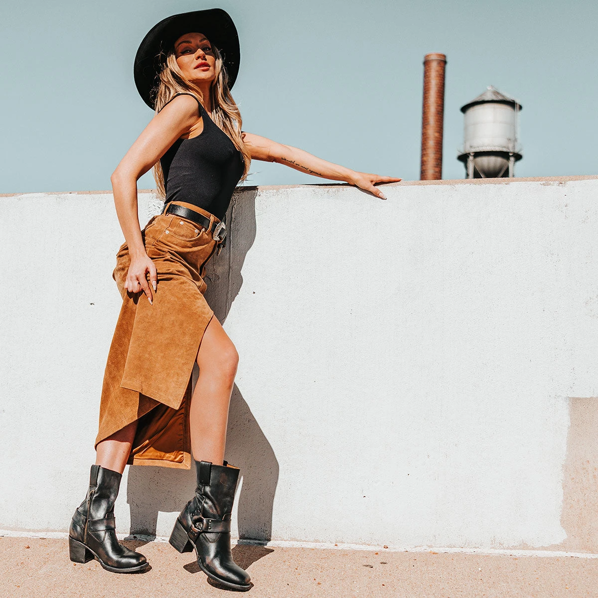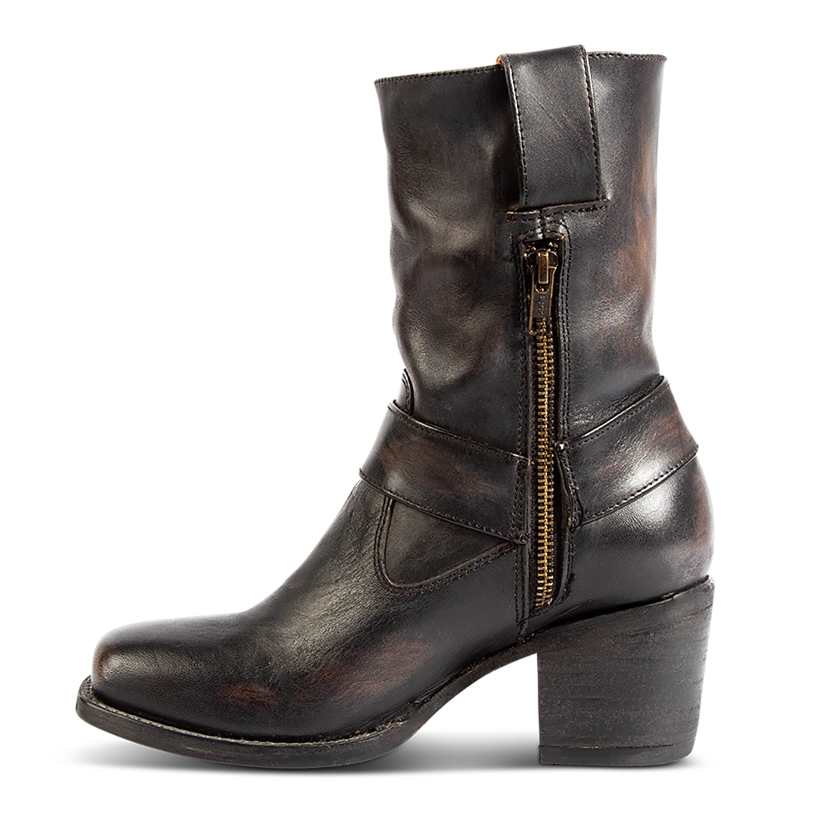 Simple yet stylish, the DARCY boot is a wardrobe staple. Designed with a studded ankle harness, leather pull straps, an inside zip closure and a square toe. This boot is just as easy to dress up or wear down.Â
