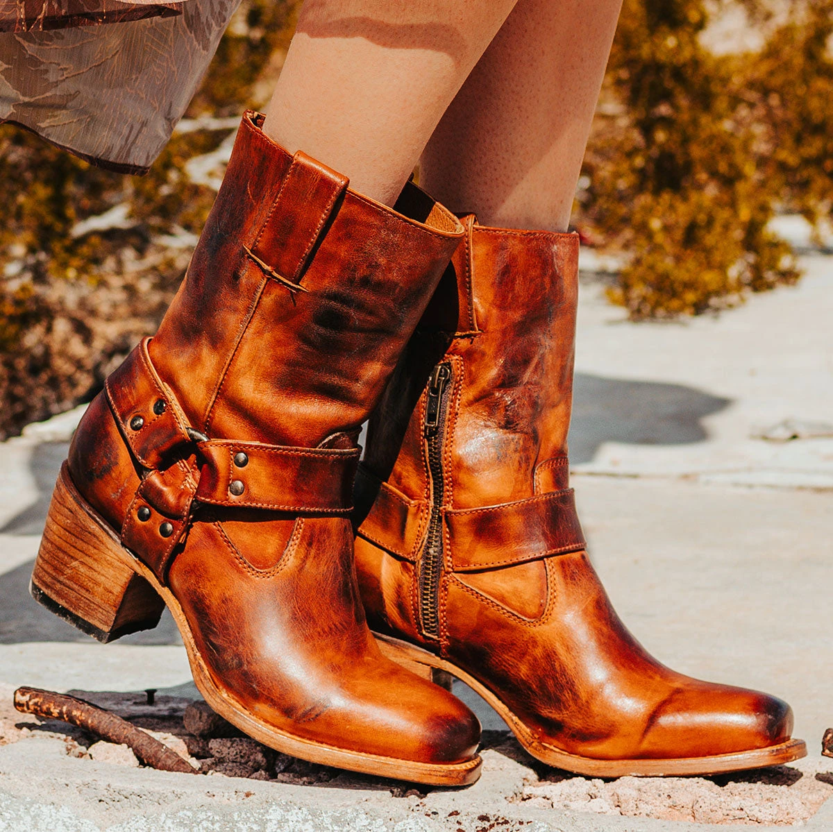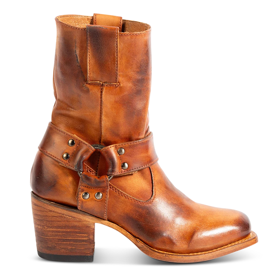 Simple yet stylish, the DARCY boot is a wardrobe staple. Designed with a studded ankle harness, leather pull straps, an inside zip closure and a square toe. This boot is just as easy to dress up or wear down.Â