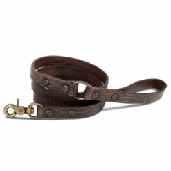 Get ready to be stopped on your next walk with FREEBIRD newest dog accessory. This leash was constructed with an antique brass oval swivel closure and a matching hardware throughout. This sleek leash is fashionable and made for play. Handcrafted in Mexico.