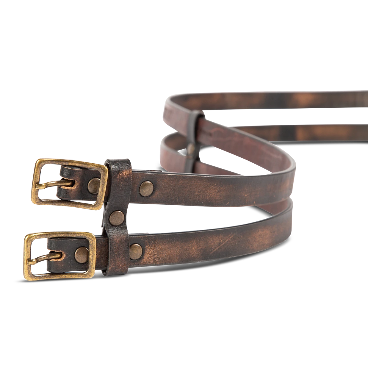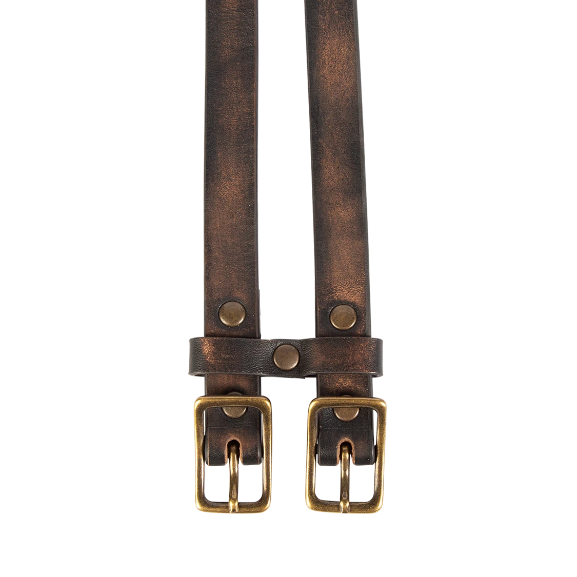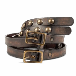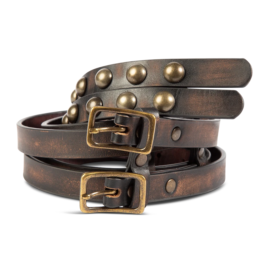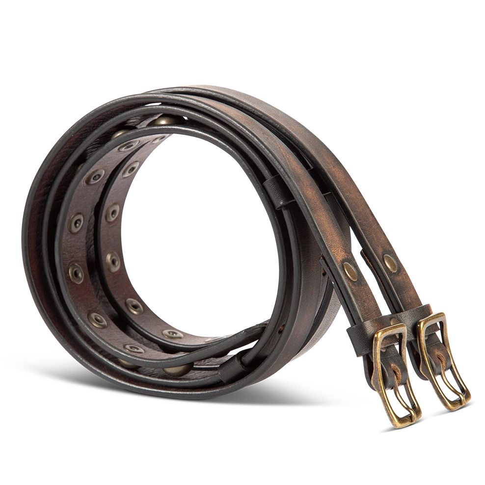 So good we had to double it. This waist belt features a unique double strap that is decorated with brass studs. Completed with two single-prong brass buckles that create a customizable fit to your waist. Handcrafted in Mexico with 100% full-grain leather.