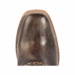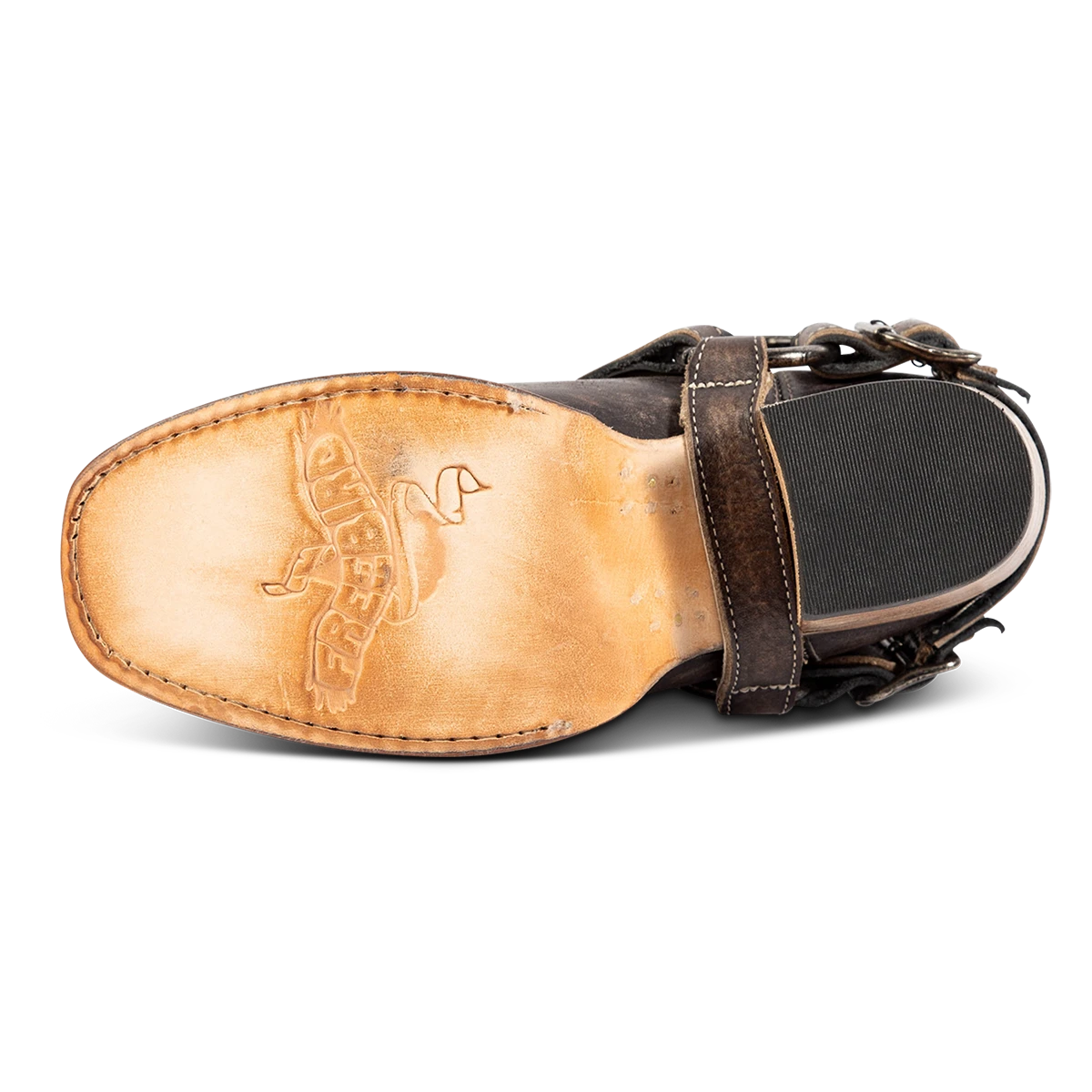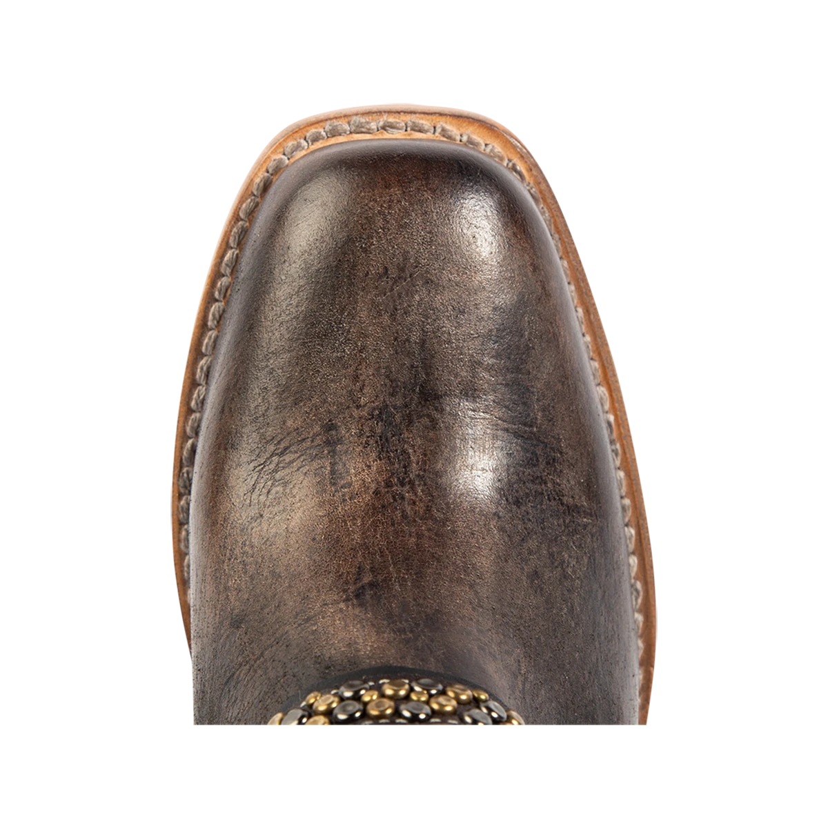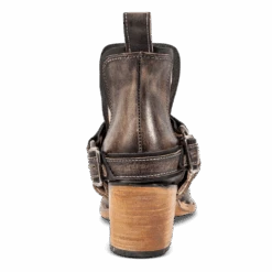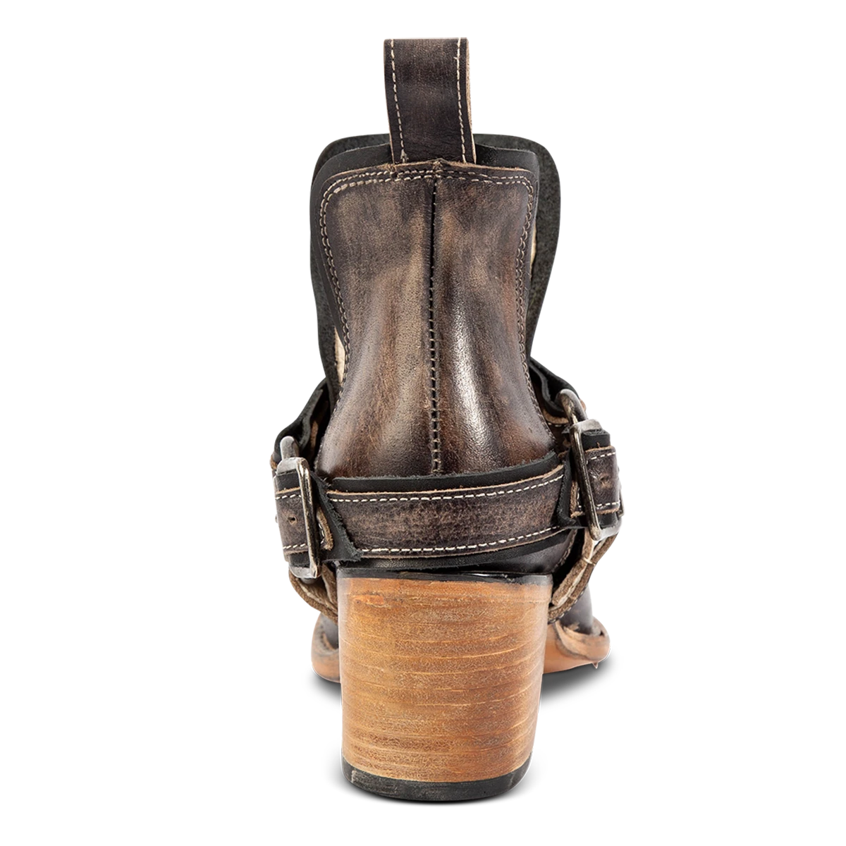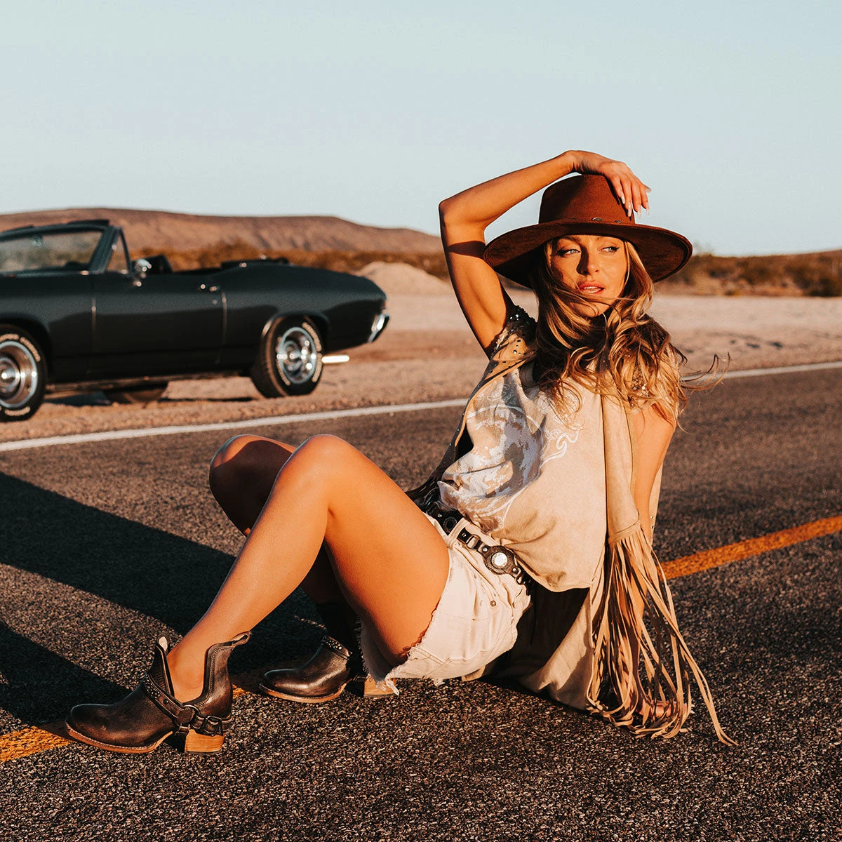 Inspired by concrete cowgirls with a Western attitude – DUSTY. Designed with 100% full grain soft leather and a removable harness with dimensional studded embellishments. Completed with top-line detailing that features a stacked heel, square toe construction and leather pull tabs for an effortlessly secure slip on bootie.Â