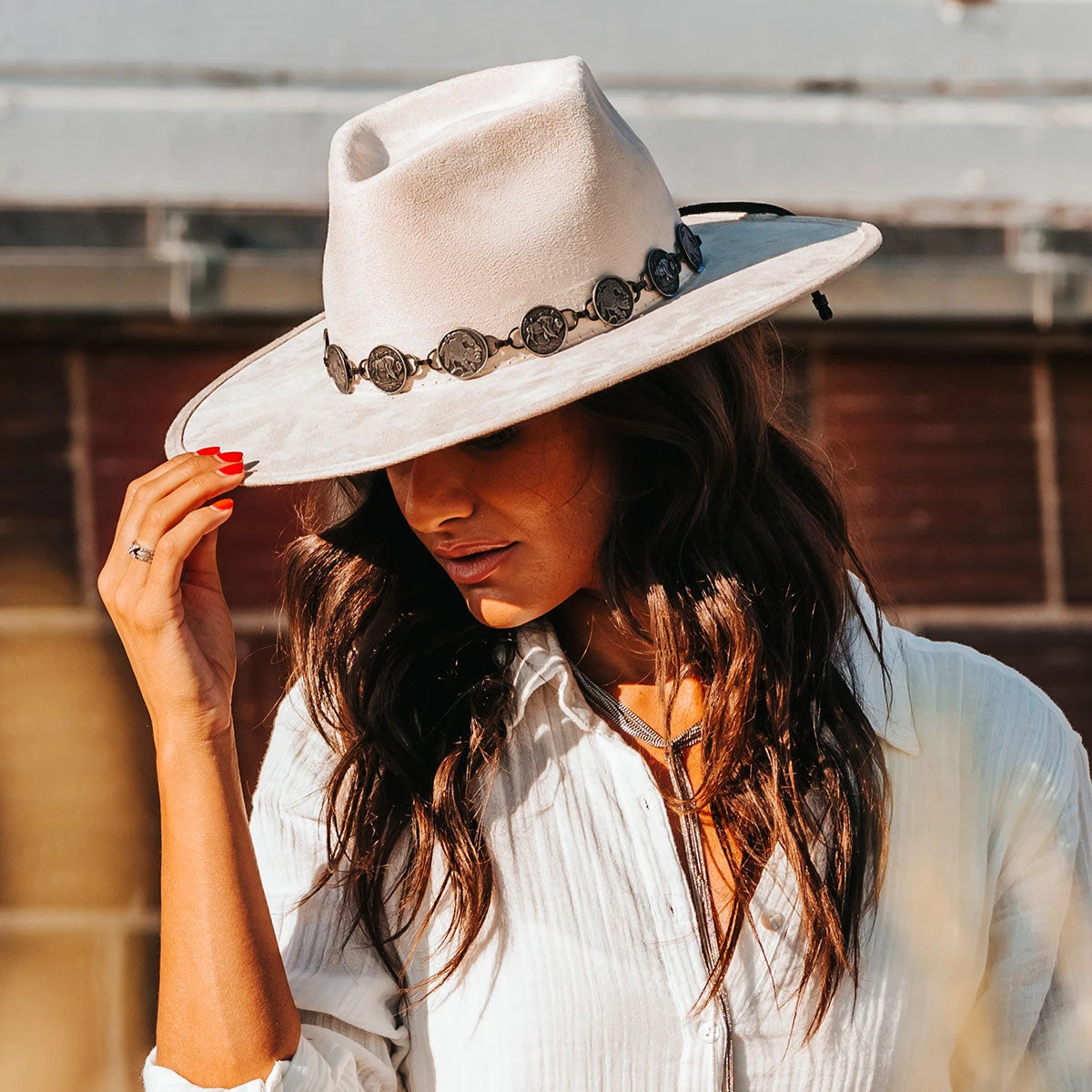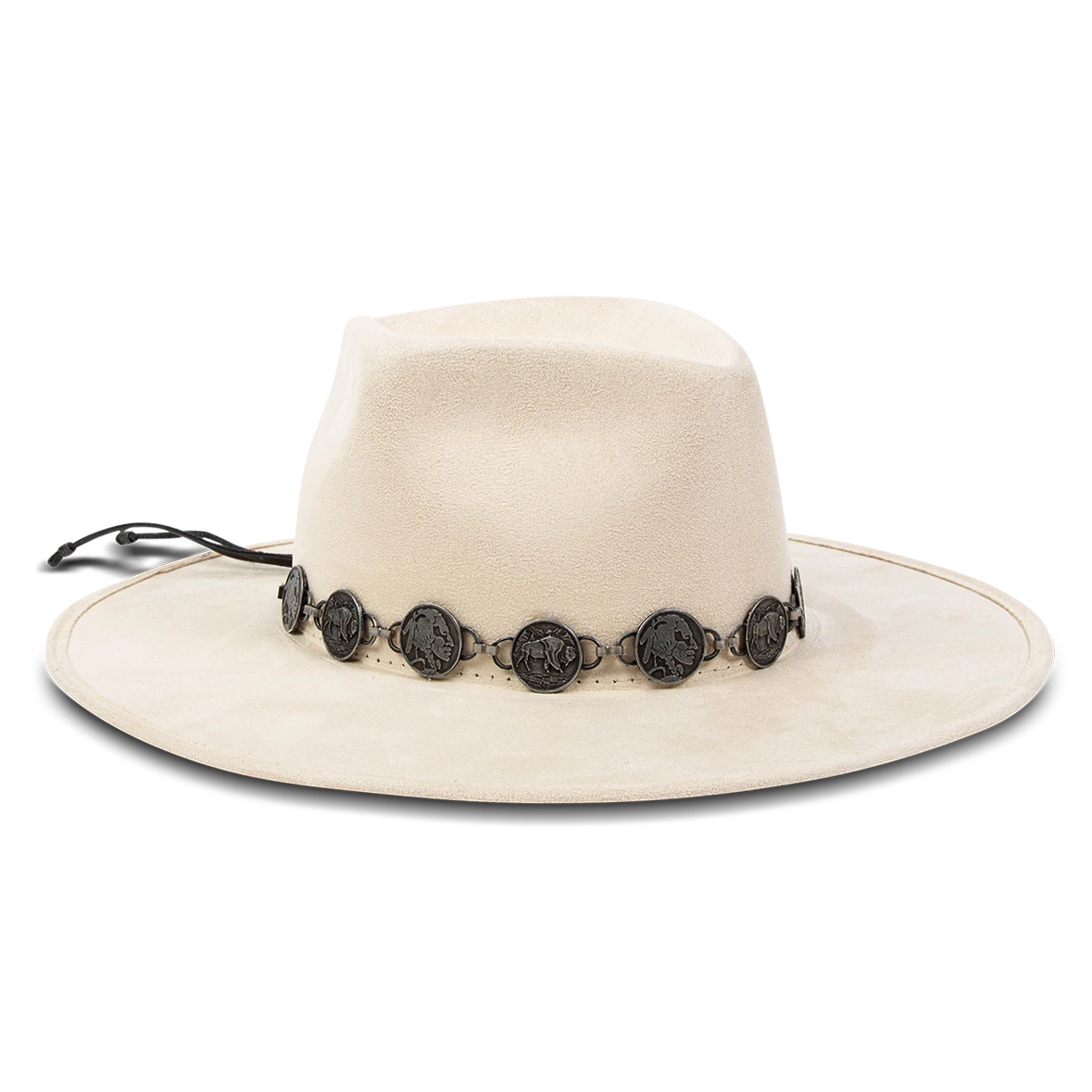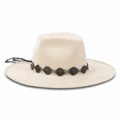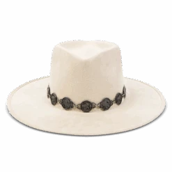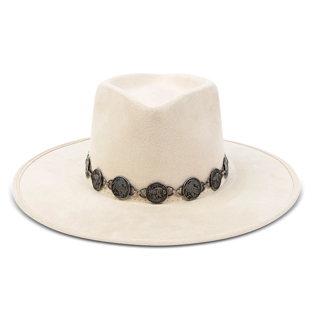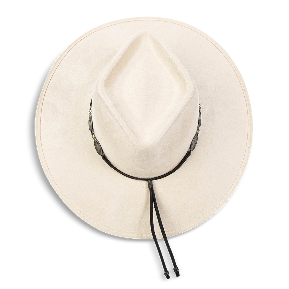 This hat was crafted with a diamond-shaped crown and a-line wide brim. GEMINI features a metal engraved coin band and an elastic sweatband for comfortable wear.