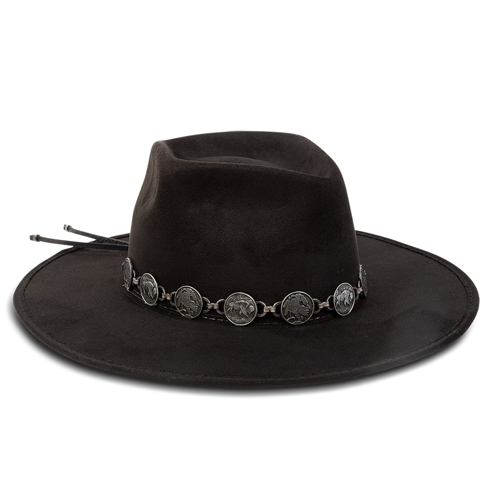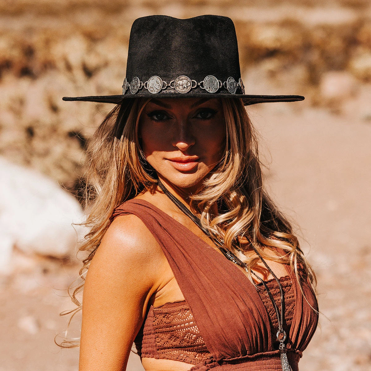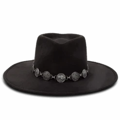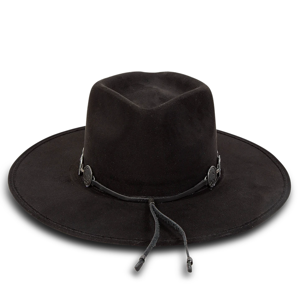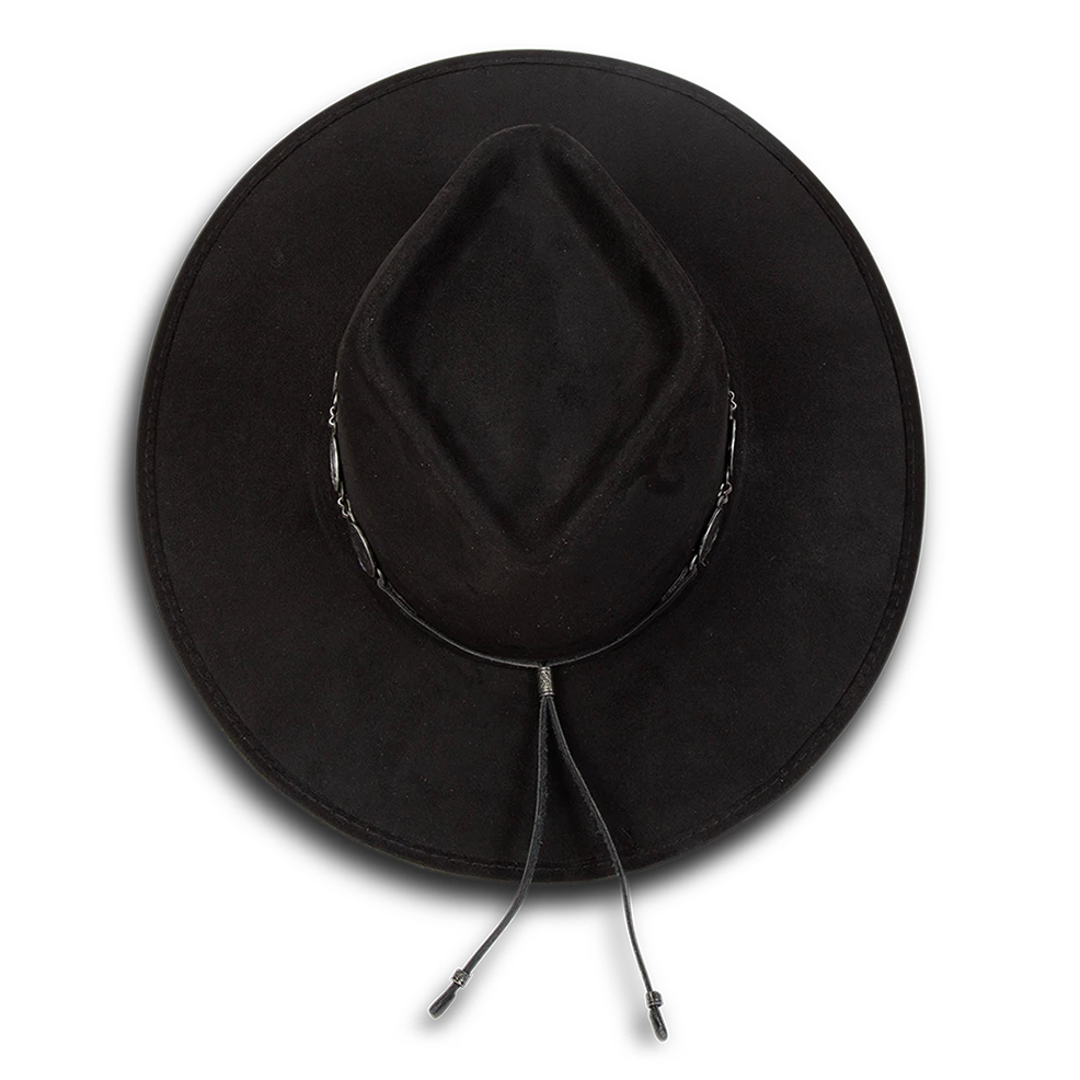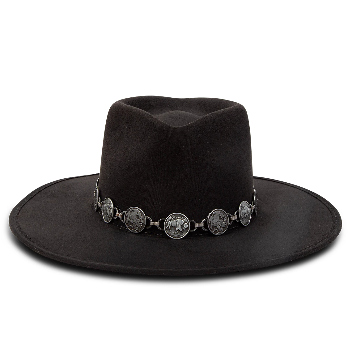 This hat was crafted with a diamond-shaped crown and a-line wide brim. GEMINI features a metal engraved coin band and an elastic sweatband for comfortable wear.