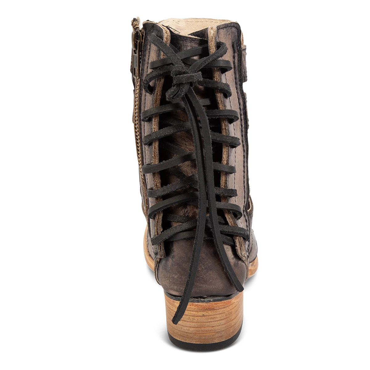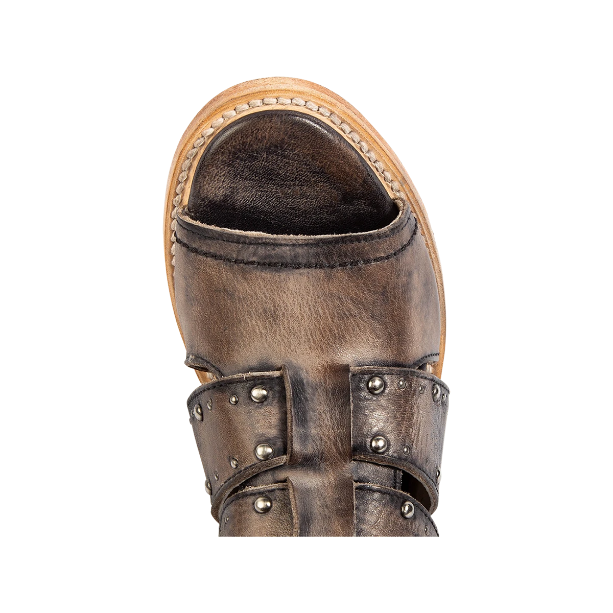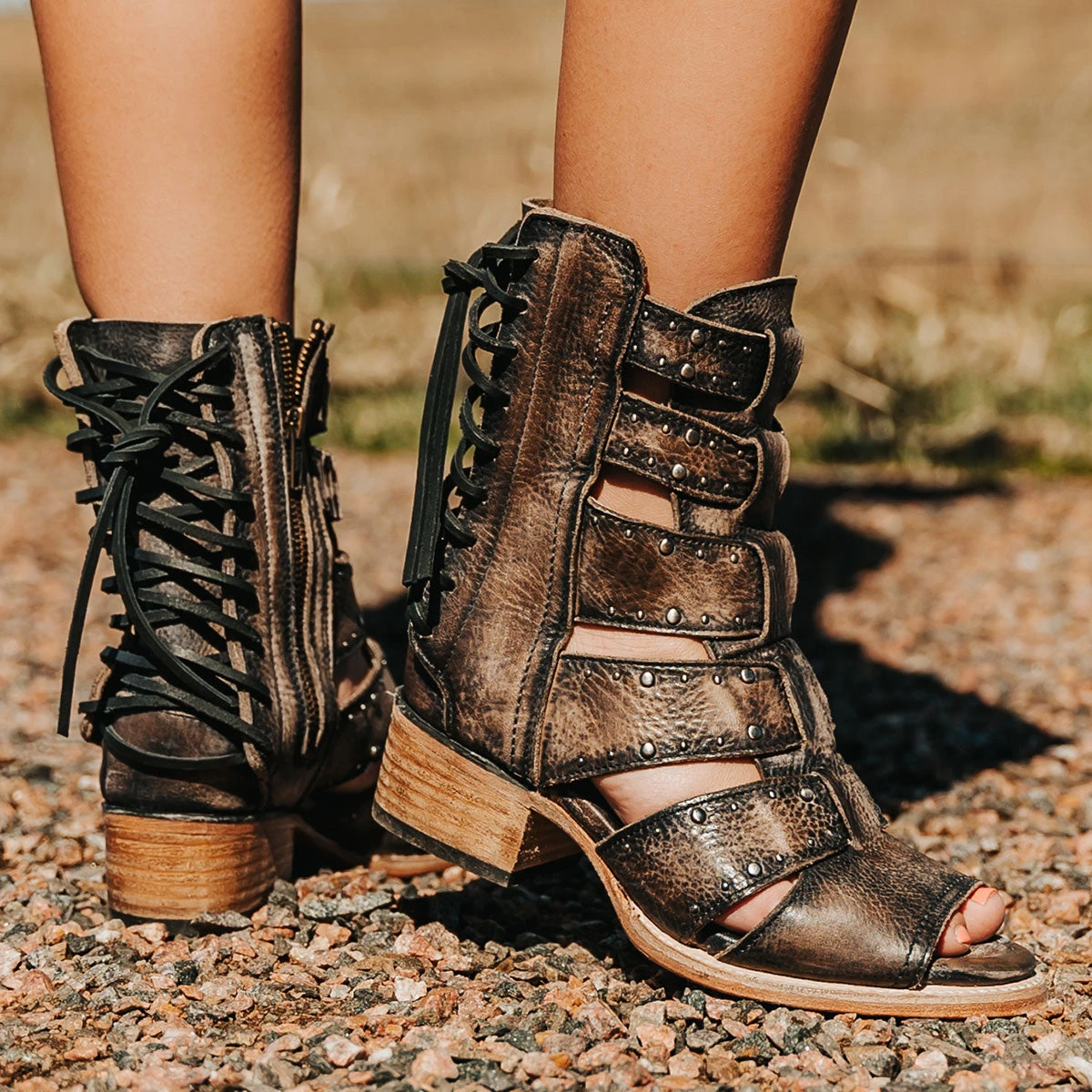 Our summer spirit is running high in GHOST. Handmade with 100% full grain leather, this low-heeled sandal is built with an exposed exterior and open toe construction, inside working zip closure and adjustable back panel lacing. Adorned with contrasting metal embellishments, these sandals are so good we’re spooked.Â