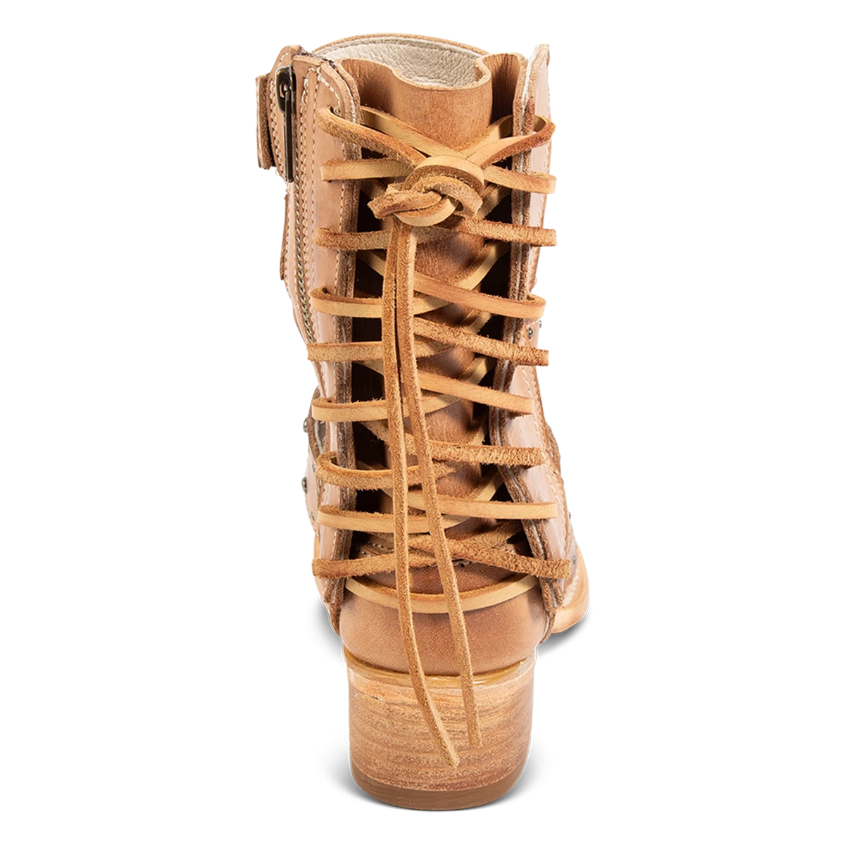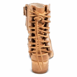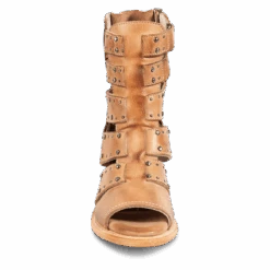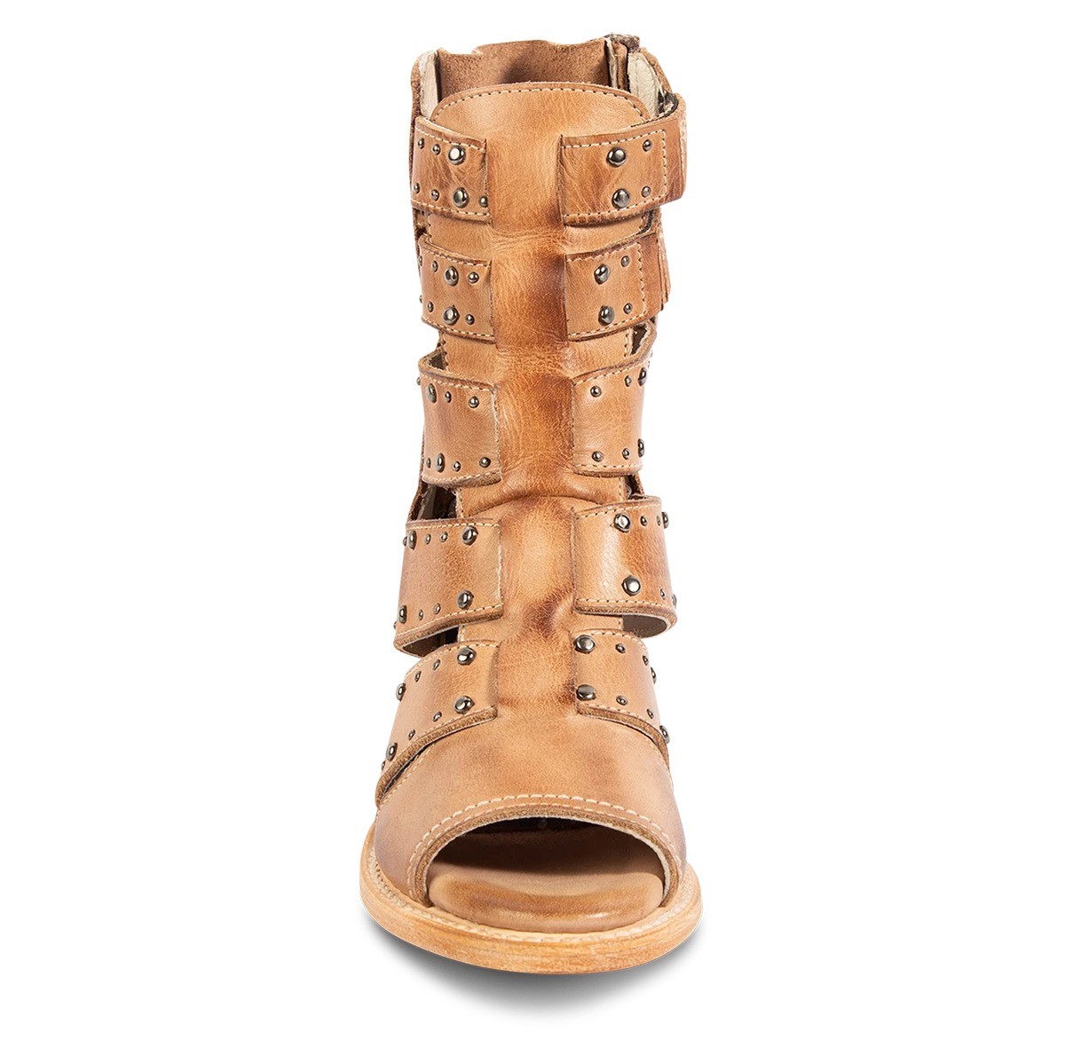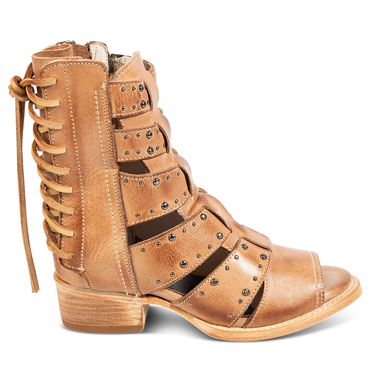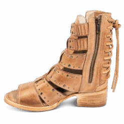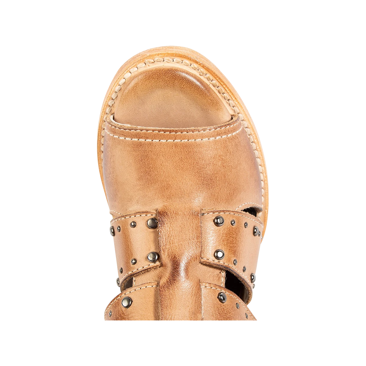 Our summer spirit is running high in GHOST. Handmade with 100% full grain leather, this low-heeled sandal is built with an exposed exterior and open toe construction, inside working zip closure and adjustable back panel lacing. Adorned with contrasting metal embellishments, these sandals are so good we’re spooked.Â