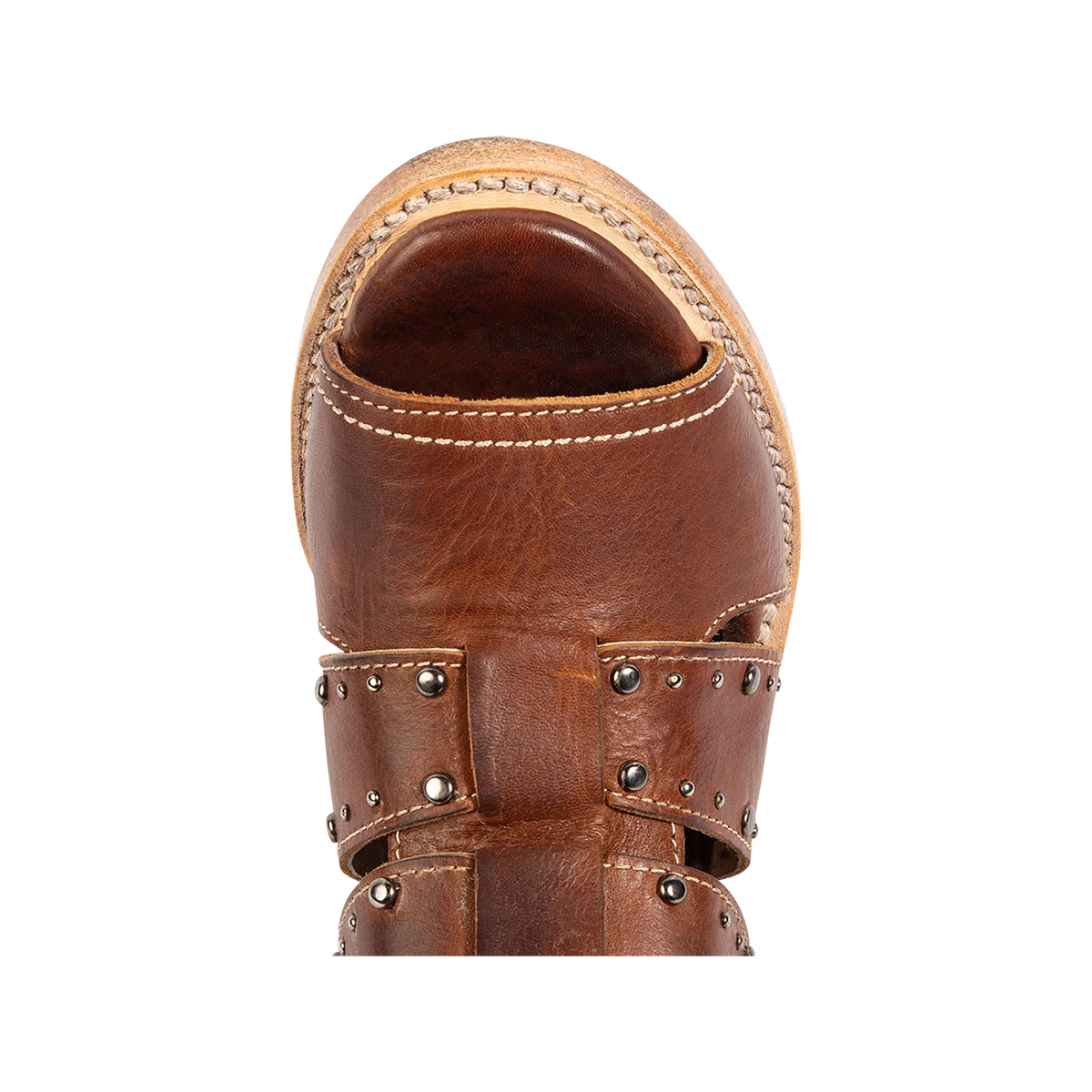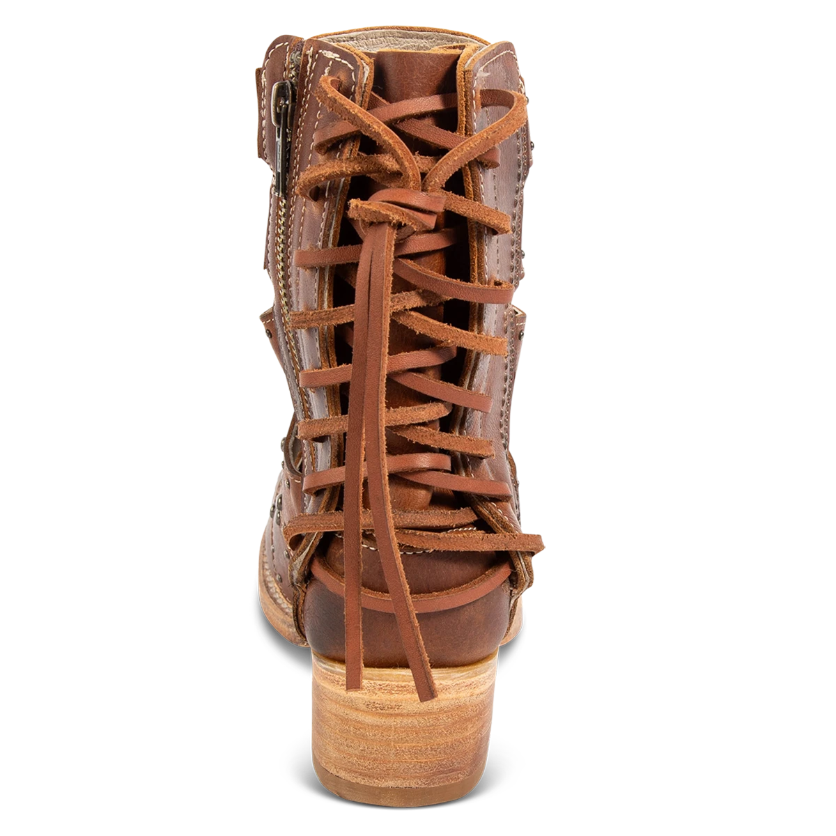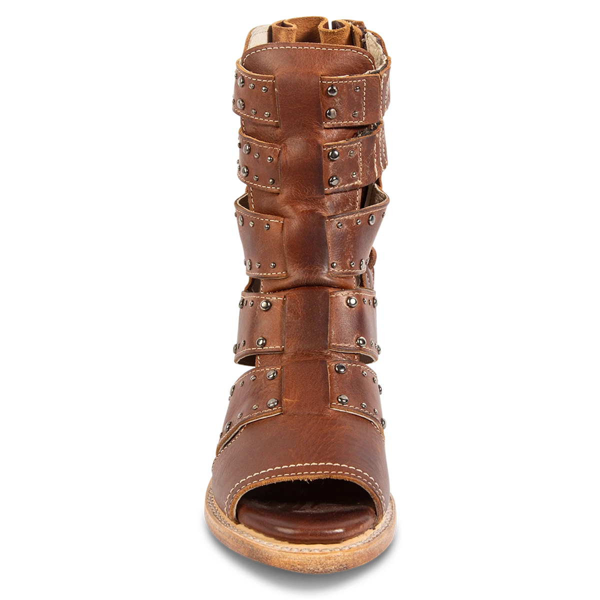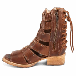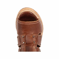 Our summer spirit is running high in GHOST. Handmade with 100% full grain leather, this low-heeled sandal is built with an exposed exterior and open toe construction, inside working zip closure and adjustable back panel lacing. Adorned with contrasting metal embellishments, these sandals are so good we’re spooked.Â