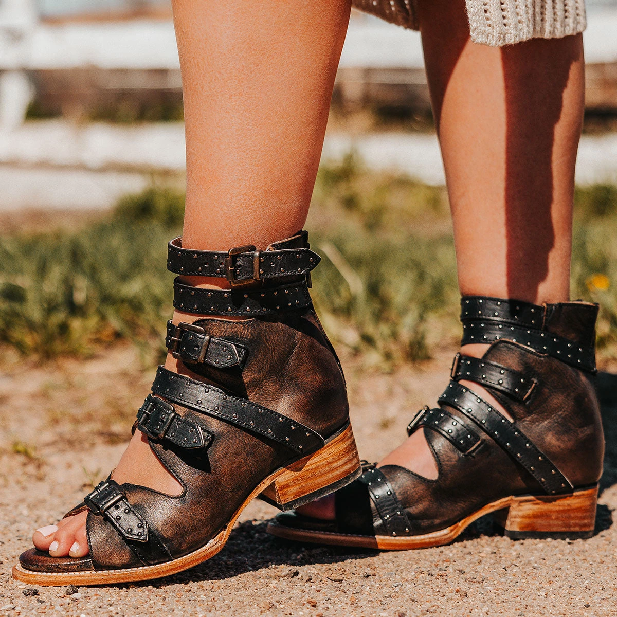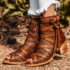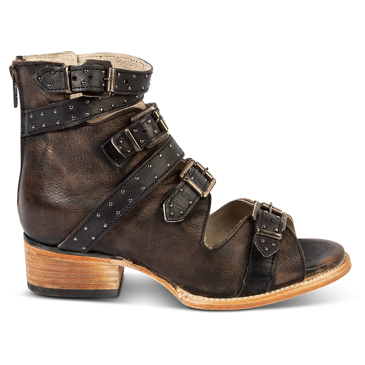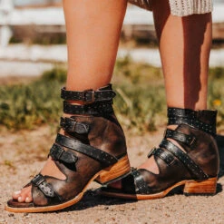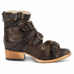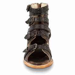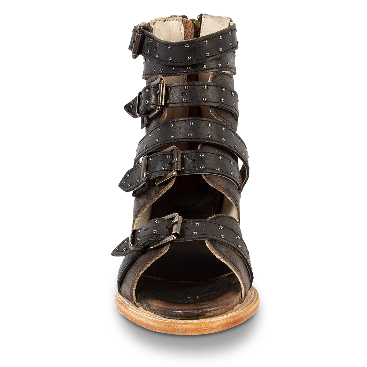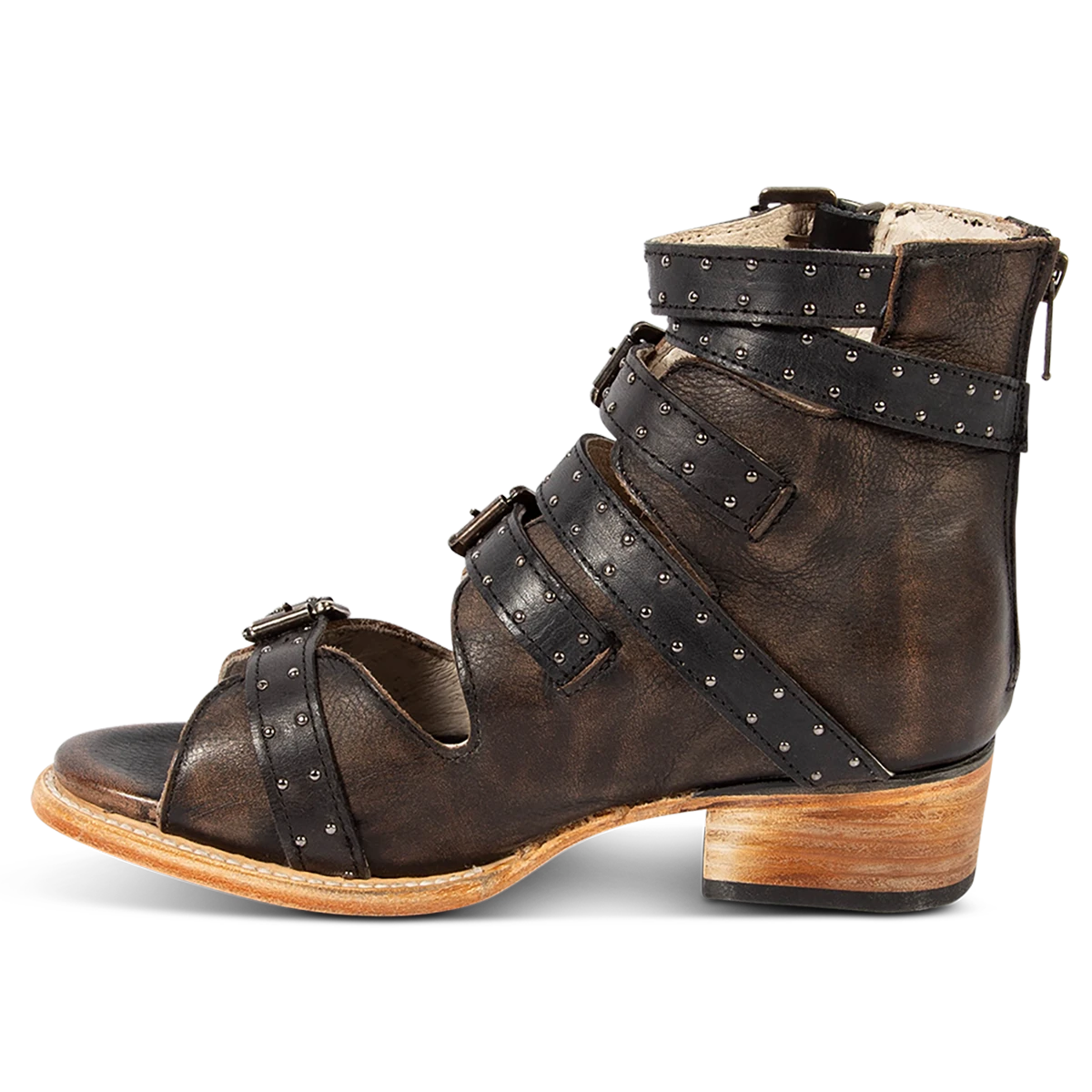 Go the distance in GUNNAR. Handcrafted with 100% full grain leather, this open-toe sandal is built on a block heel and features adjustable leather straps for a customizable fit. Finished with decorative stud embellishments and a working brass zipper, we’re gushing over GUNNAR.Â