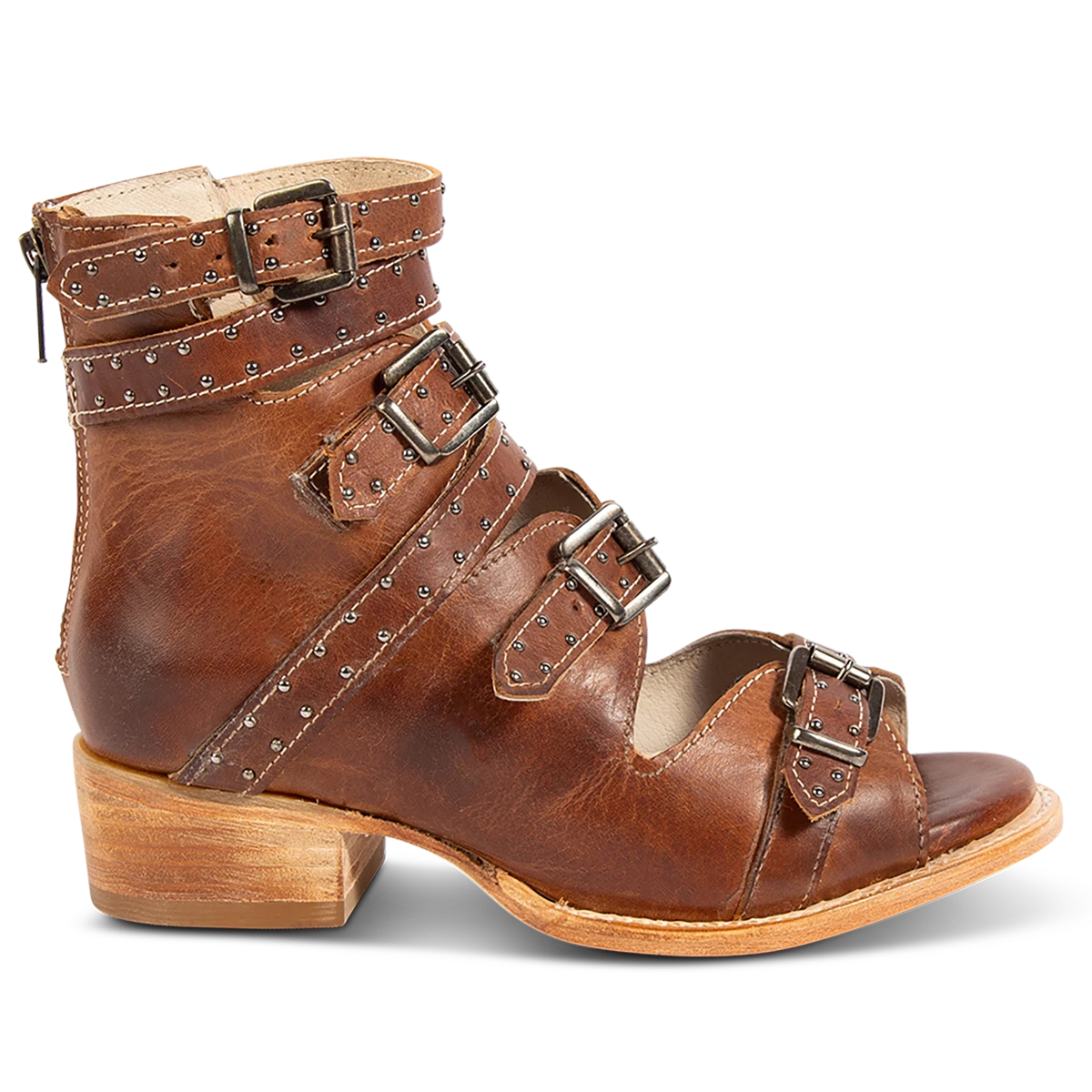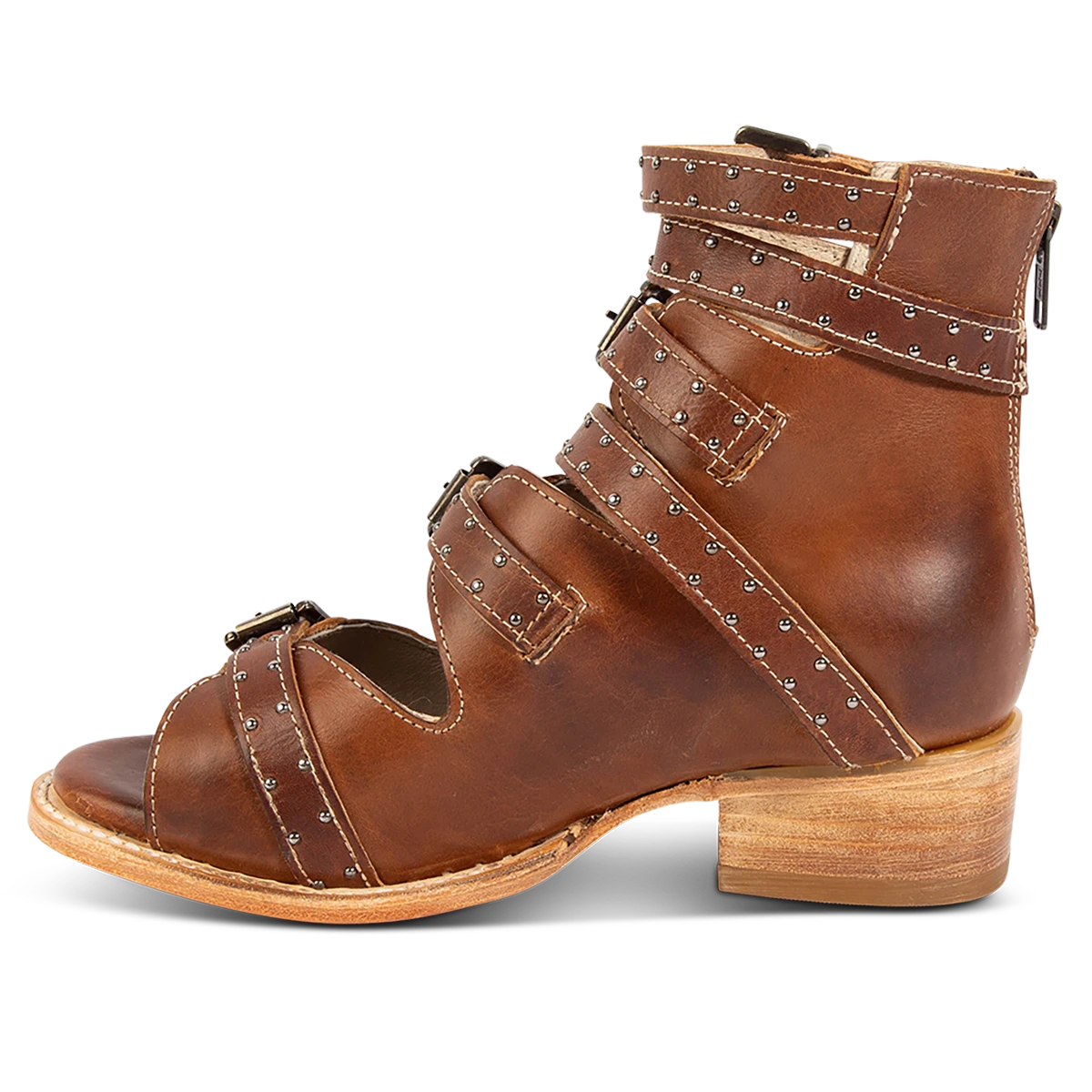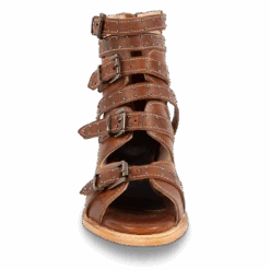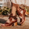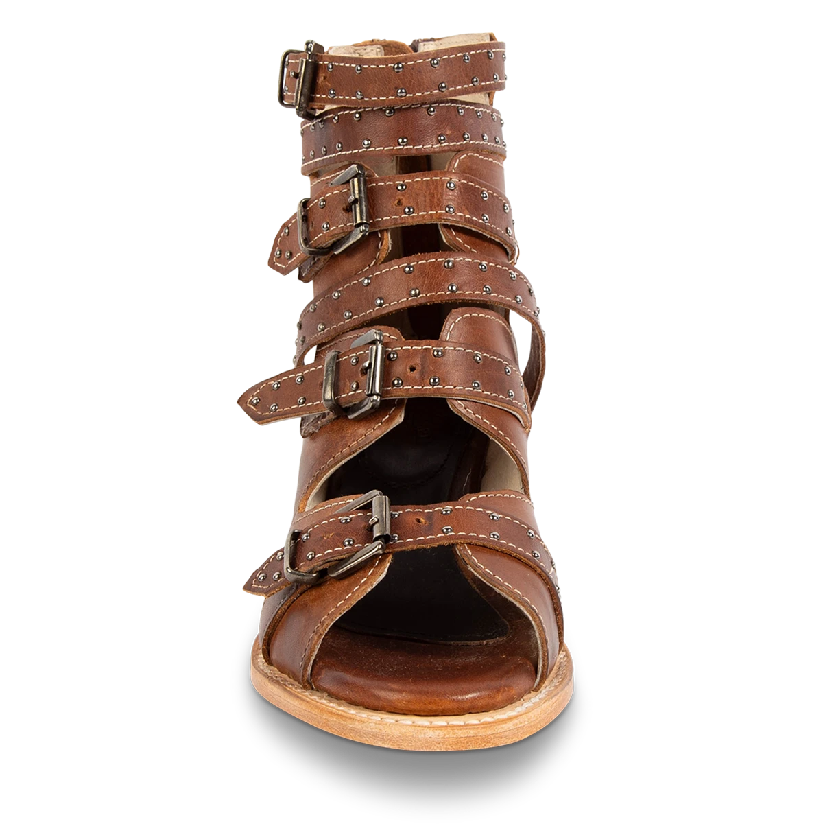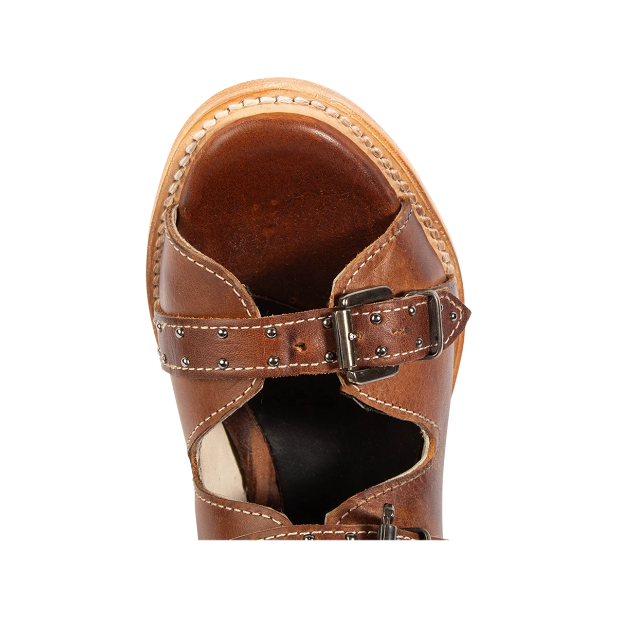 Go the distance in GUNNAR. Handcrafted with 100% full grain leather, this open-toe sandal is built on a block heel and features adjustable leather straps for a customizable fit. Finished with decorative stud embellishments and a working brass zipper, we’re gushing over GUNNAR.Â