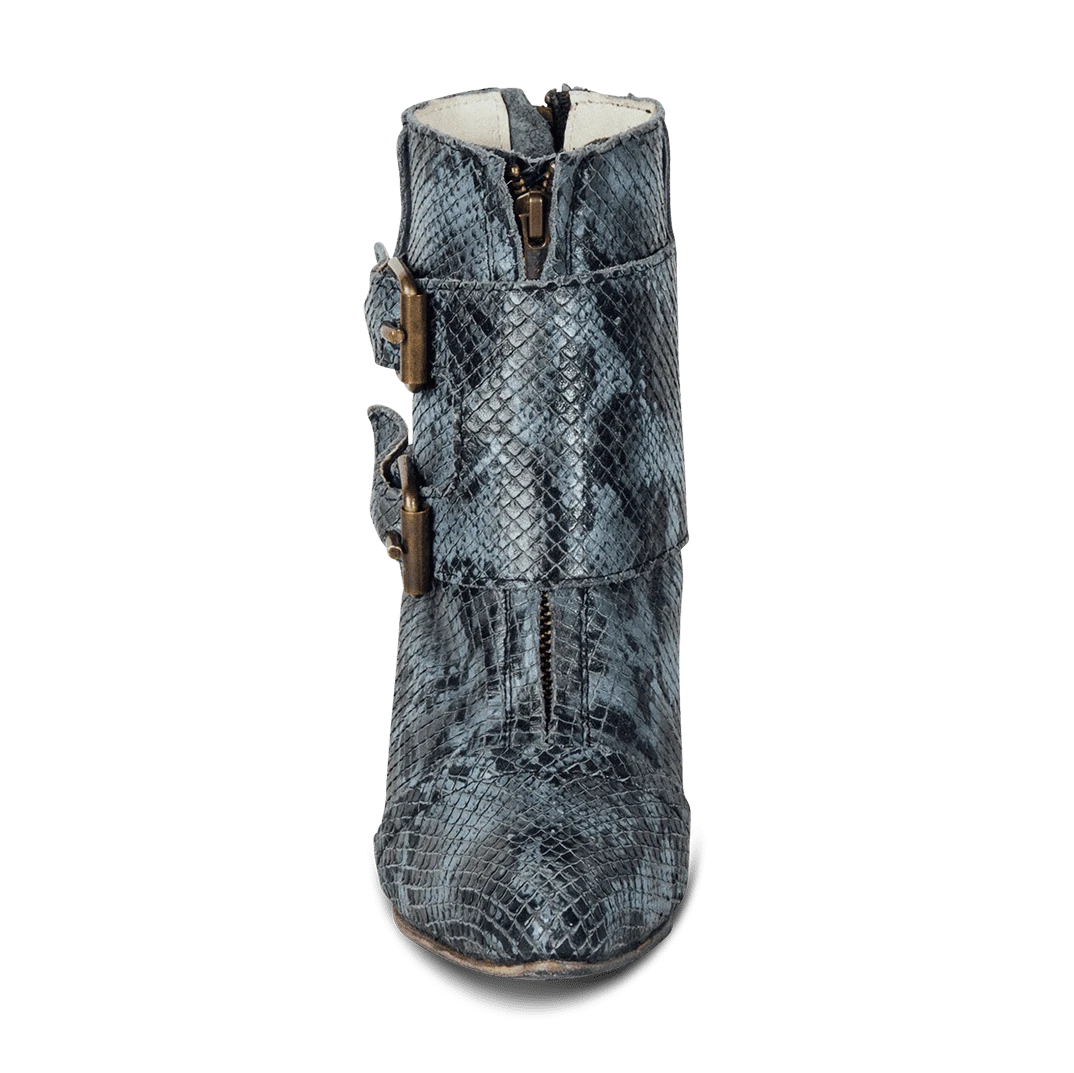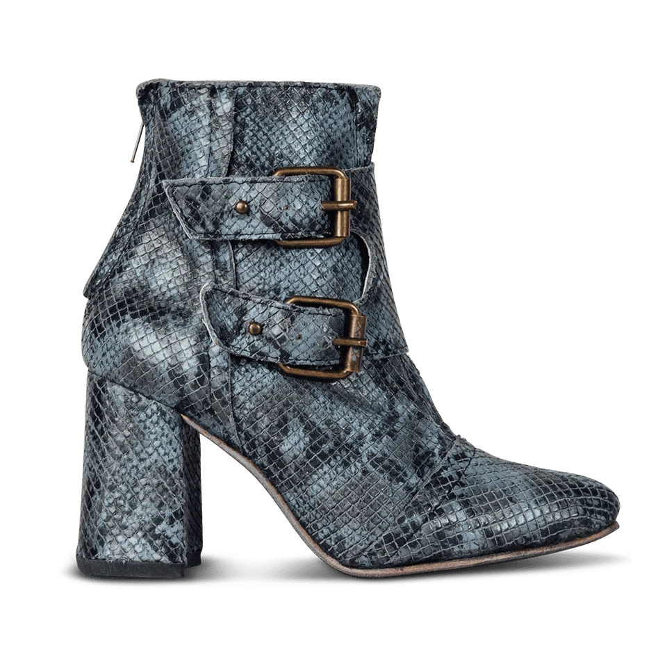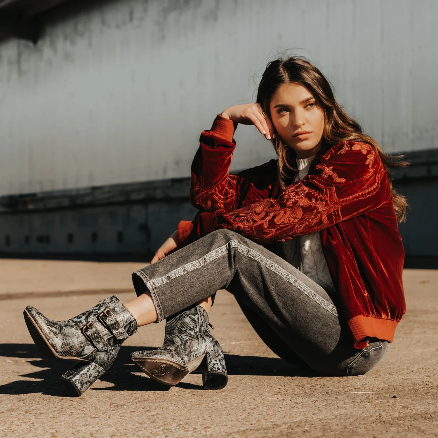 These boots were made for more than just walking. With its pointed toe and signature leather wrapped flare heel, JOEY has all the personality you didn’t know you were looking for. Front and back brass zip closures are complemented by a buckled front leather overlap.