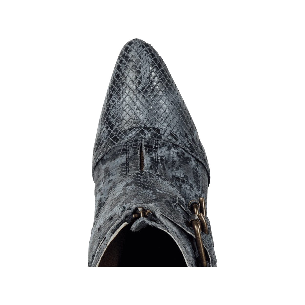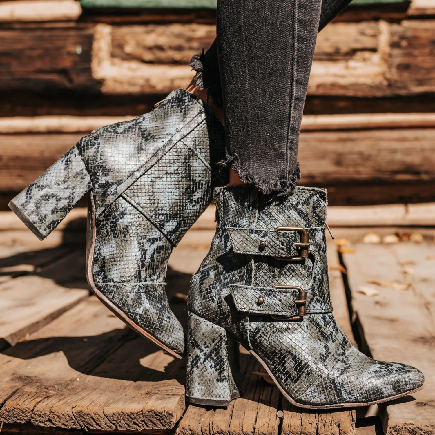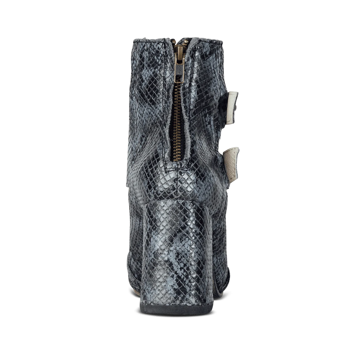 These boots were made for more than just walking. With its pointed toe and signature leather wrapped flare heel, JOEY has all the personality you didn’t know you were looking for. Front and back brass zip closures are complemented by a buckled front leather overlap.