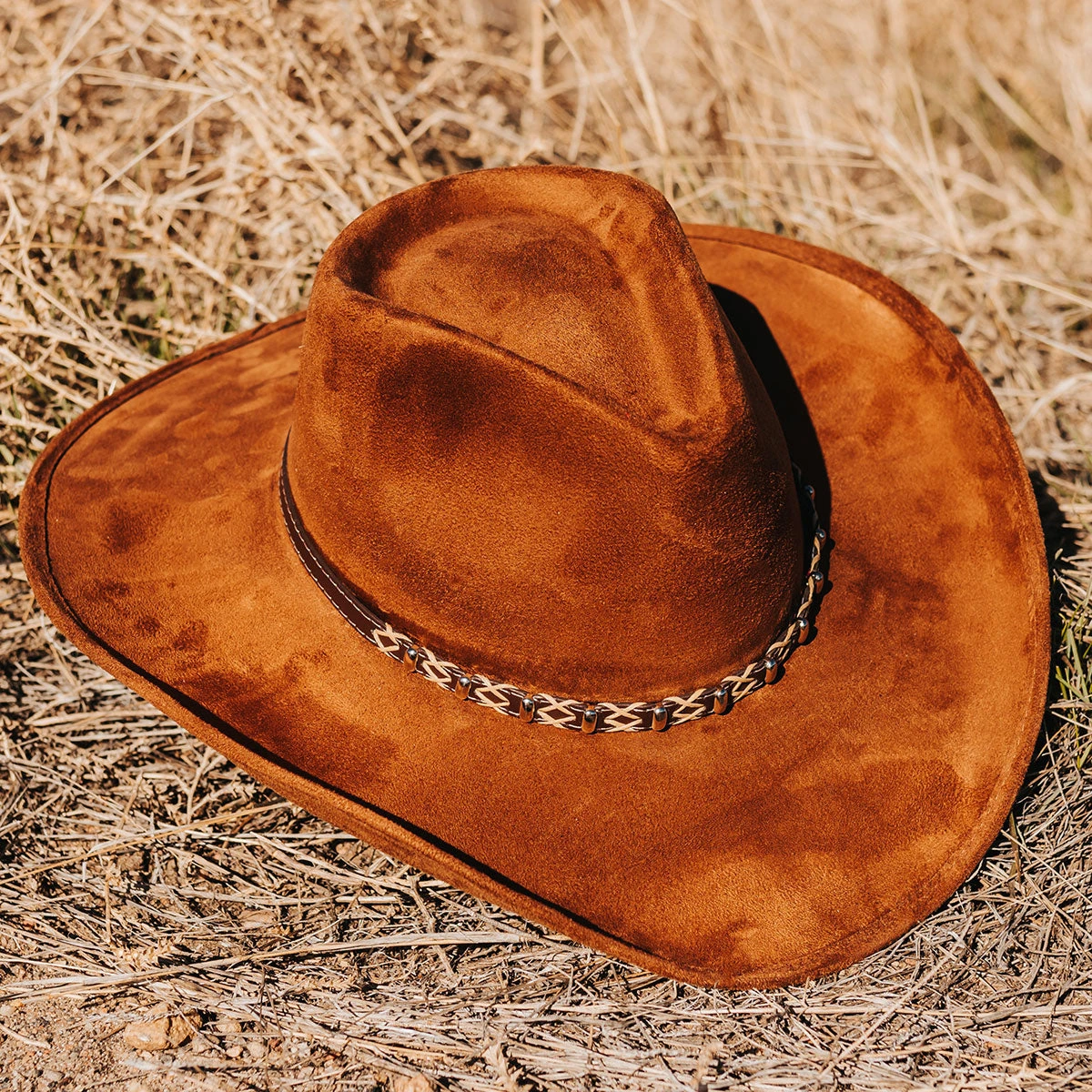Paying homage to Western style, JONES was designed with an upturned wide brim and teardrop crown. This hat features a braided leather band for added texture and an elastic sweatband for comfortable wear.