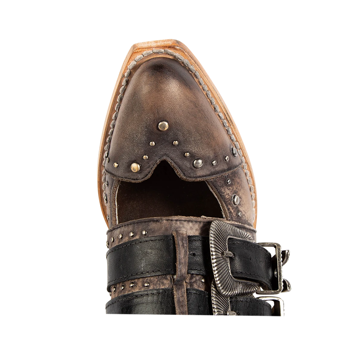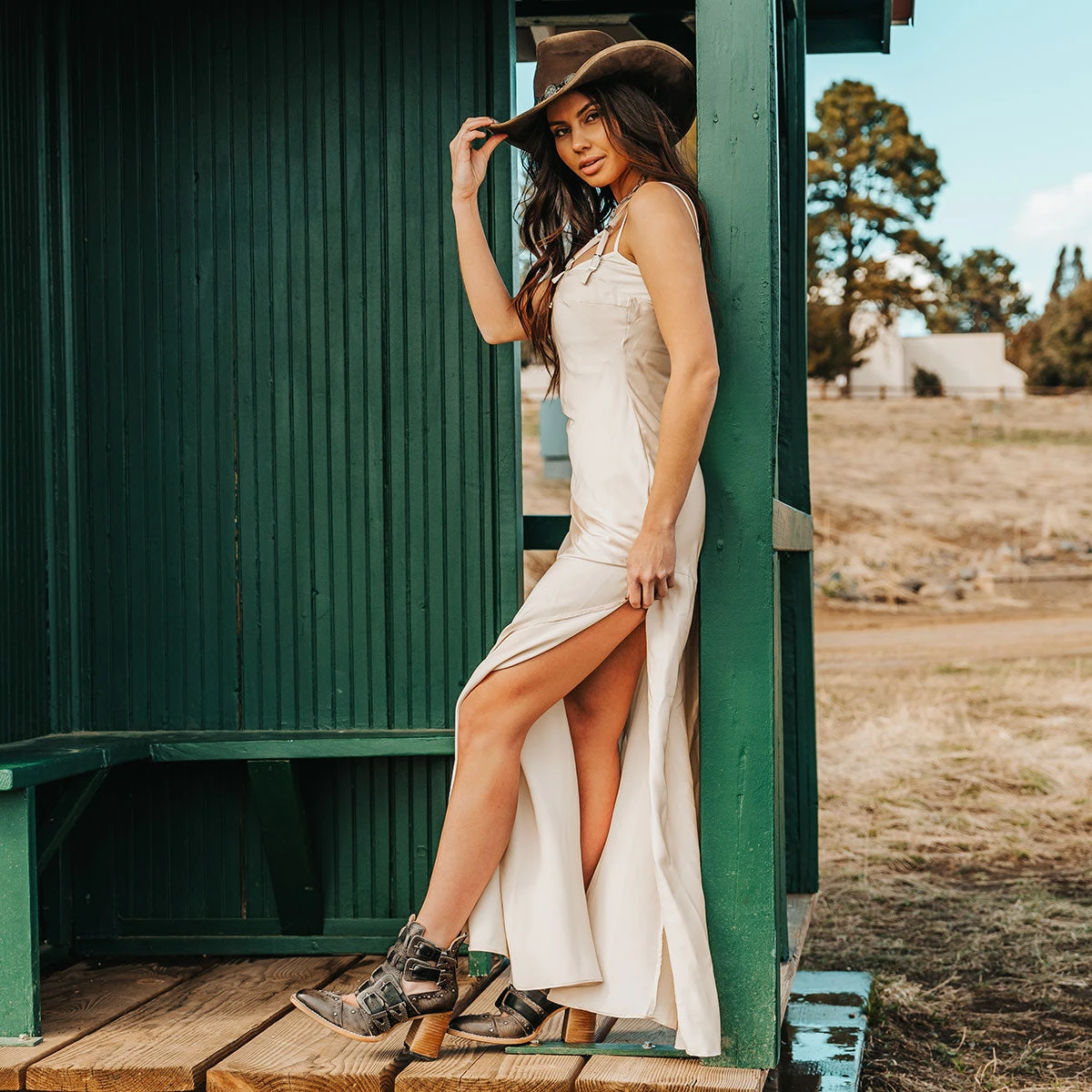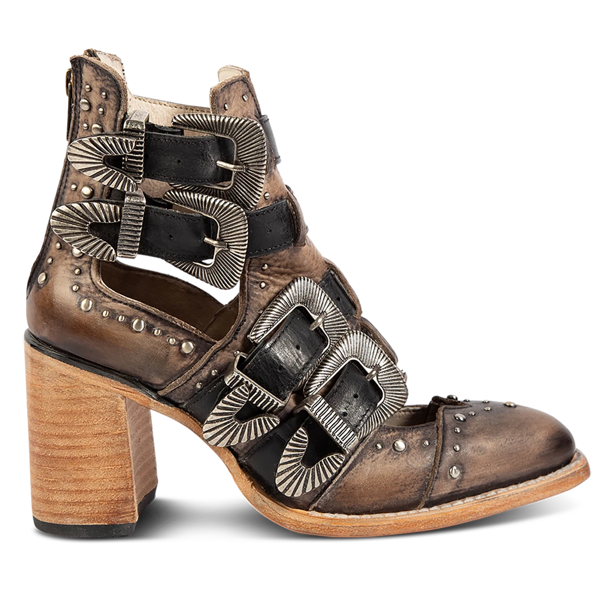 The ruling is in – JUDGE stands the trial for a new bootie favorite. This western inspired bootie is designed with four adjustable engraved belts, decorated with contrasting metal embellishments and built on a strong stacked heel. With a working back zip closure, JUDGE is accommodating for ease of slipping on and off and bringing honor and style to all your upcoming festivities.Â