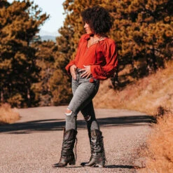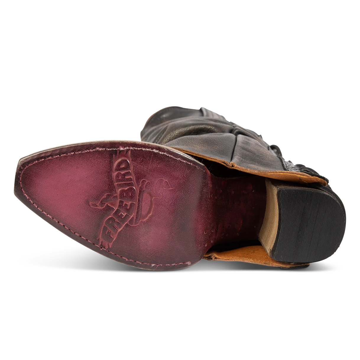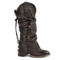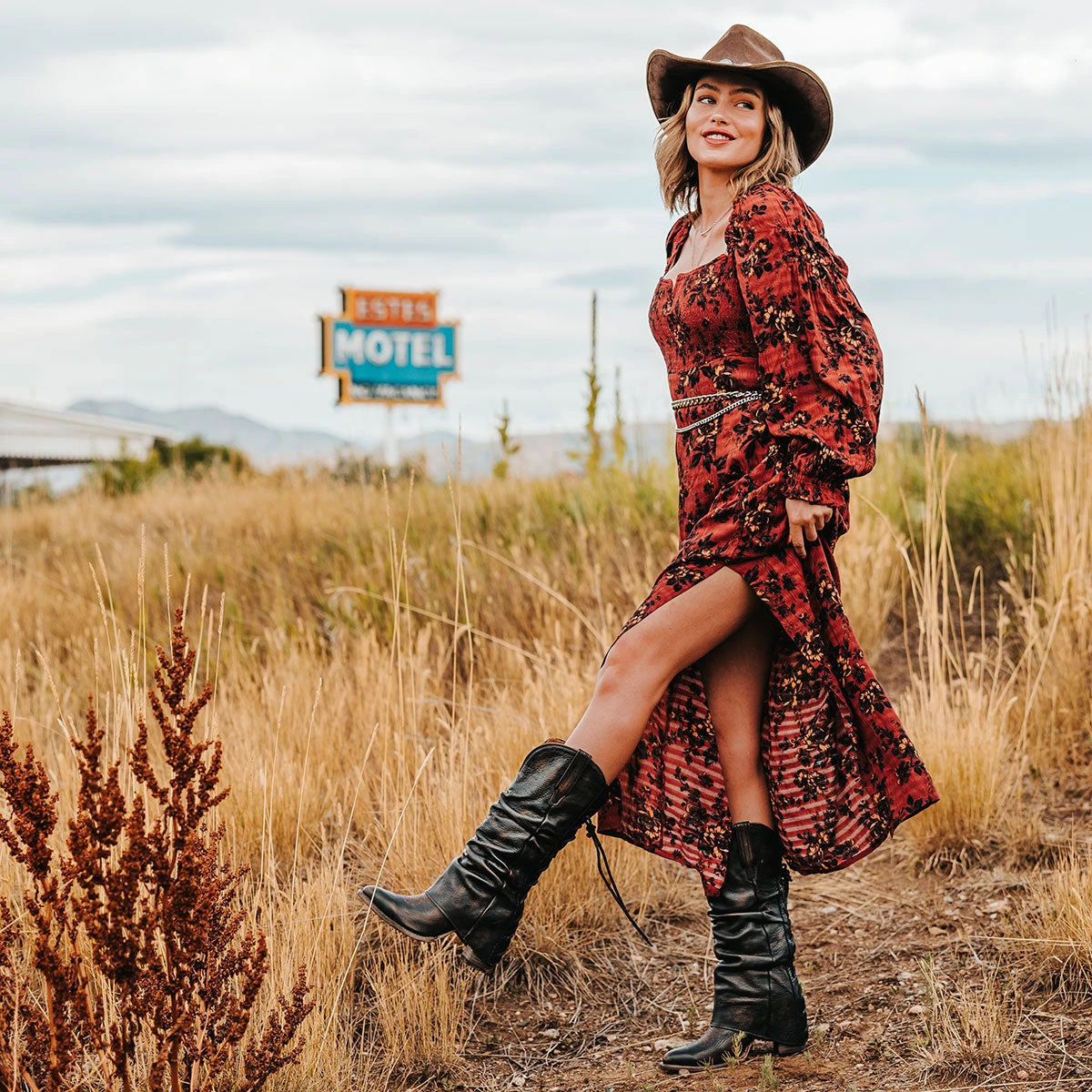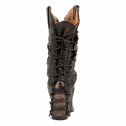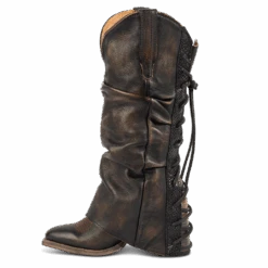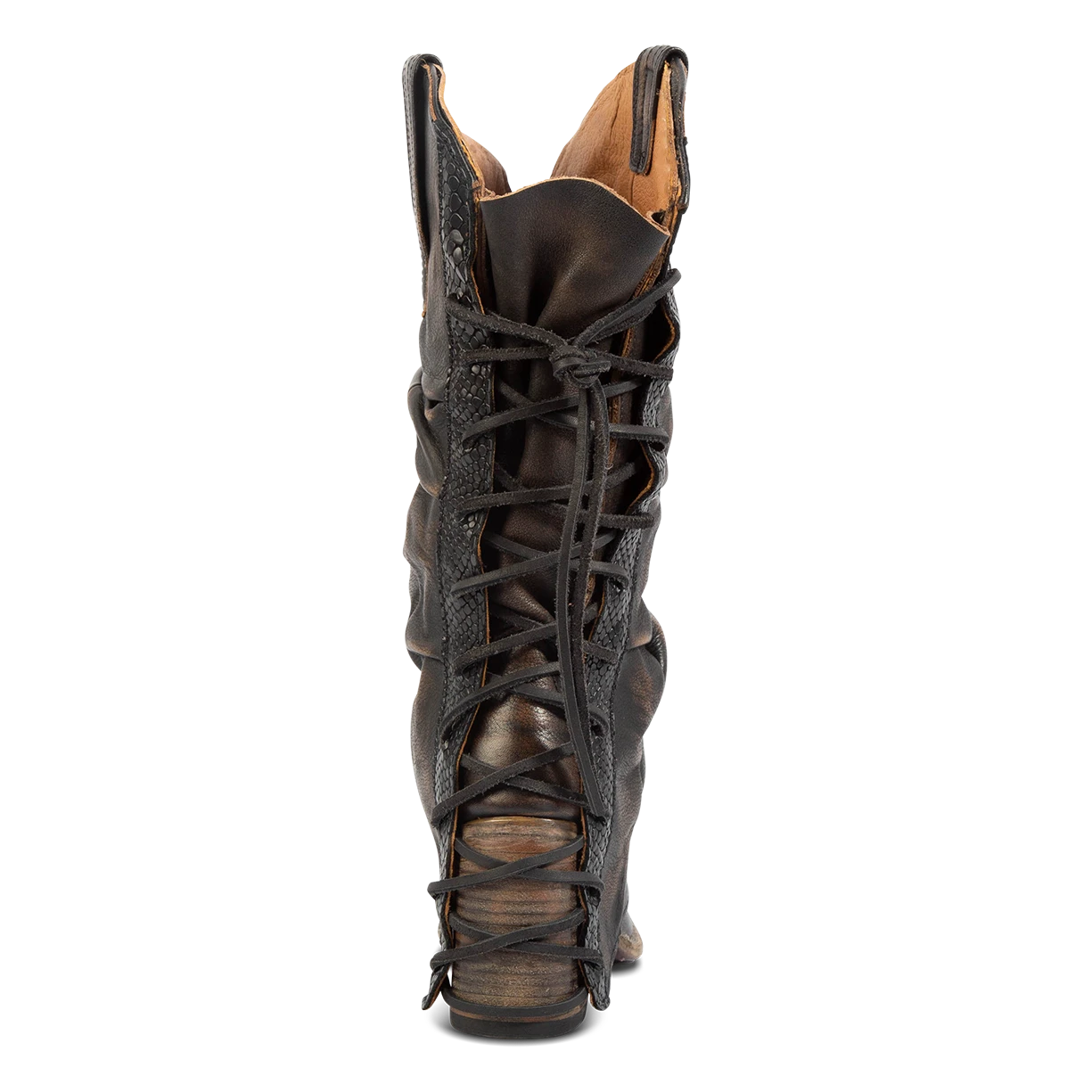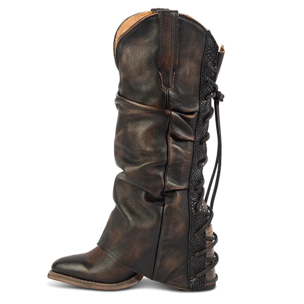 Designed with a decorative overlay, JULES is crafted with a relaxed silhouette and features an expandable contrasting back lace panel. This detailed tall boot showcases a pointed toe with traditional stitching and stands upon an elevated flare heel.