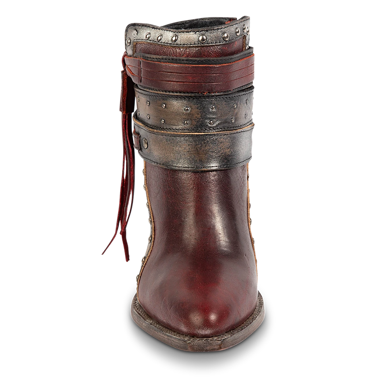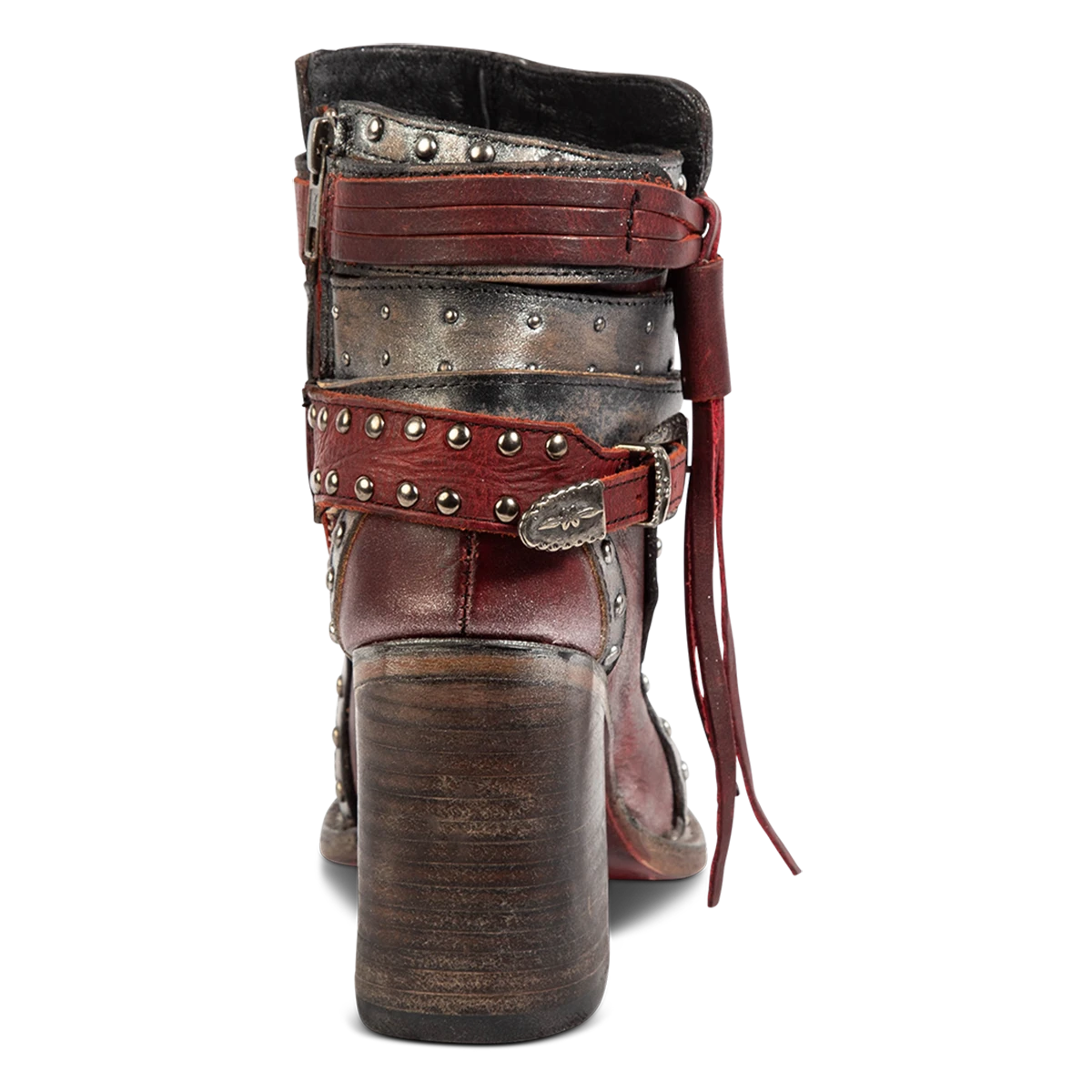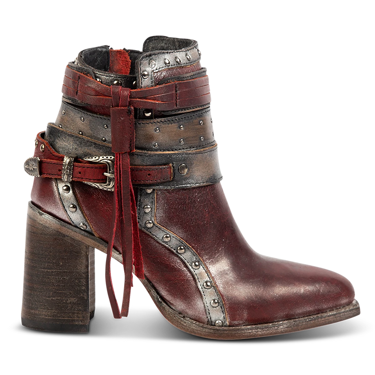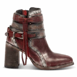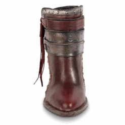 Blending traditional craftsmanship with contemporary elements, JULIUS has it all. This statement making bootie features tassels, belts and studs while functional components such as a working zipper and sturdy flare heel make this a new wardrobe favorite.Â