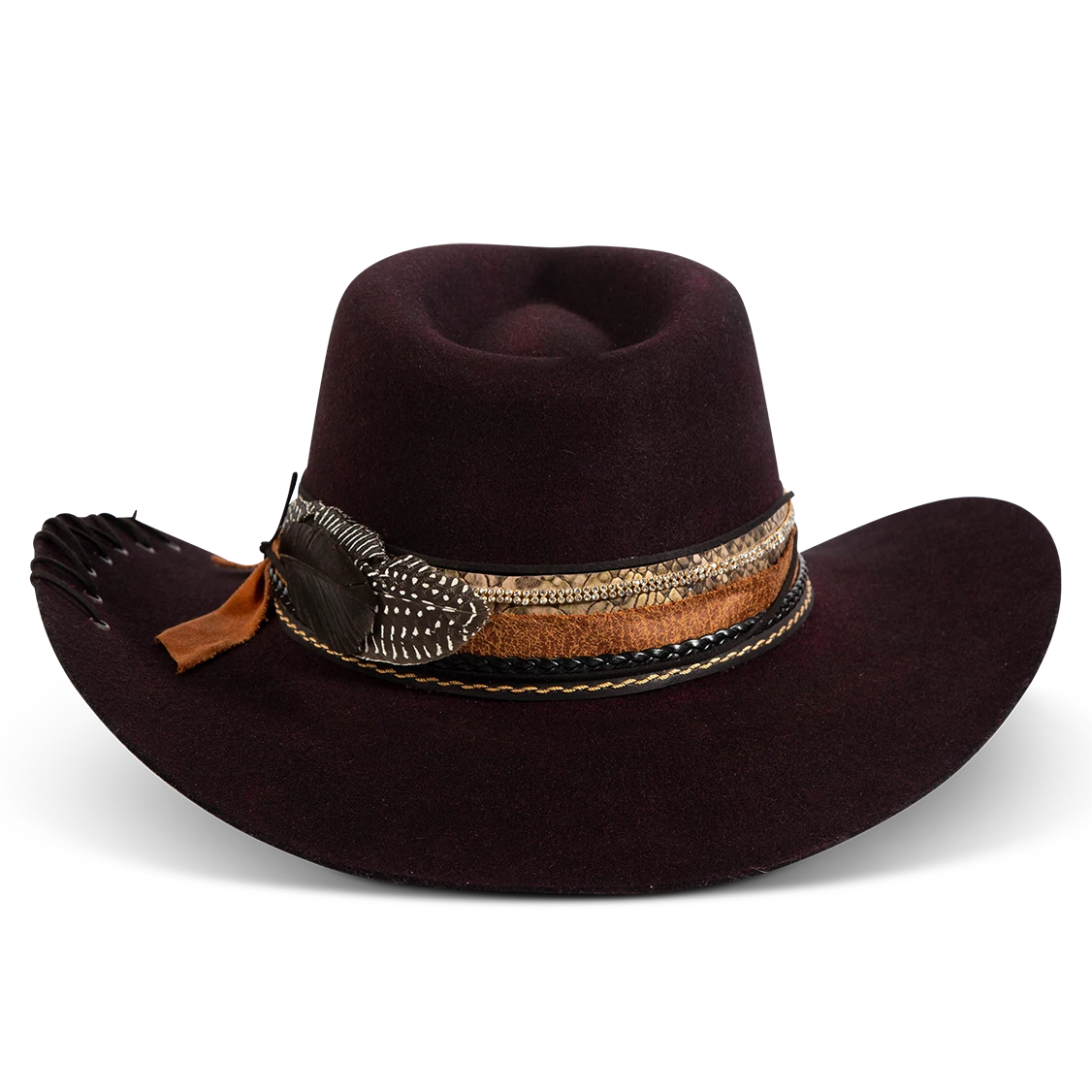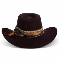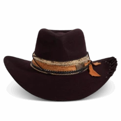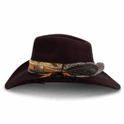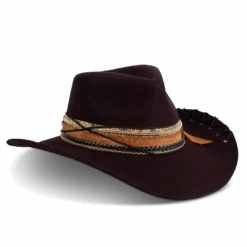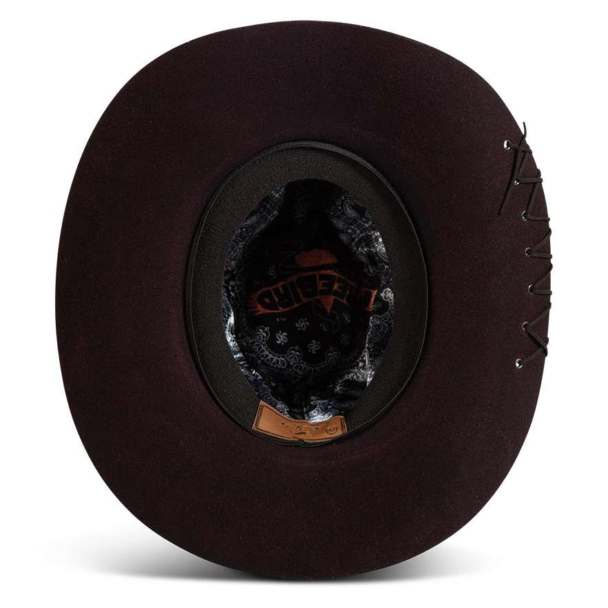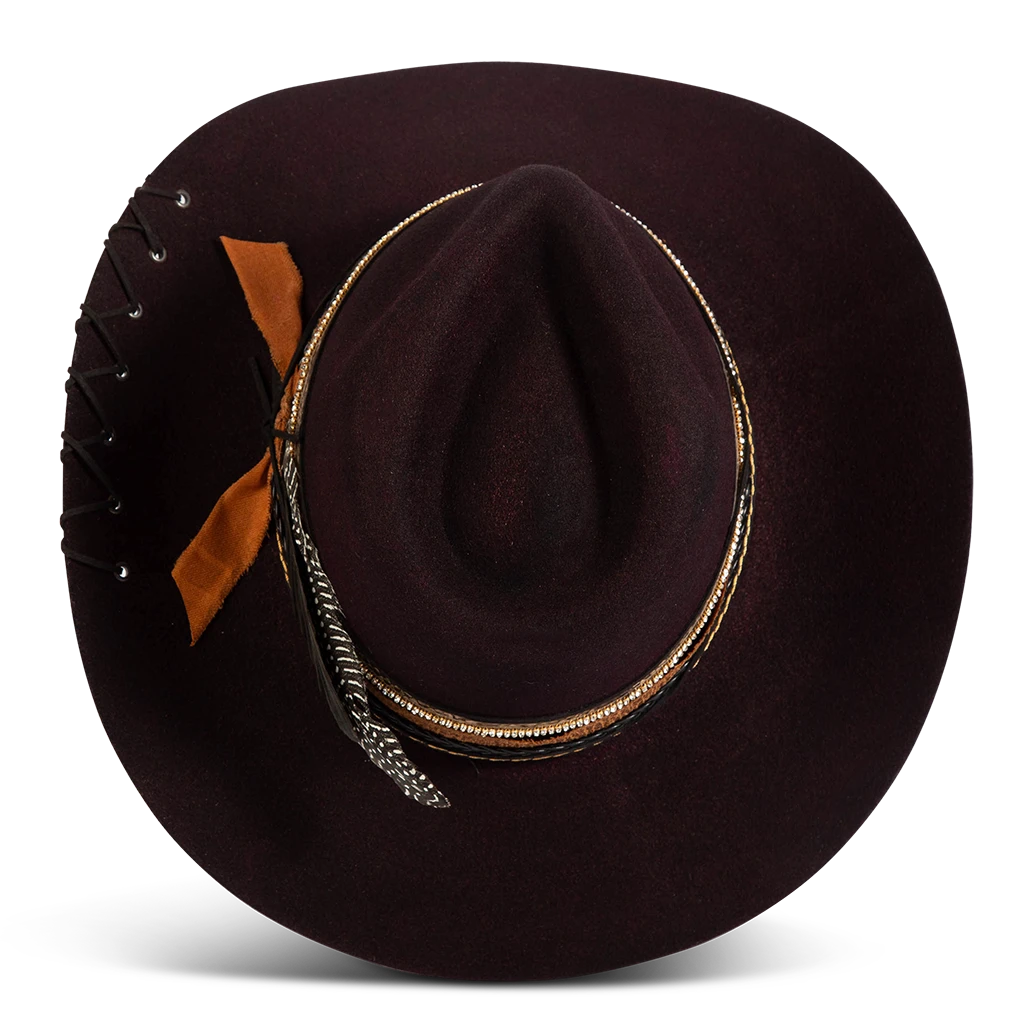 Daring, detailed, and full of attitude – the KIT hat was made for those who lead with edge and confidence. Hand shaped from high quality wool felt, this distinctive hat features a smoky, burnished finish that speaks of adventure.