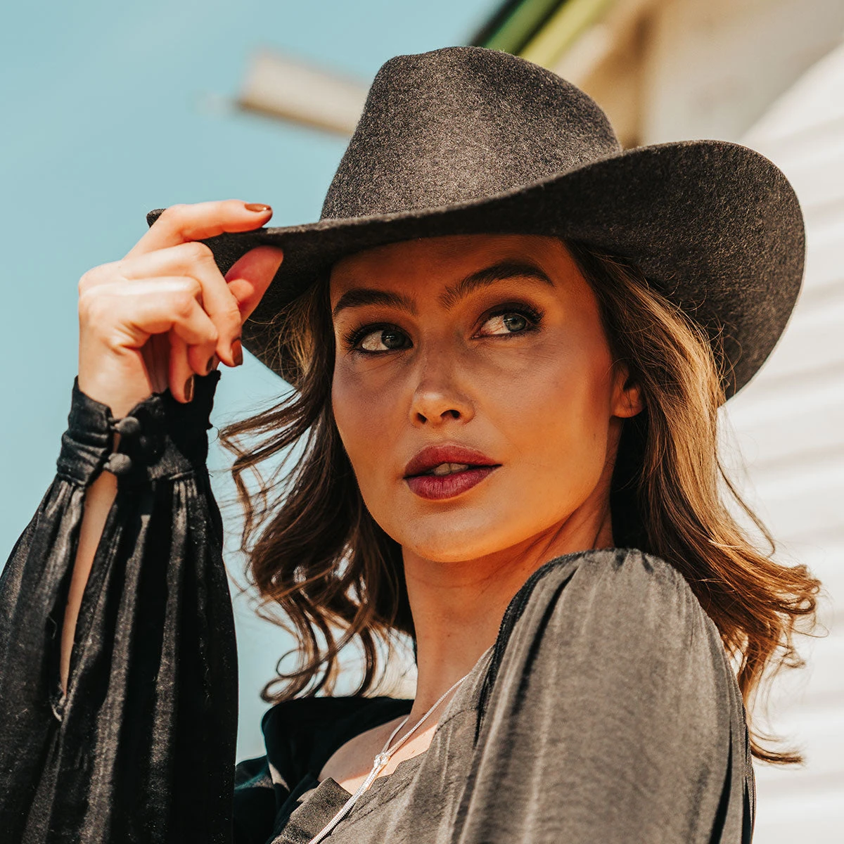 West in show – KOLTEN. Constructed with a curved brim, front-pinch crown and crafted from soft, durable wool – its simple design makes it a versatile addition to any wardrobe. Finished with subtle detailing that includes a FREEBIRD charm belt and a silk bandana interior that offers the perfect blend of authenticity and luxury.