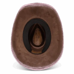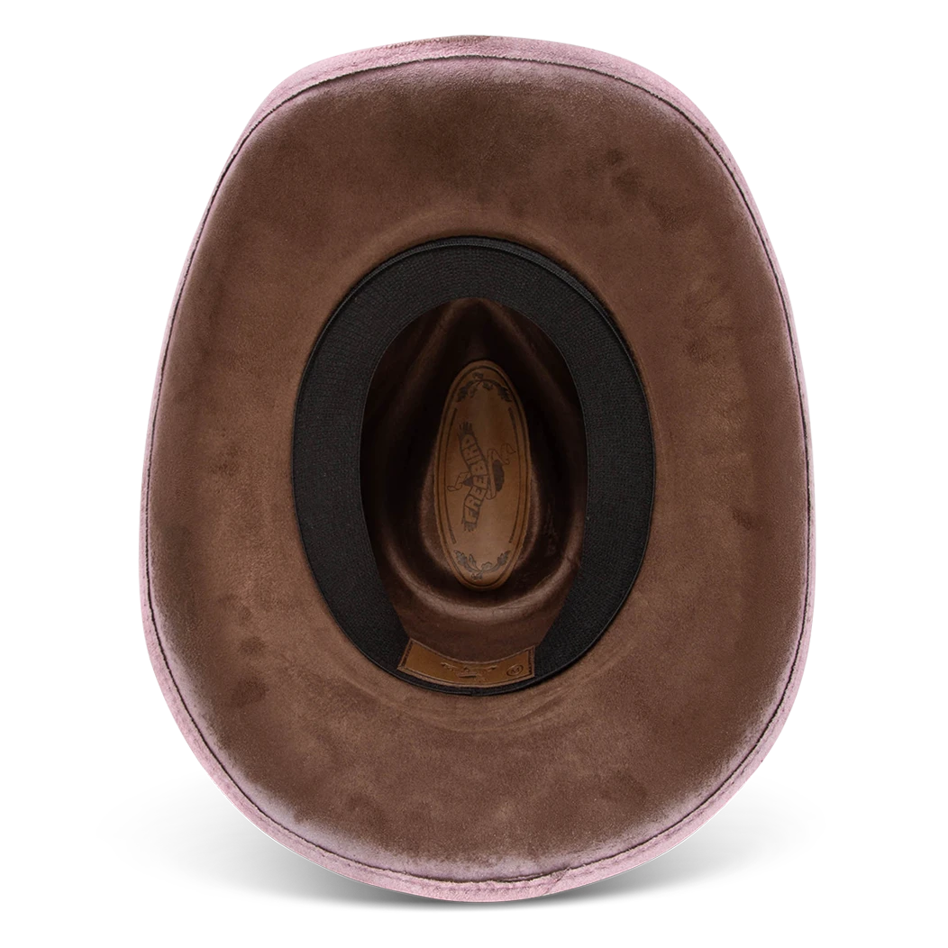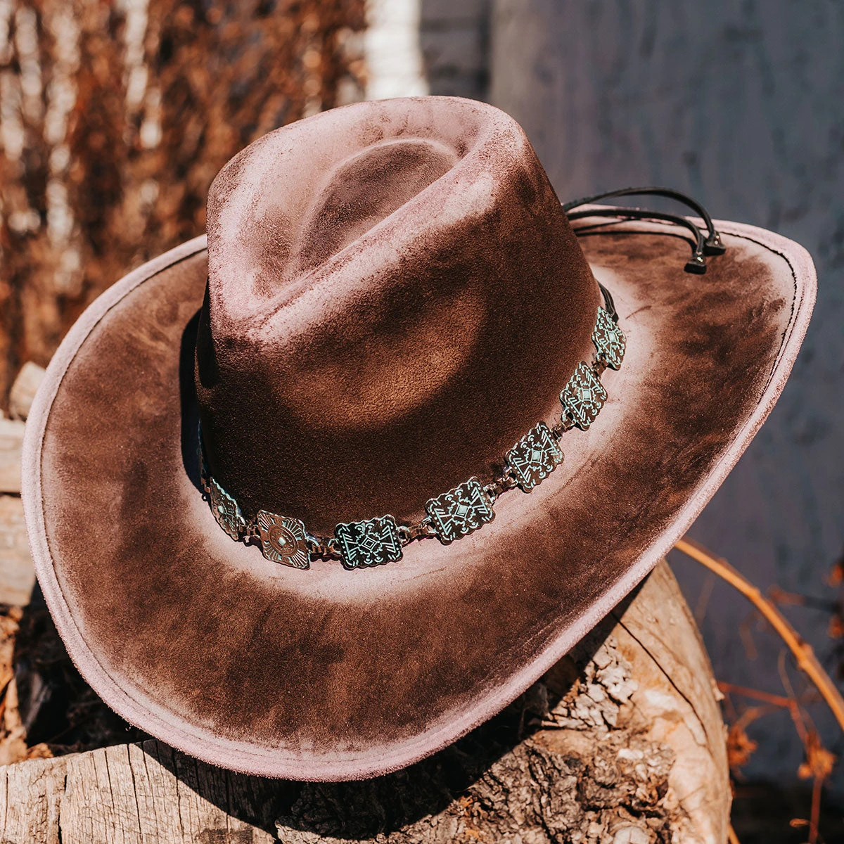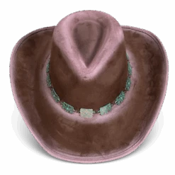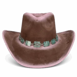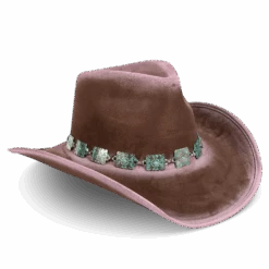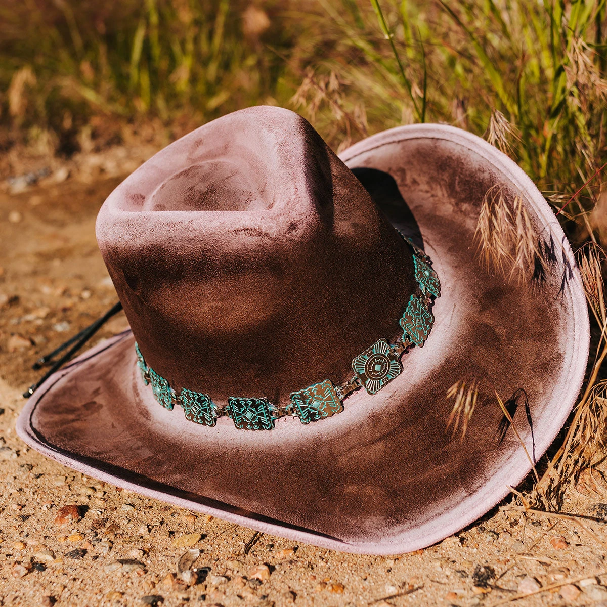 Crafted with a tear-drop crown and an upturned brim, LASSO is a classic western-inspired hat with added texture. Adorned with a turquoise metal engraved band that pops against the neutral hues.