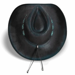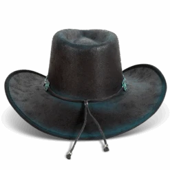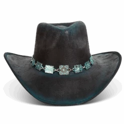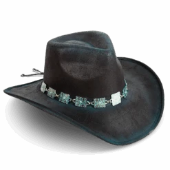 Crafted with a tear-drop crown and an upturned brim, LASSO is a classic western-inspired hat with added texture. Adorned with a turquoise metal engraved band that pops against the neutral hues.