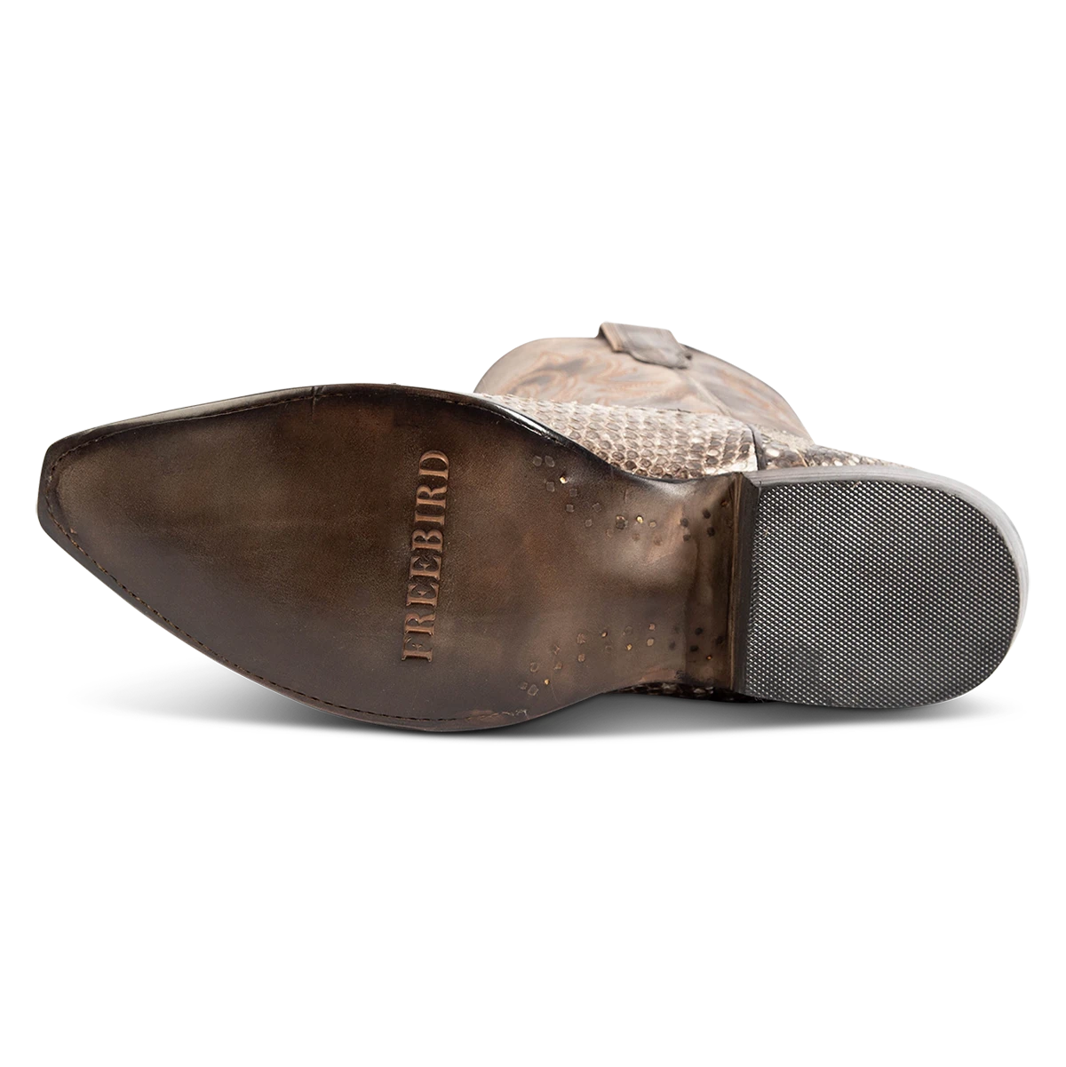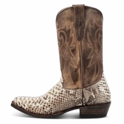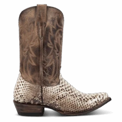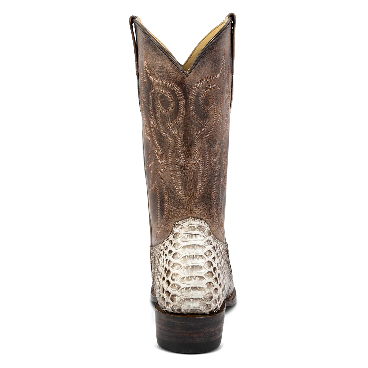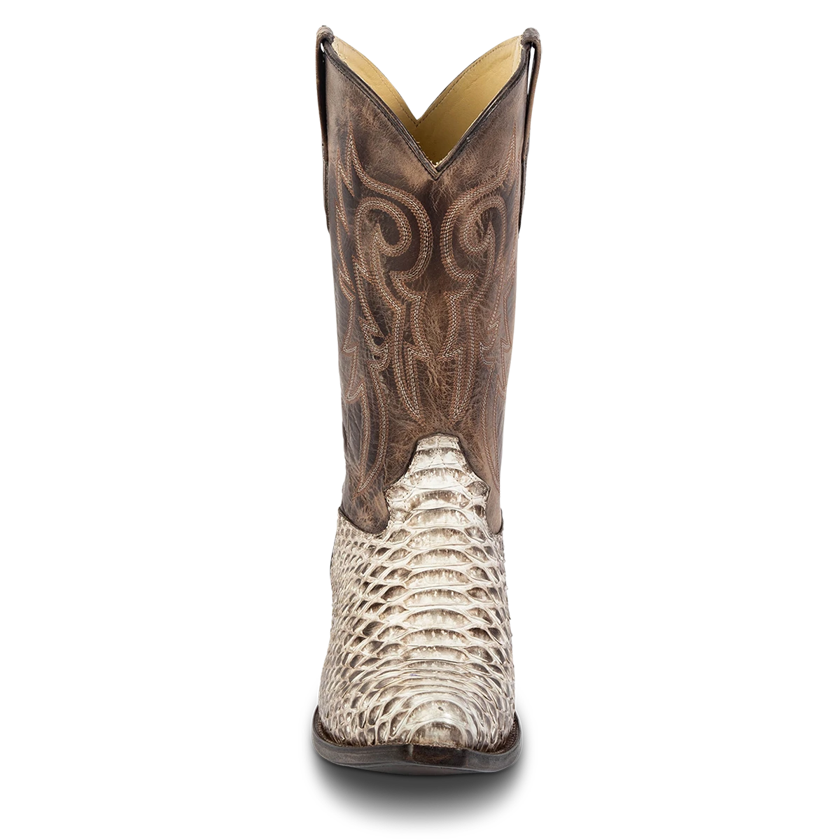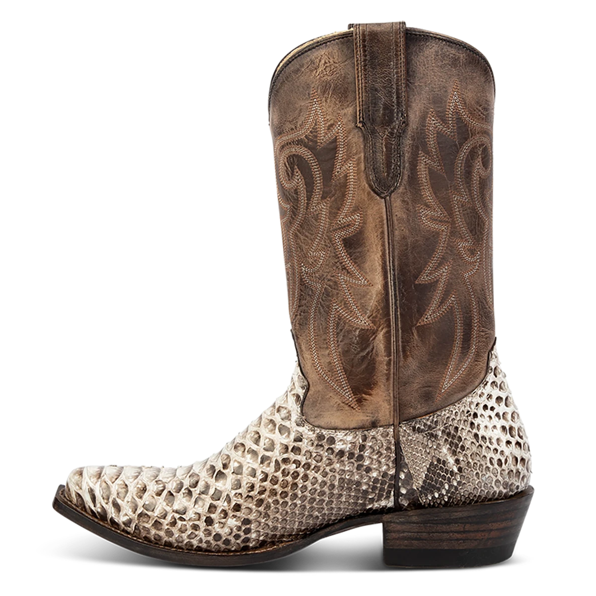 Stirrup your Western collection with MARSHALL. Handcrafted with durable Goodyear welt, 100% full grain leather that shapes with your foot, and detailed with intricate shaft stitching. This made-to-last cowboy boot is constructed with conventional snip toe construction and wrangled together with symmetrical leather pull straps. Designed with genuine python leather.