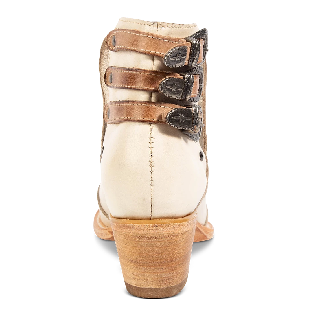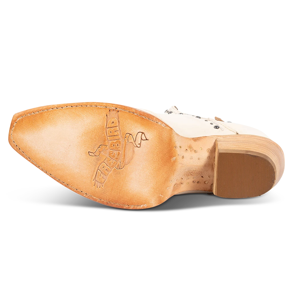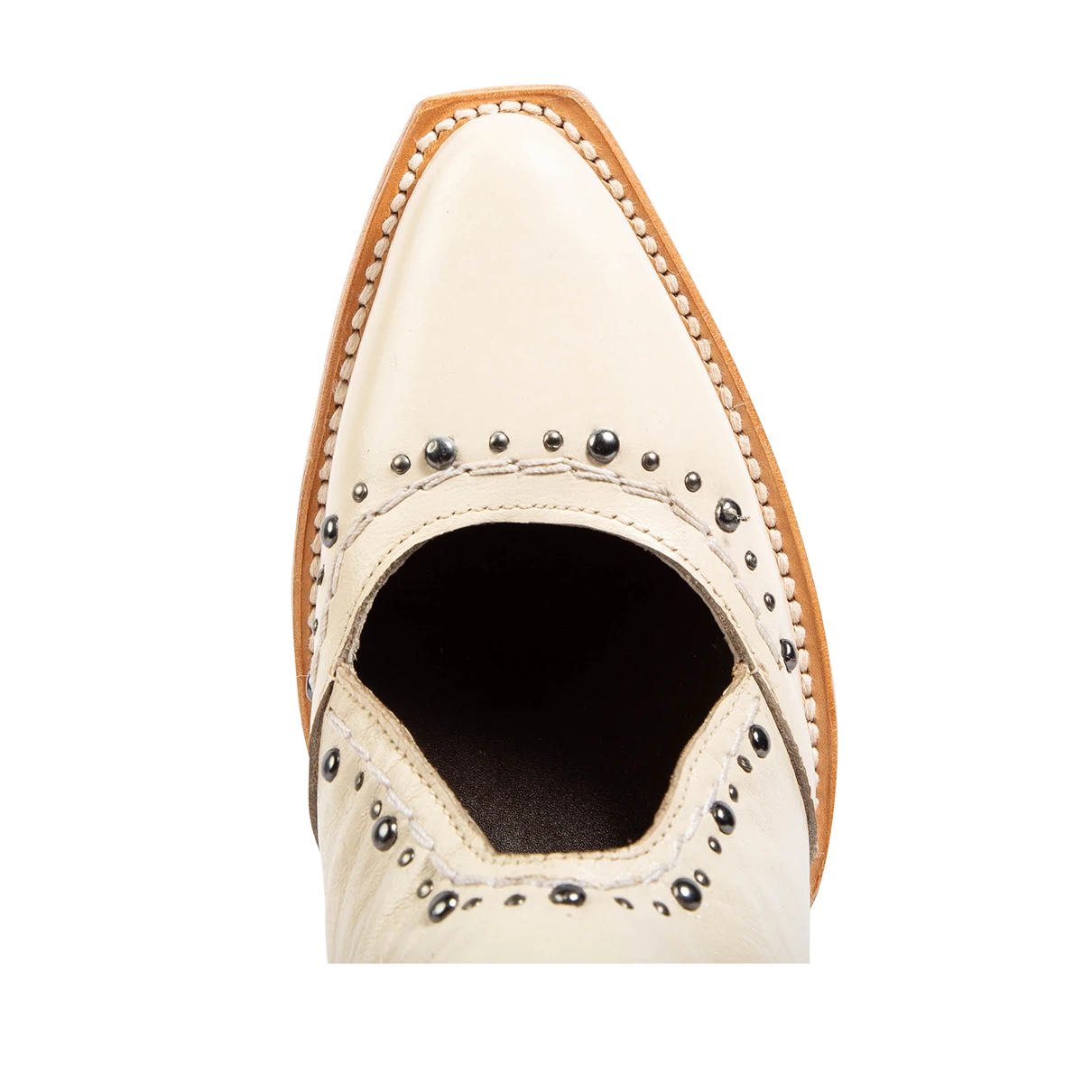 Turn up the volume with MELODY – the bootie that hits all the right notes. Crafted with 100% full-grain leather, this bold cutout design features studded trim detailing and three western-inspired metal buckles at the ankle. A slightly flared stacked heel adds just the right lift, while the deep V-cut sides and open instep bring a fierce, fashion-forward attitude.