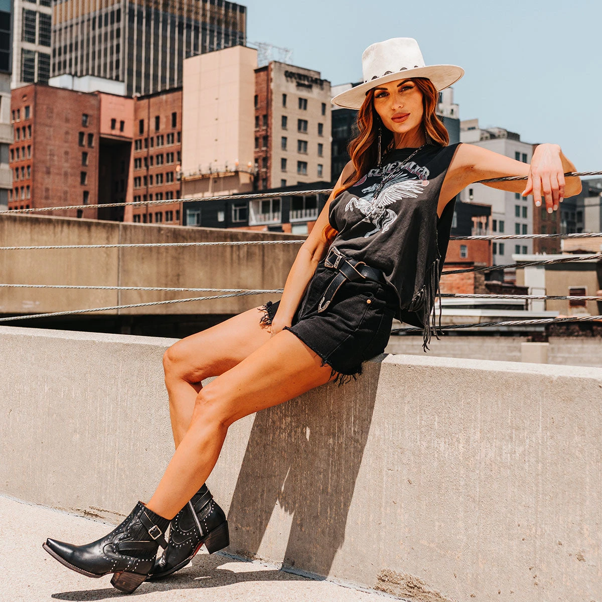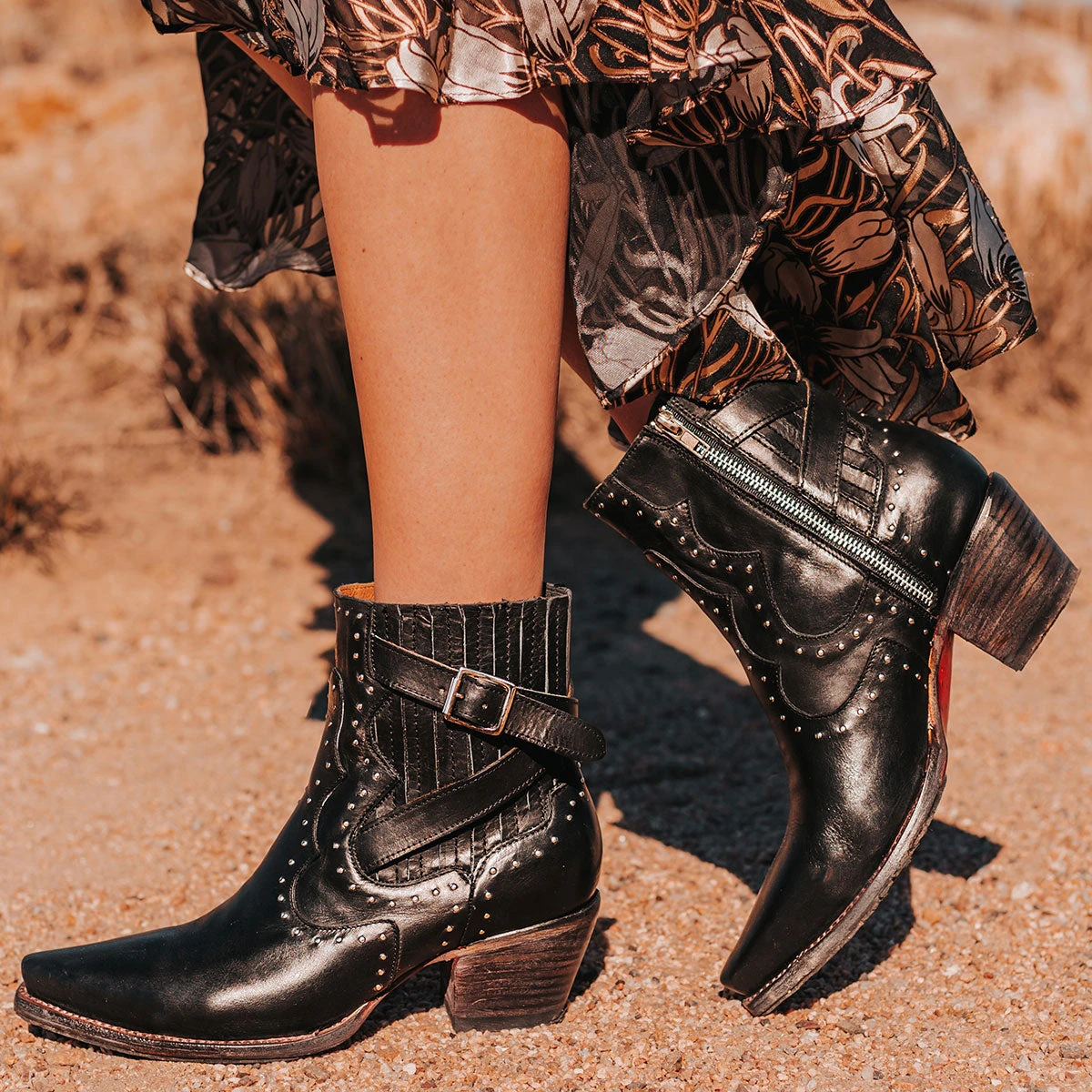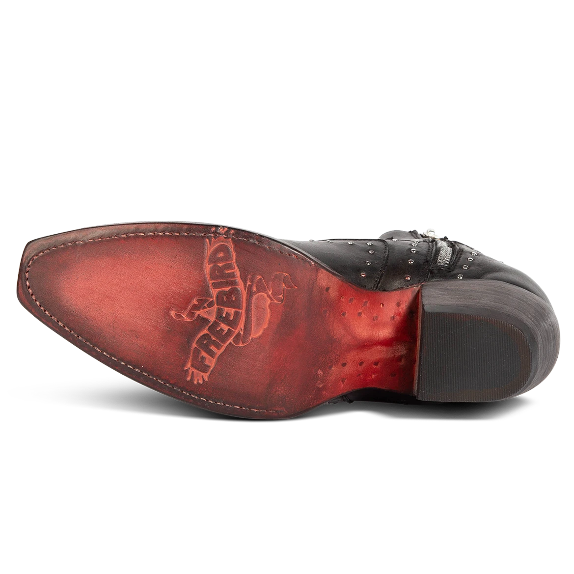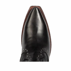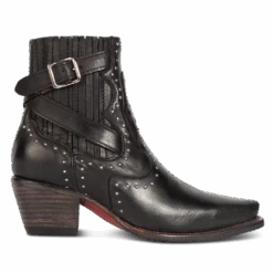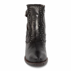 Breaking all the rules – MORGAN. Constructed with 100% full-grain leather, this ankle bootie displays handcrafted detailing at every curve, with its silver studs, criss-crossing heel strap, and classic snip toe. Finished with a working zip closure and gore backing for additional flexibility.
